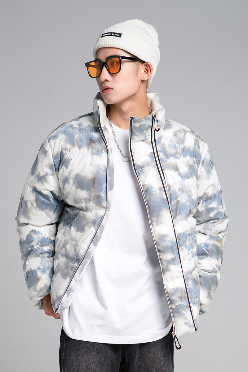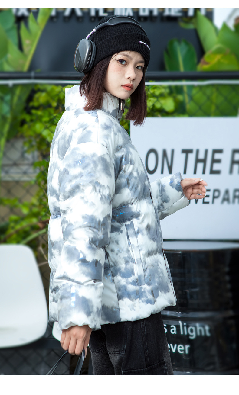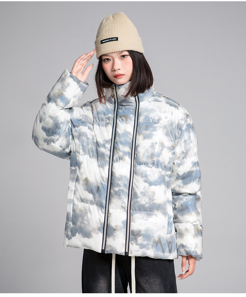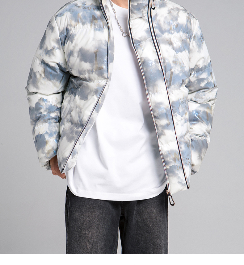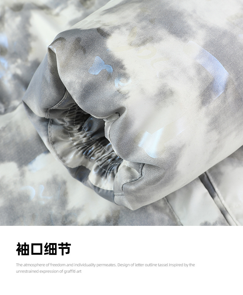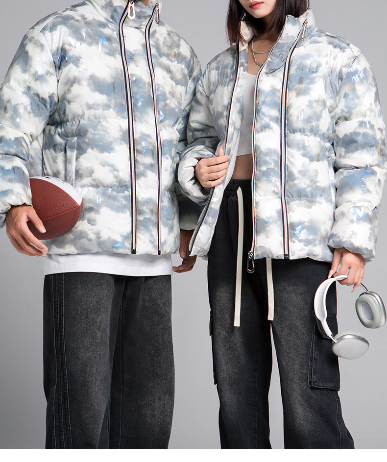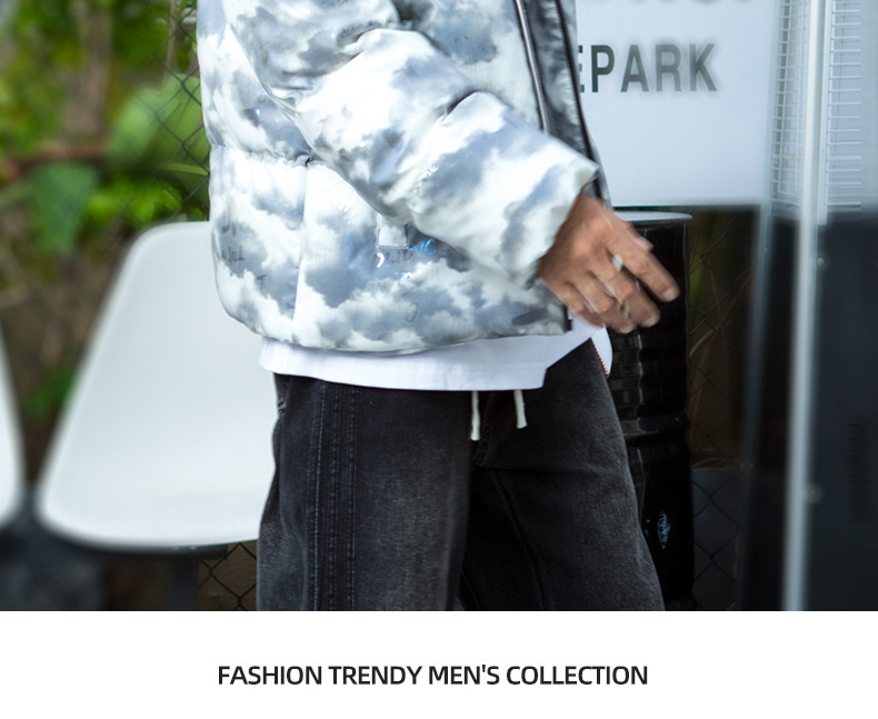 겨울용 두꺼운 면옷, 스탠드 칼라, 커플 스타일, 트렌디한 브랜드, 타이다이 면 재킷, 패셔너블한 더블 지퍼 면 패딩 재킷스토어 가기
