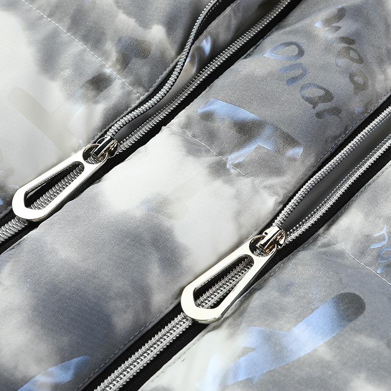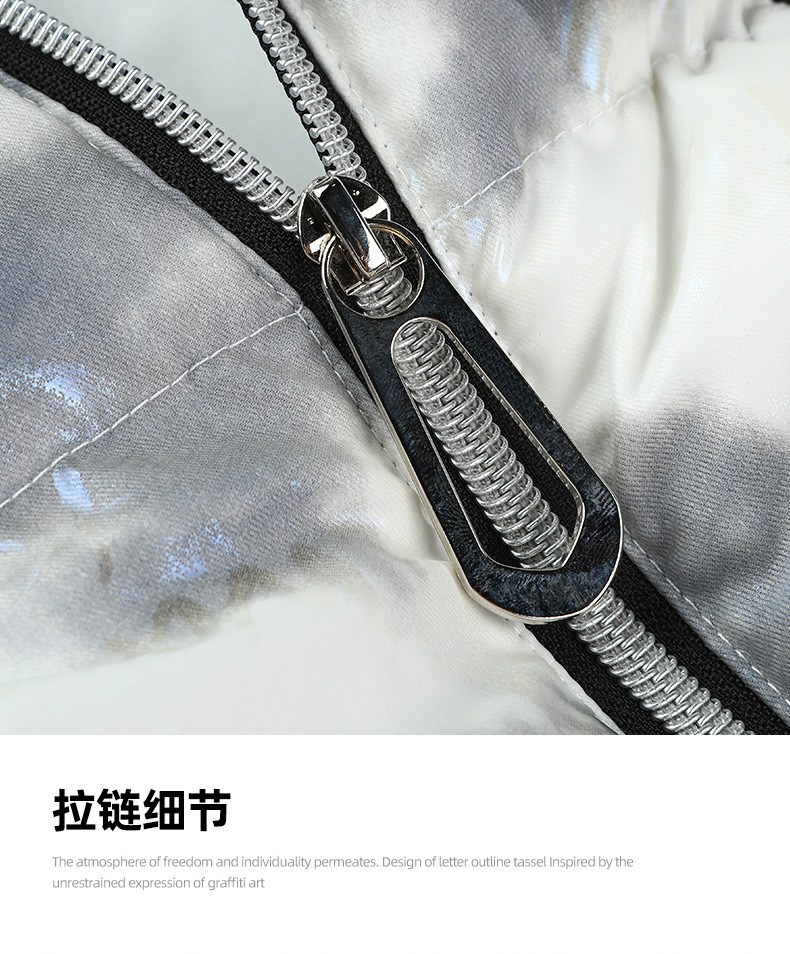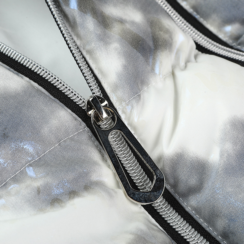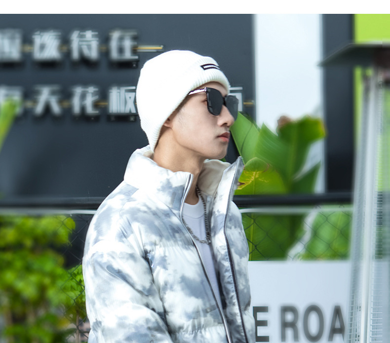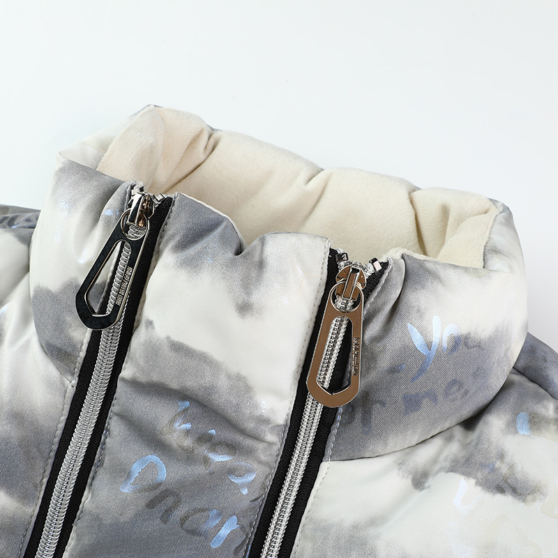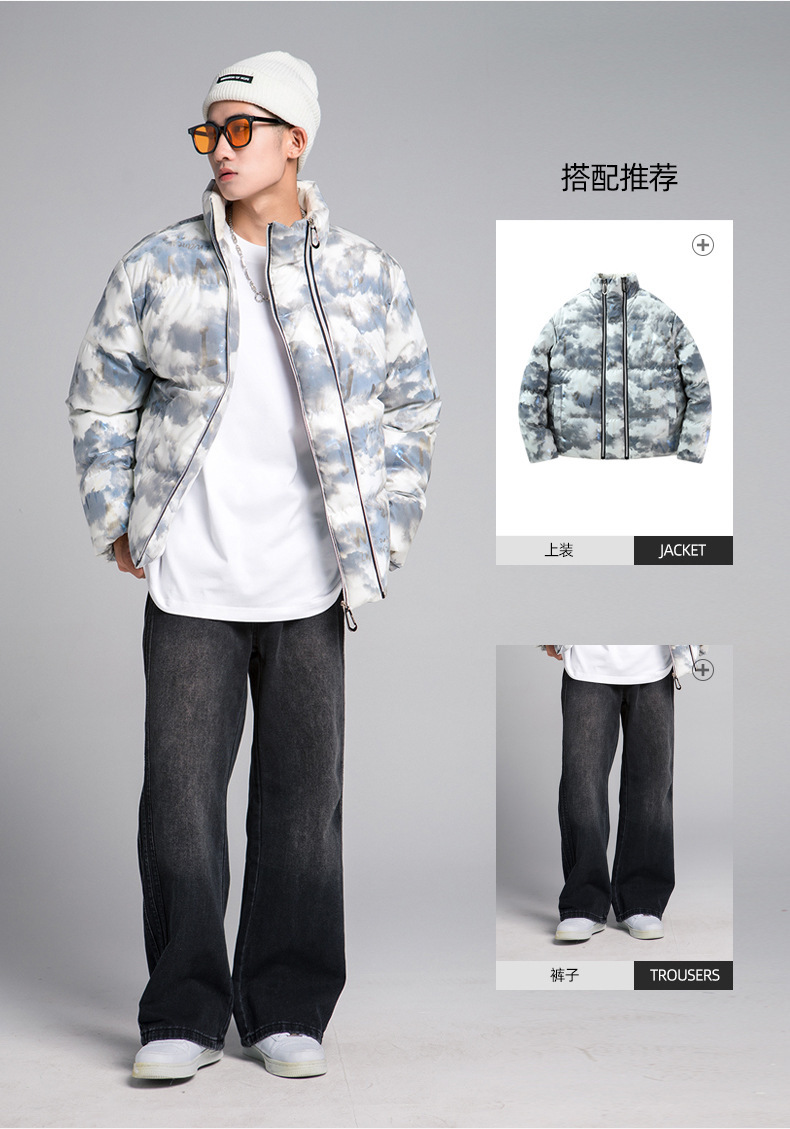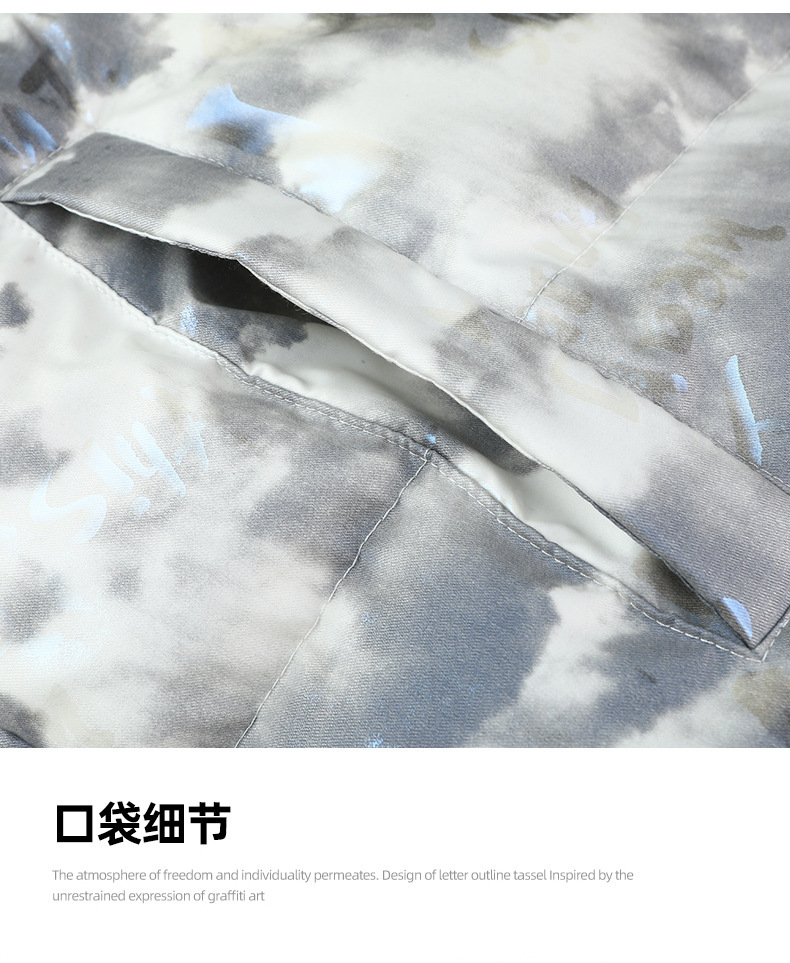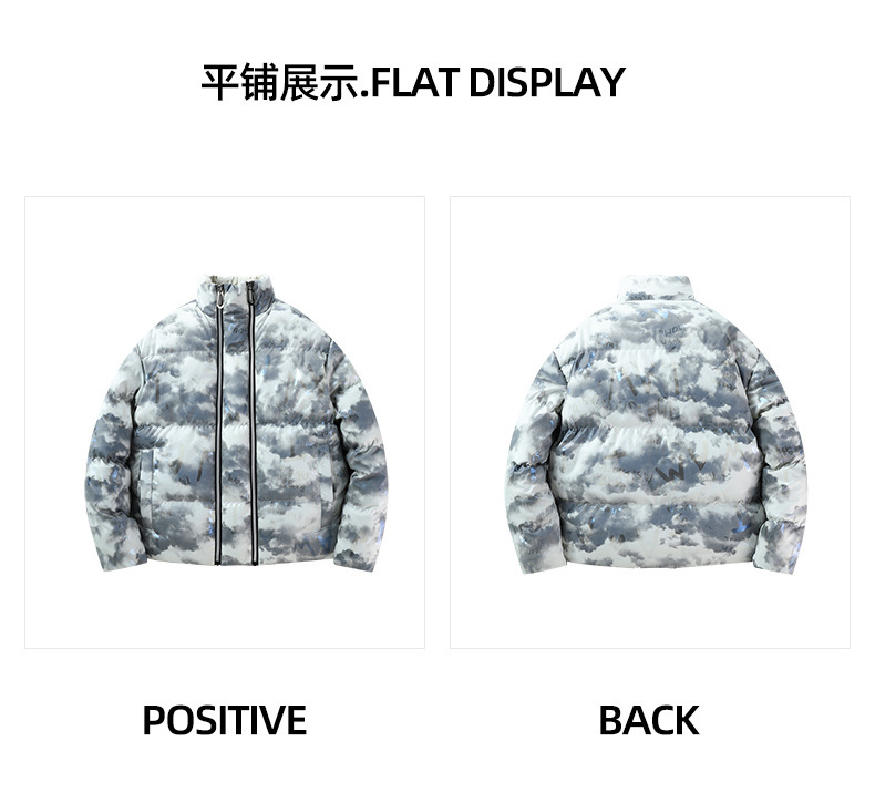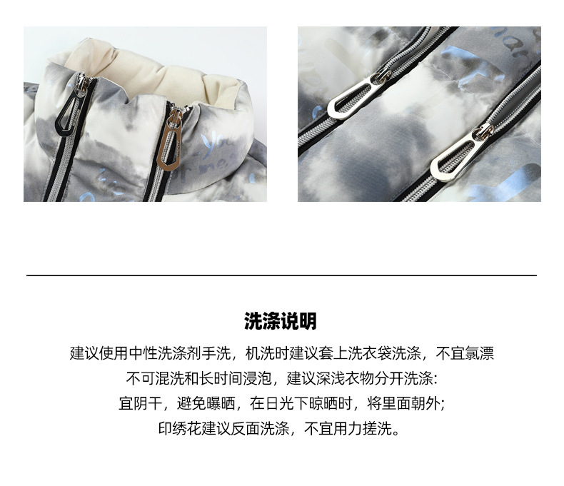 겨울용 두꺼운 면옷, 스탠드 칼라, 커플 스타일, 트렌디한 브랜드, 타이다이 면 재킷, 패셔너블한 더블 지퍼 면 패딩 재킷스토어 가기