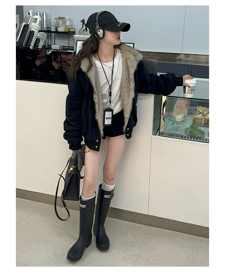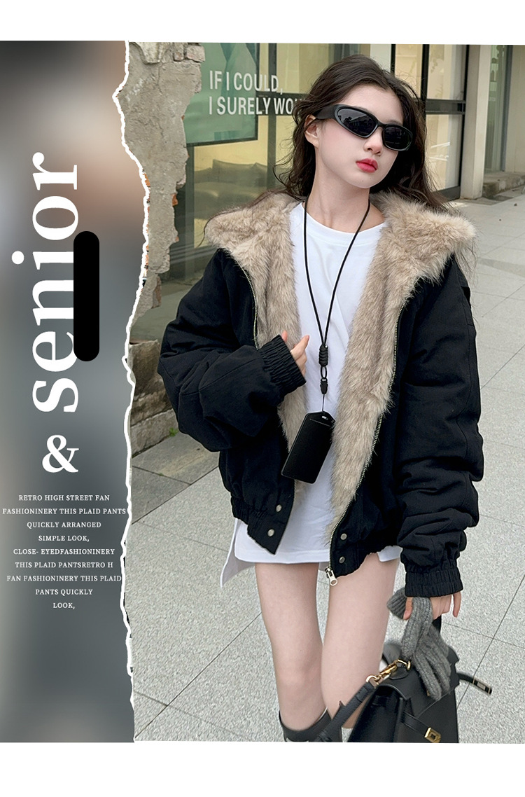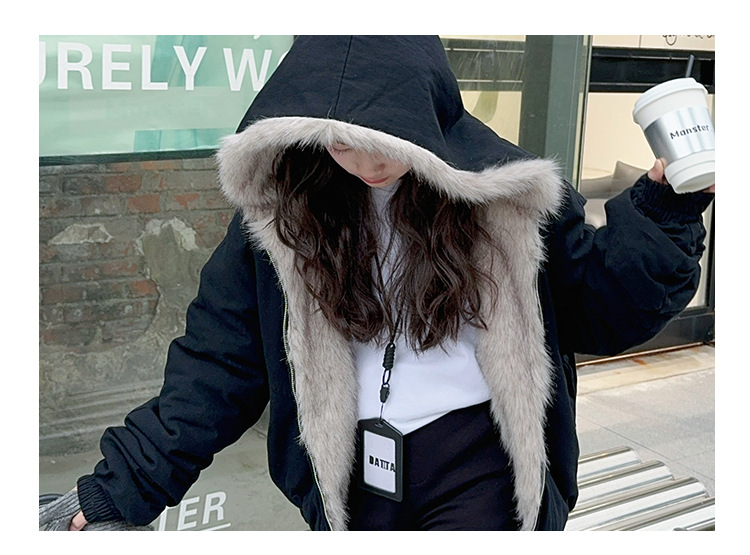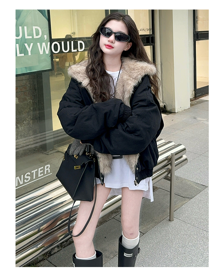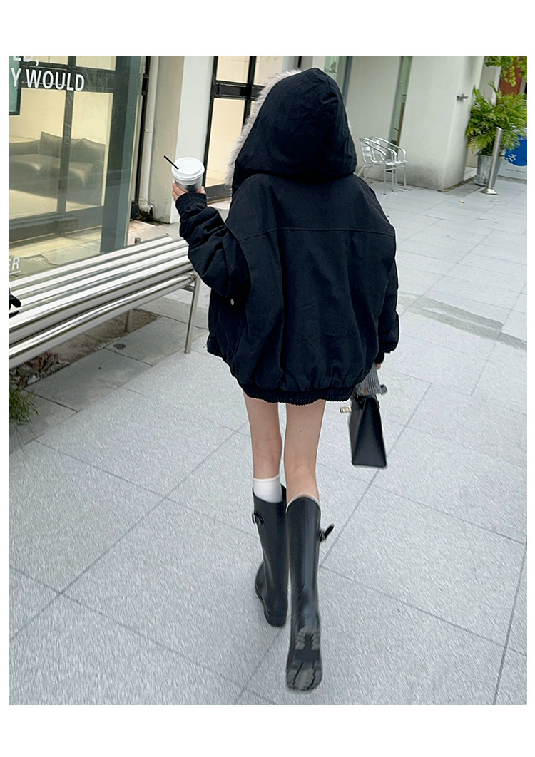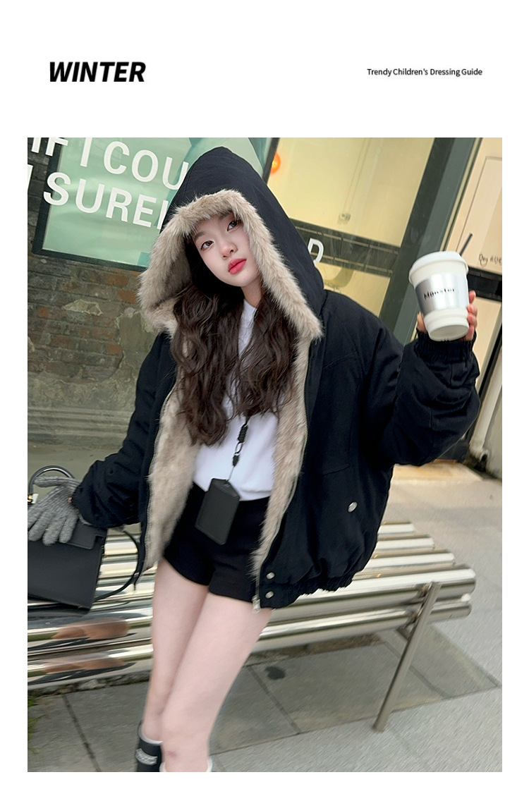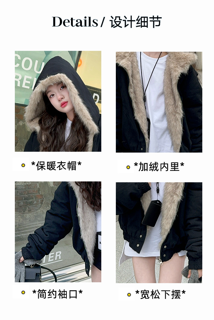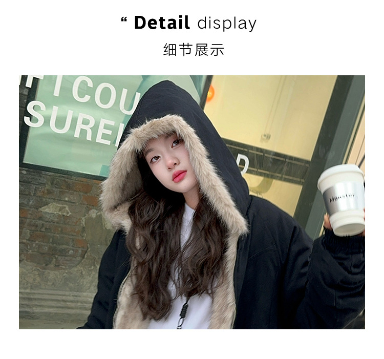 소녀 2025 가을과 겨울 양모 두꺼운 미국 레트로 짧은 후드 울 칼라 디자인 센스 가을과 겨울 파커 코트스토어 가기