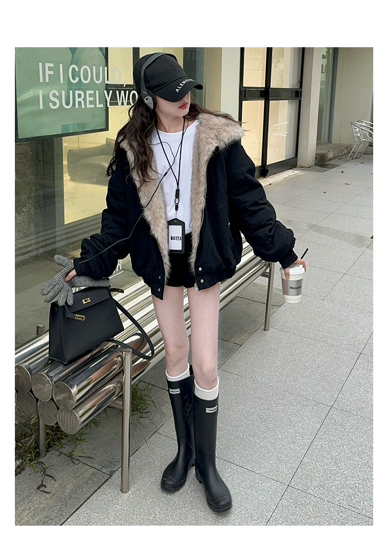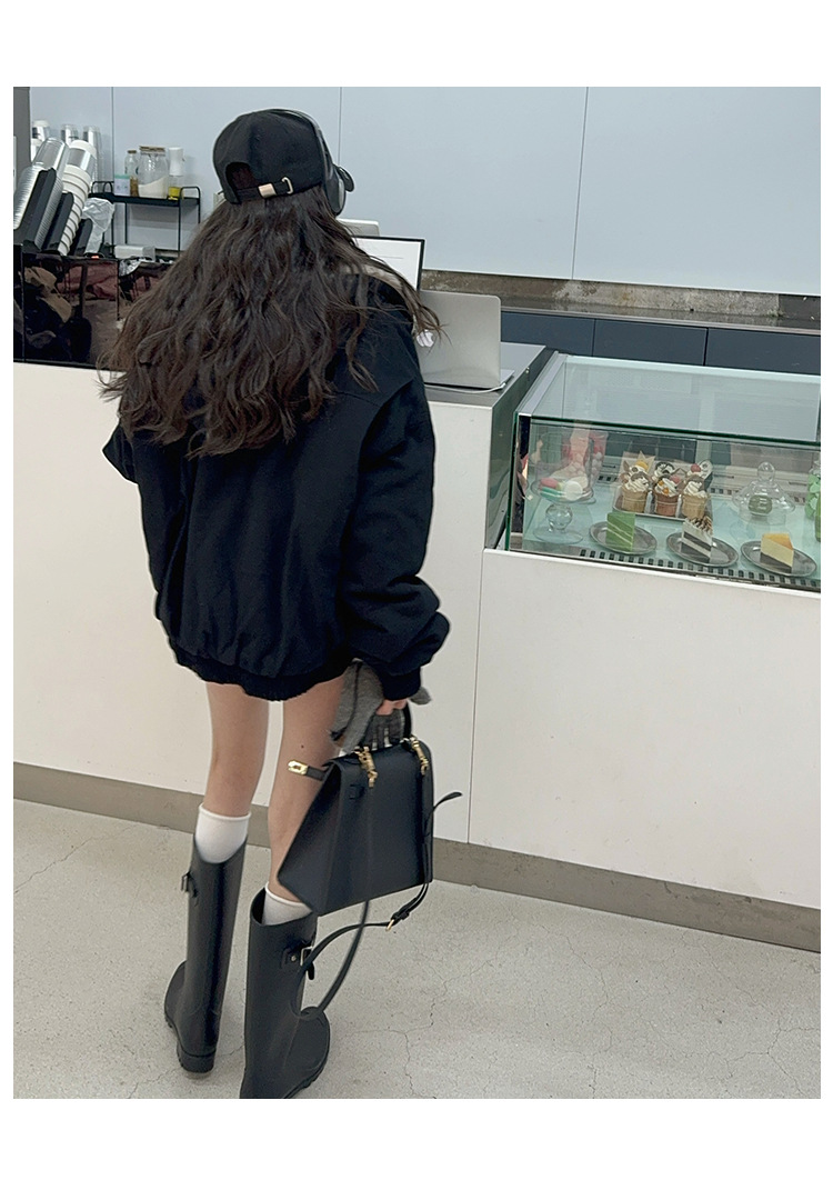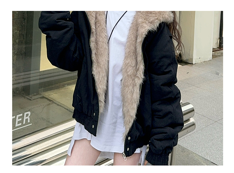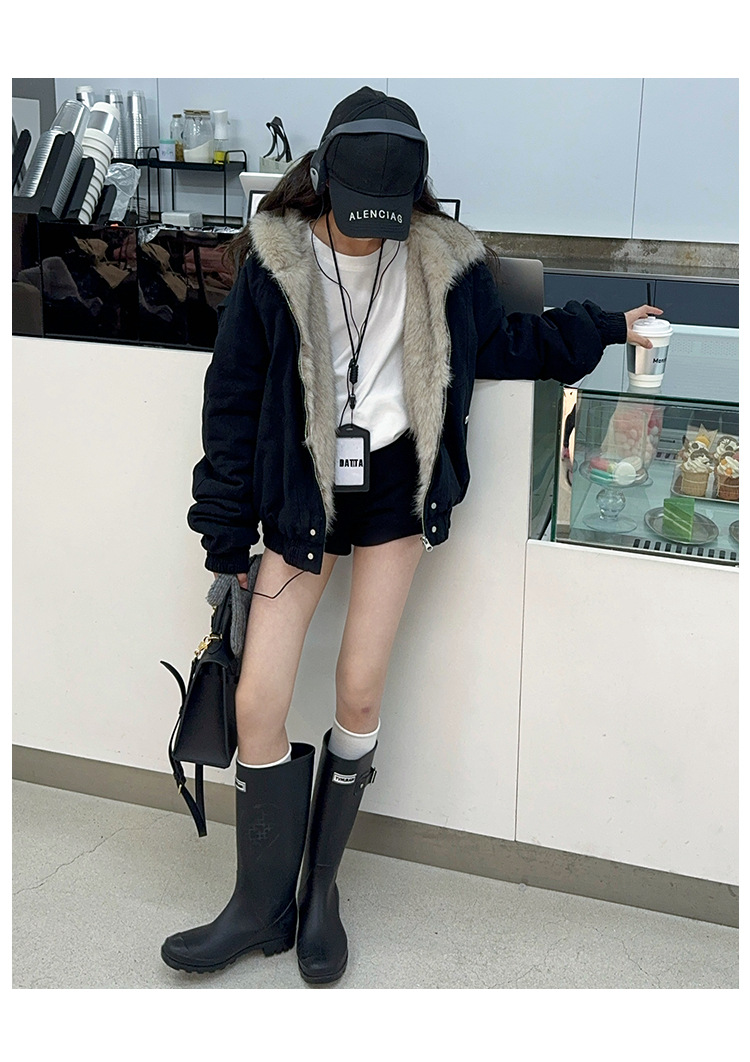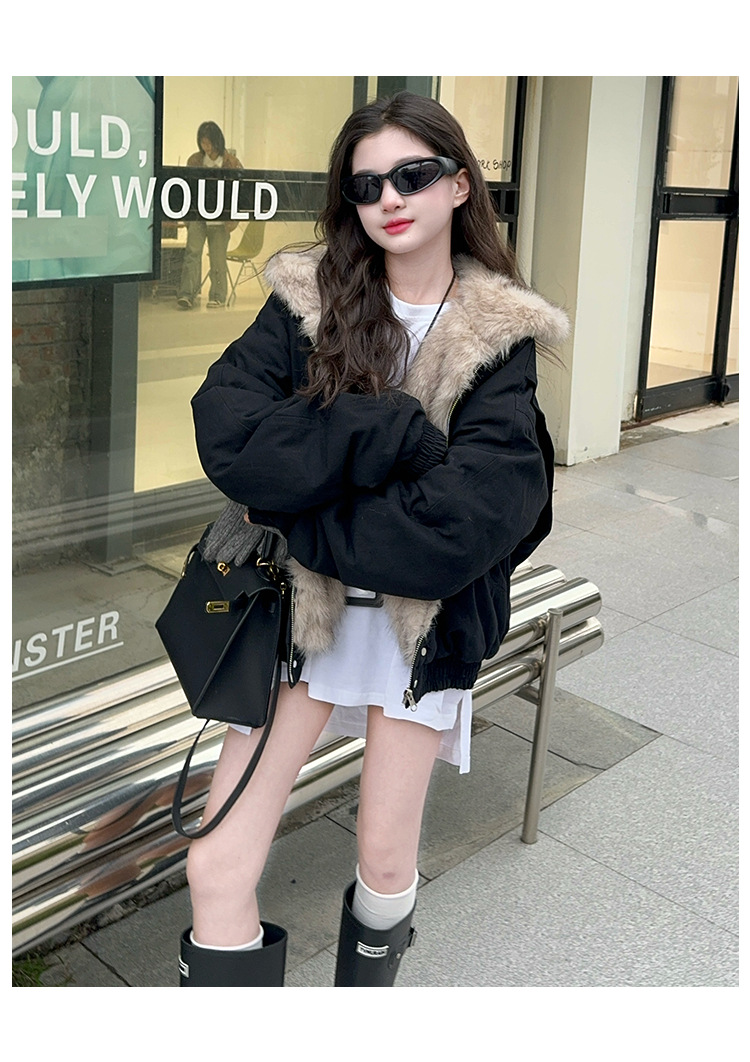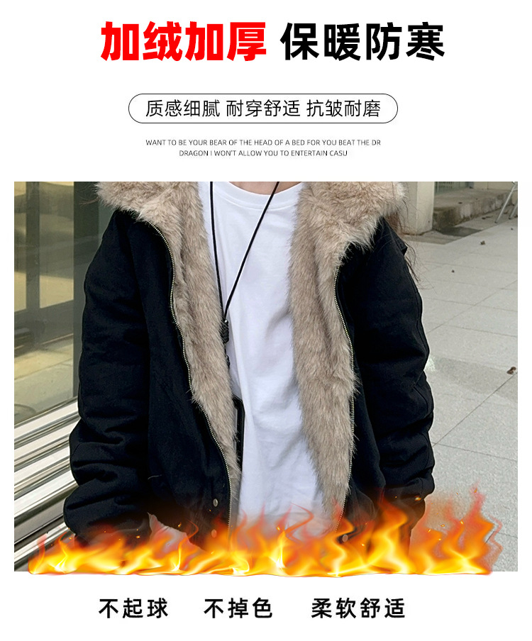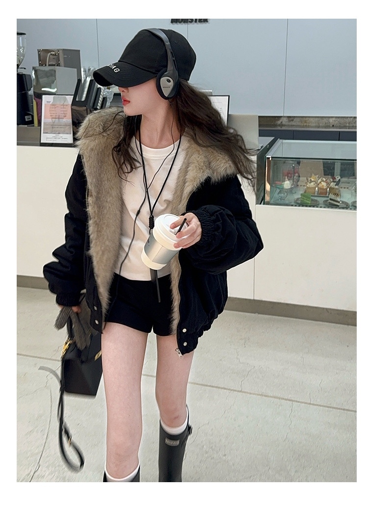 소녀 2025 가을과 겨울 양모 두꺼운 미국 레트로 짧은 후드 울 칼라 디자인 센스 가을과 겨울 파커 코트스토어 가기
