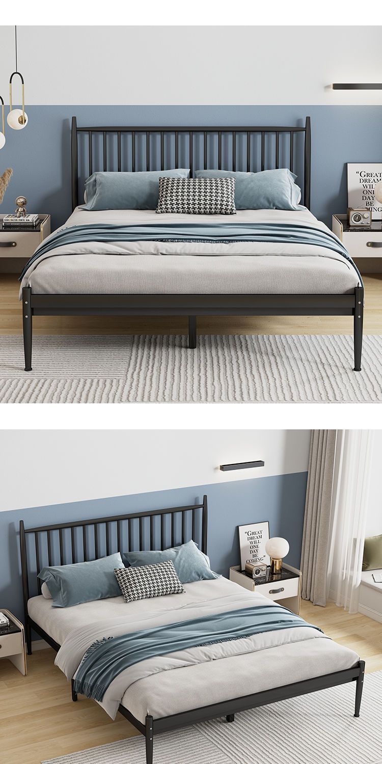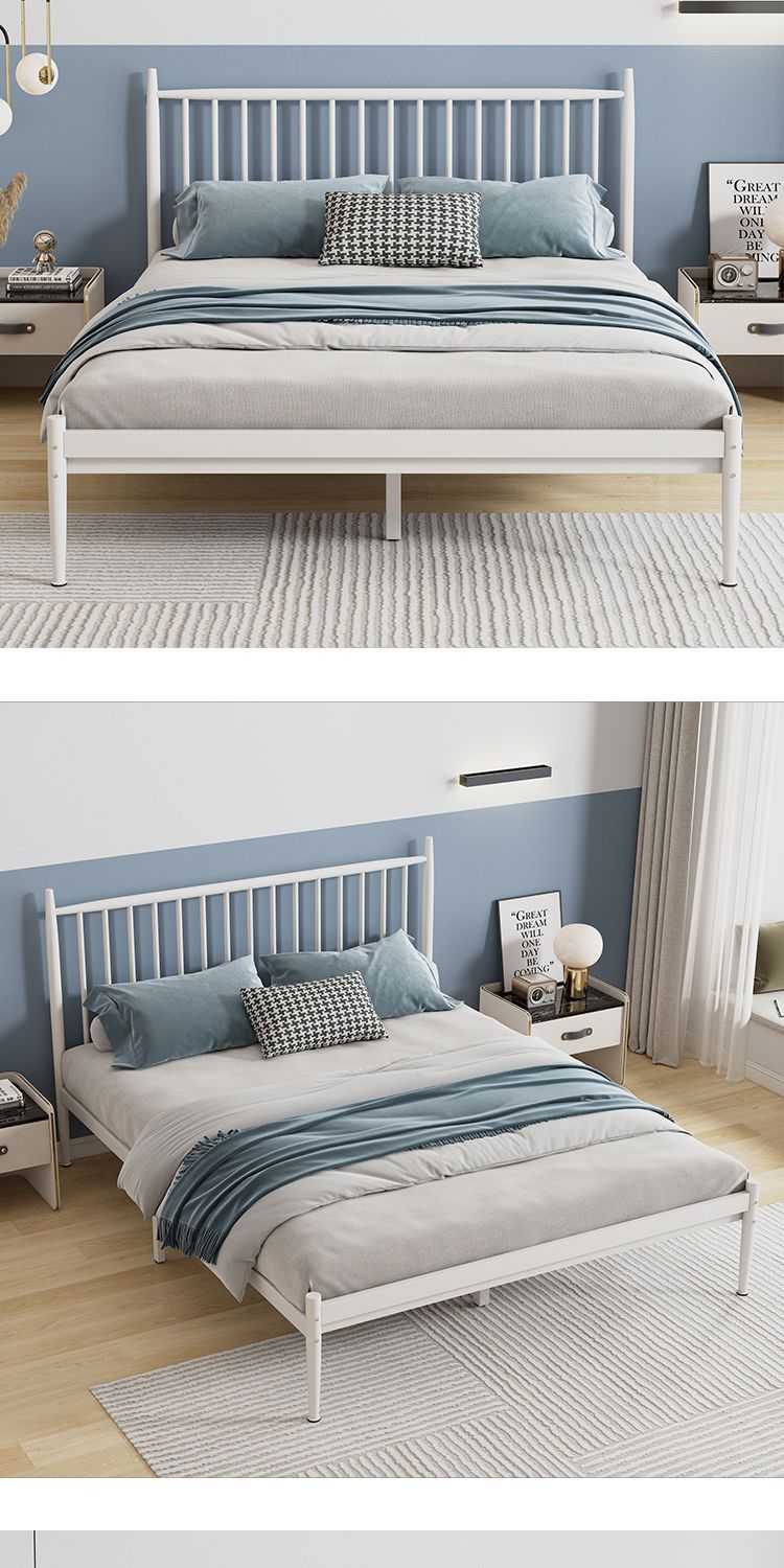 간단한 현대 유럽 금 그물 붉은 철 침대 두꺼운 철제 침대 1.2 미터 1.5 미터 싱글 더블 철 프레임 침대