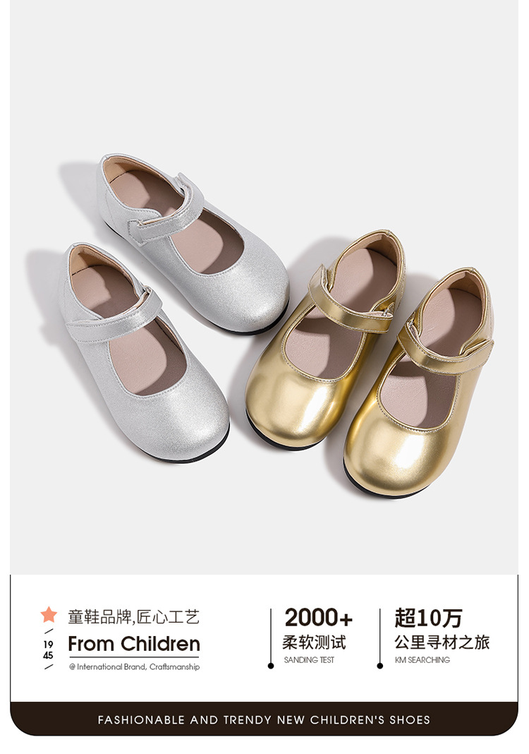 소녀 가죽 신발 공주 신발 2025 봄과 가을 새로운 메리 제인 신발 소프트 단독 아기 소녀 실버 요정 신발 골드스토어 가기