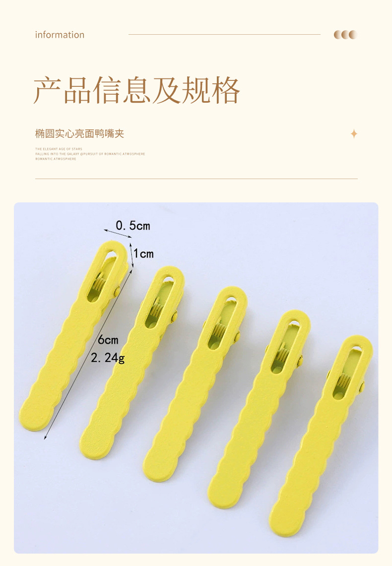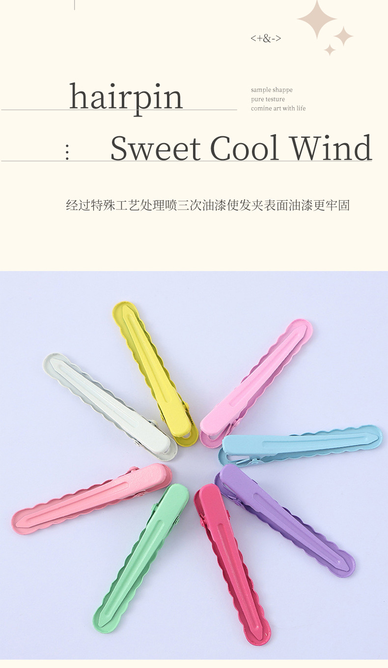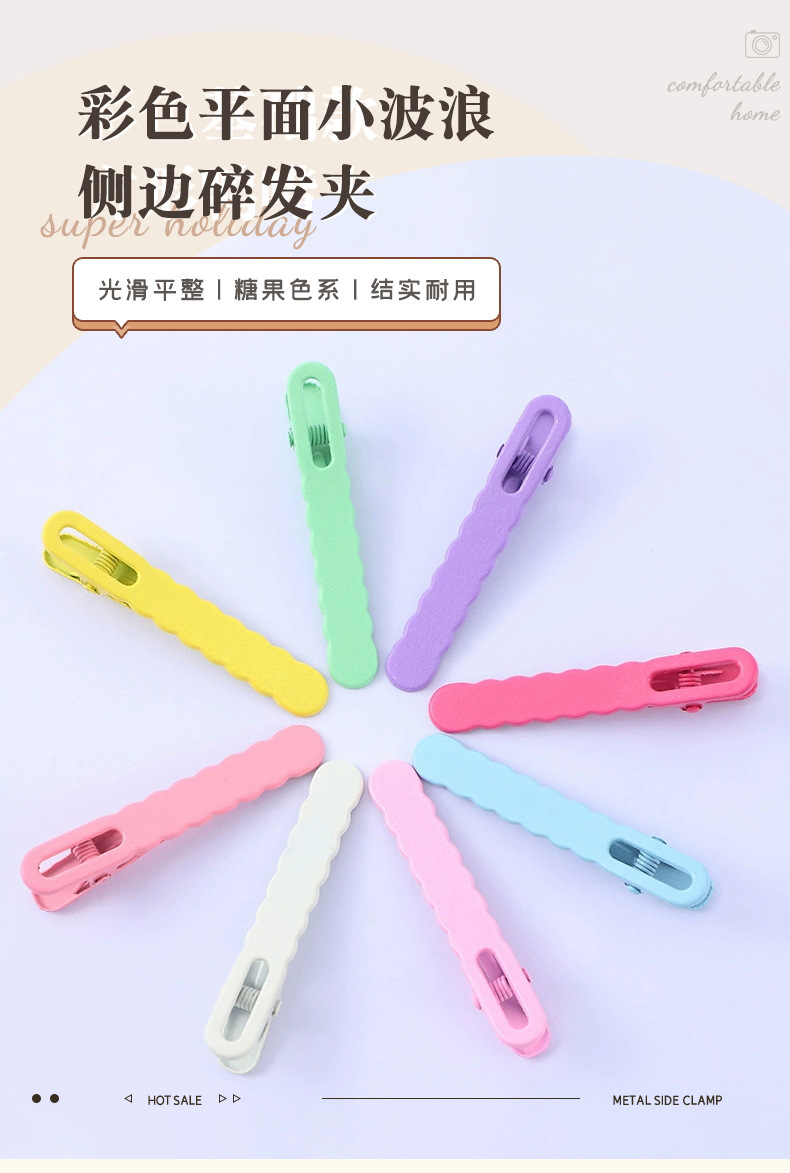 6cm 무자국 헤어핀 평평한 작은 웨이브 사이드 어린이 헤어핀 캔디 컬러 앞머리 덕빌핀 헤어 액세서리 재고 있음