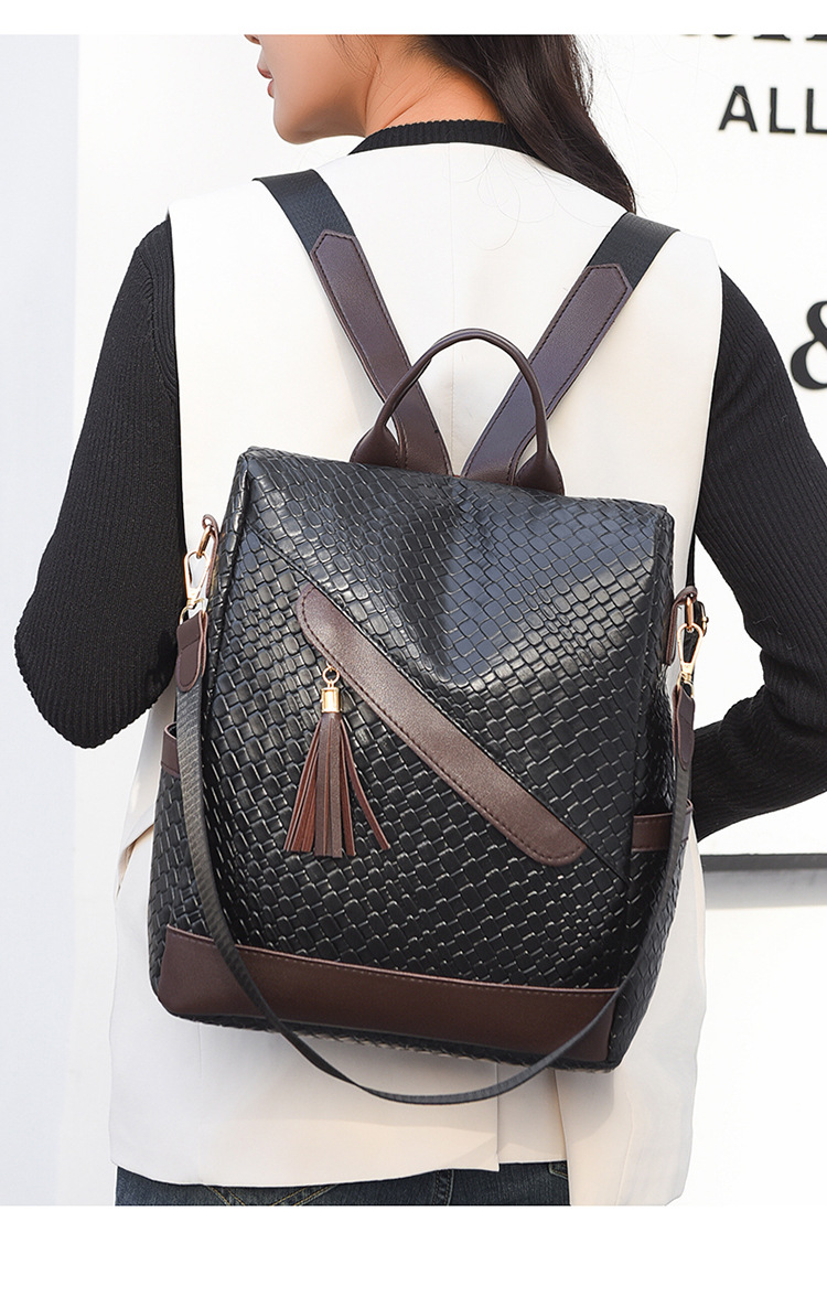 국경 간 PU 소프트 페이스 여성 배낭 새로운 패션 짠 가방 유행 경량 스쿨백 도난 방지 여행 배낭