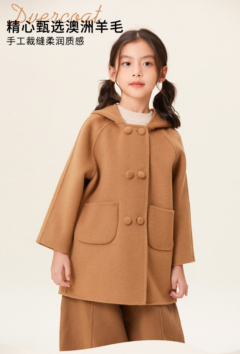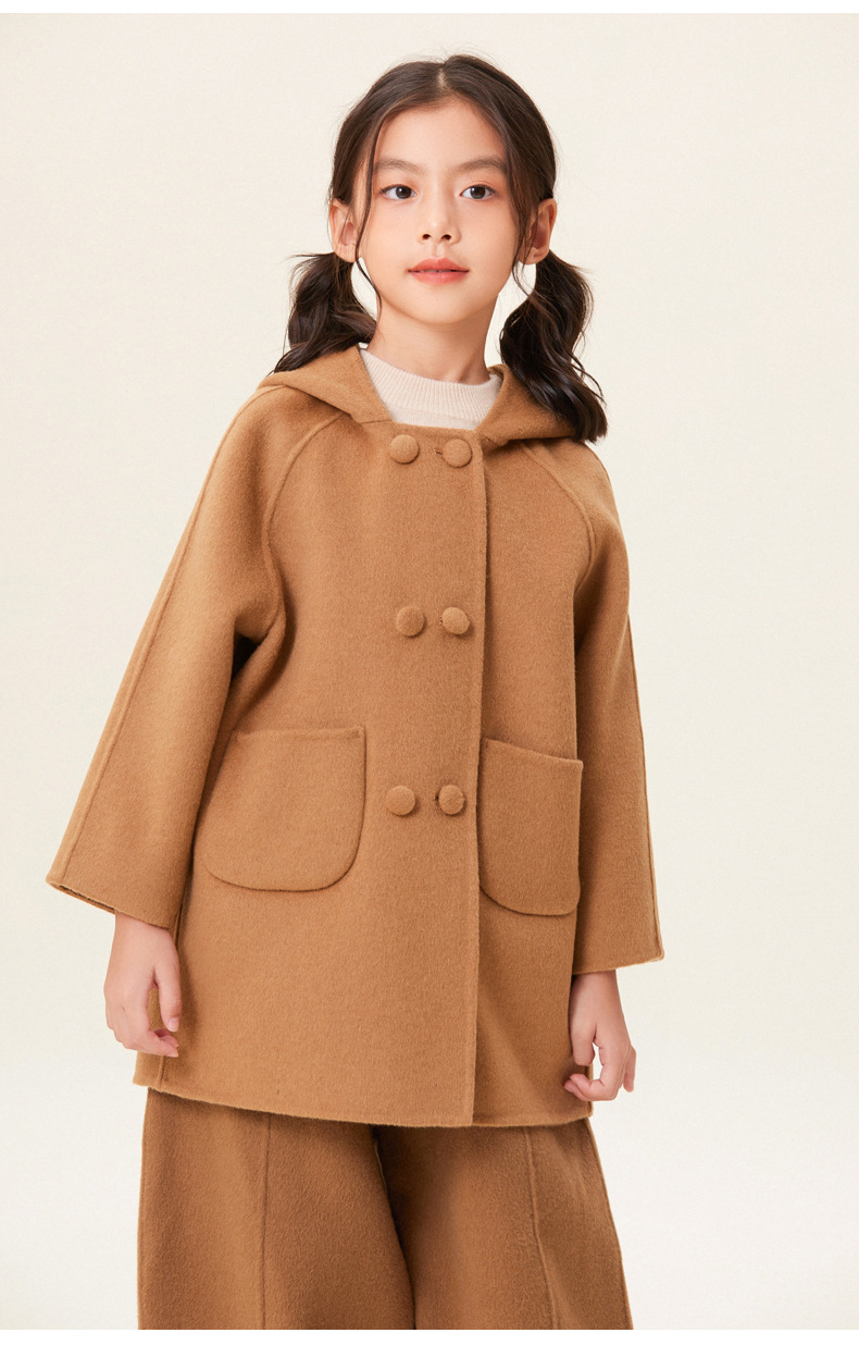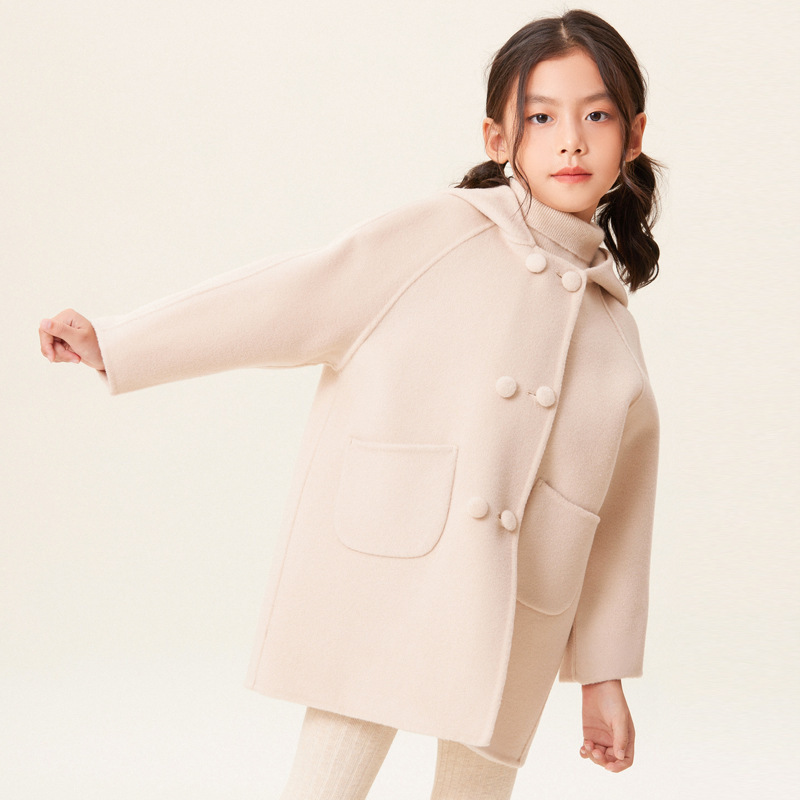 국경 간 어린이 가을과 겨울 새로운 하이 엔드 소녀 양면 울 코트 아동복 한국식 귀여운 후드 코트스토어 가기