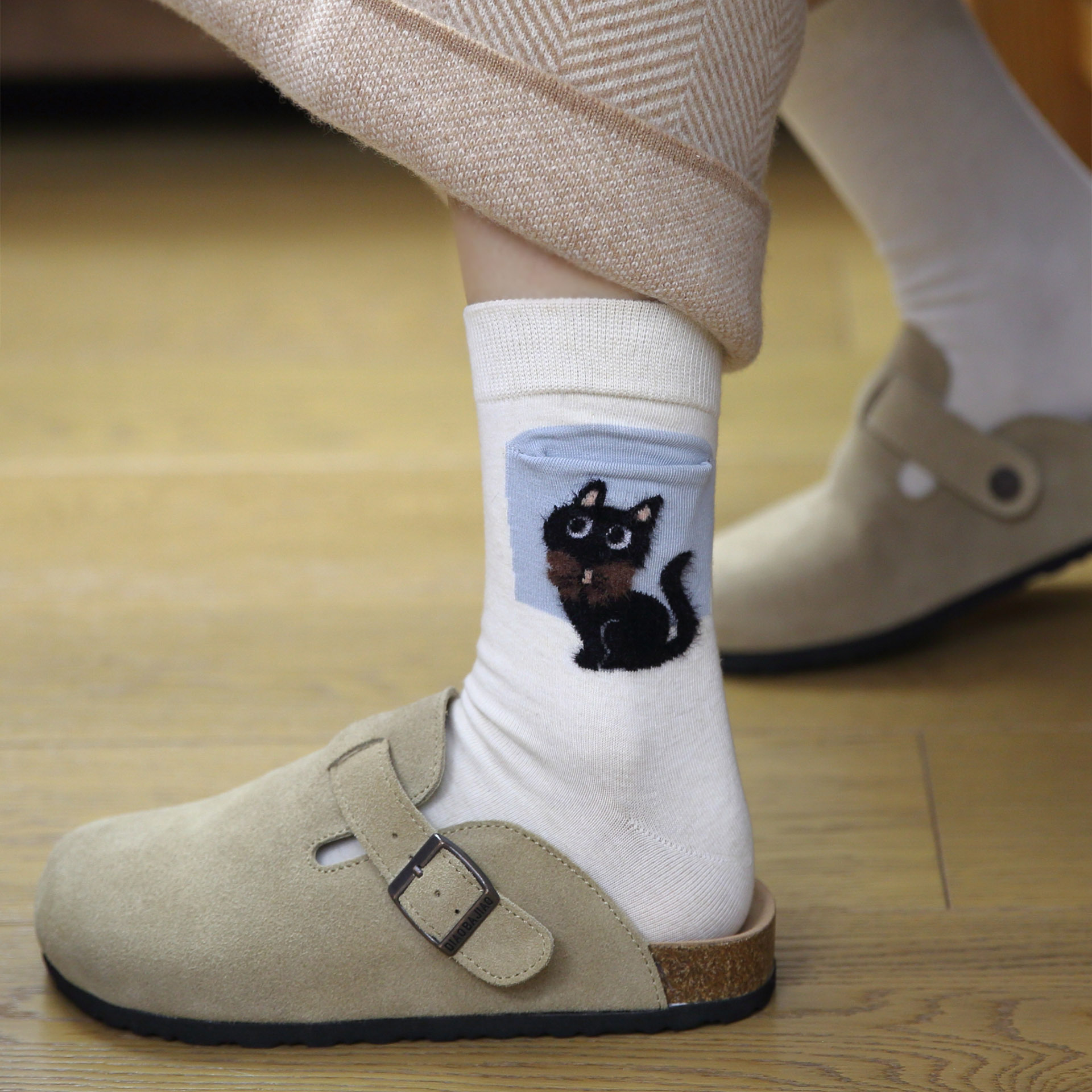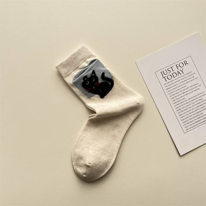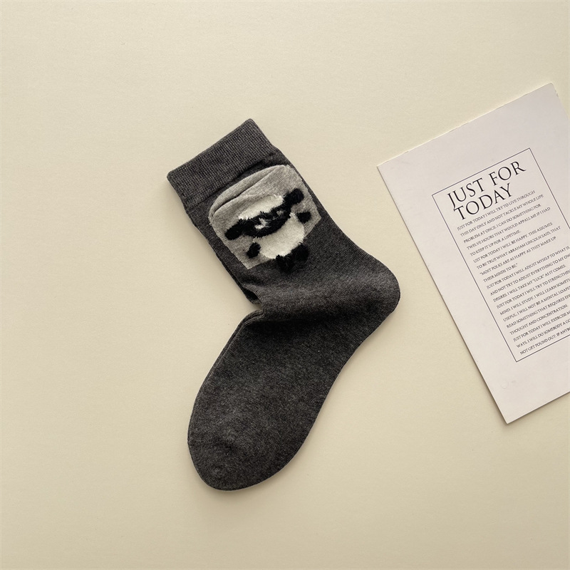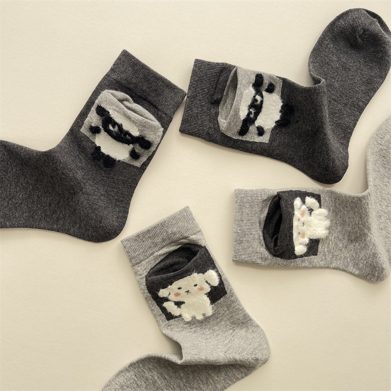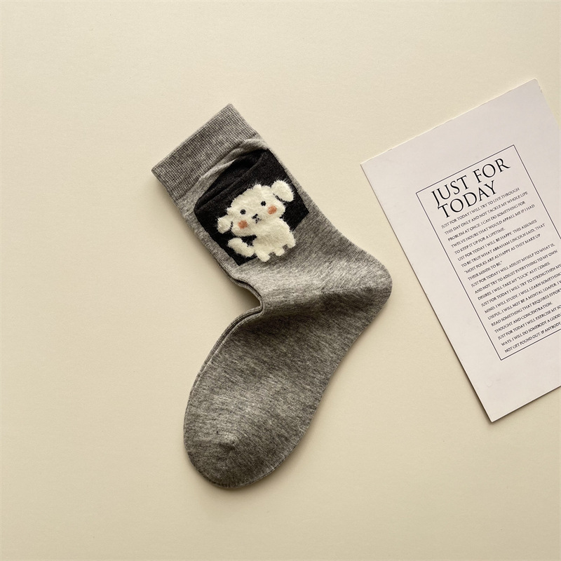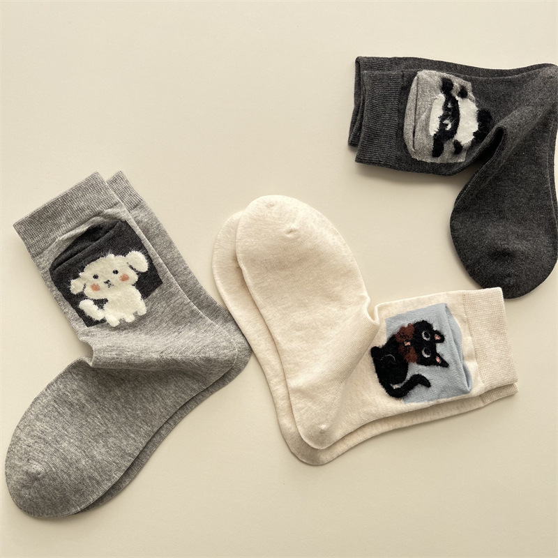 사계절 빗 코튼 만화 동물 양말 한국 스타일 귀여운 포켓 강아지 양고기 미드 튜브 양말 올 매치 통기성 여성 양말
