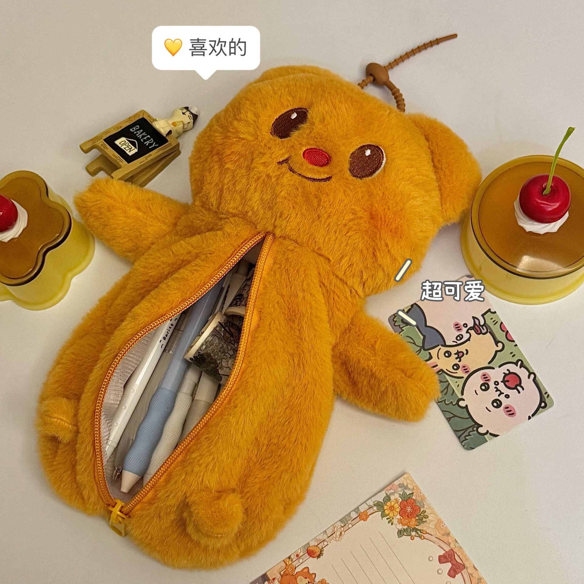 봉제 만화 버터 베어 창조적 인 대용량 연필 가방 생일 새해 선물 장난감 연필 가방 문구 보관