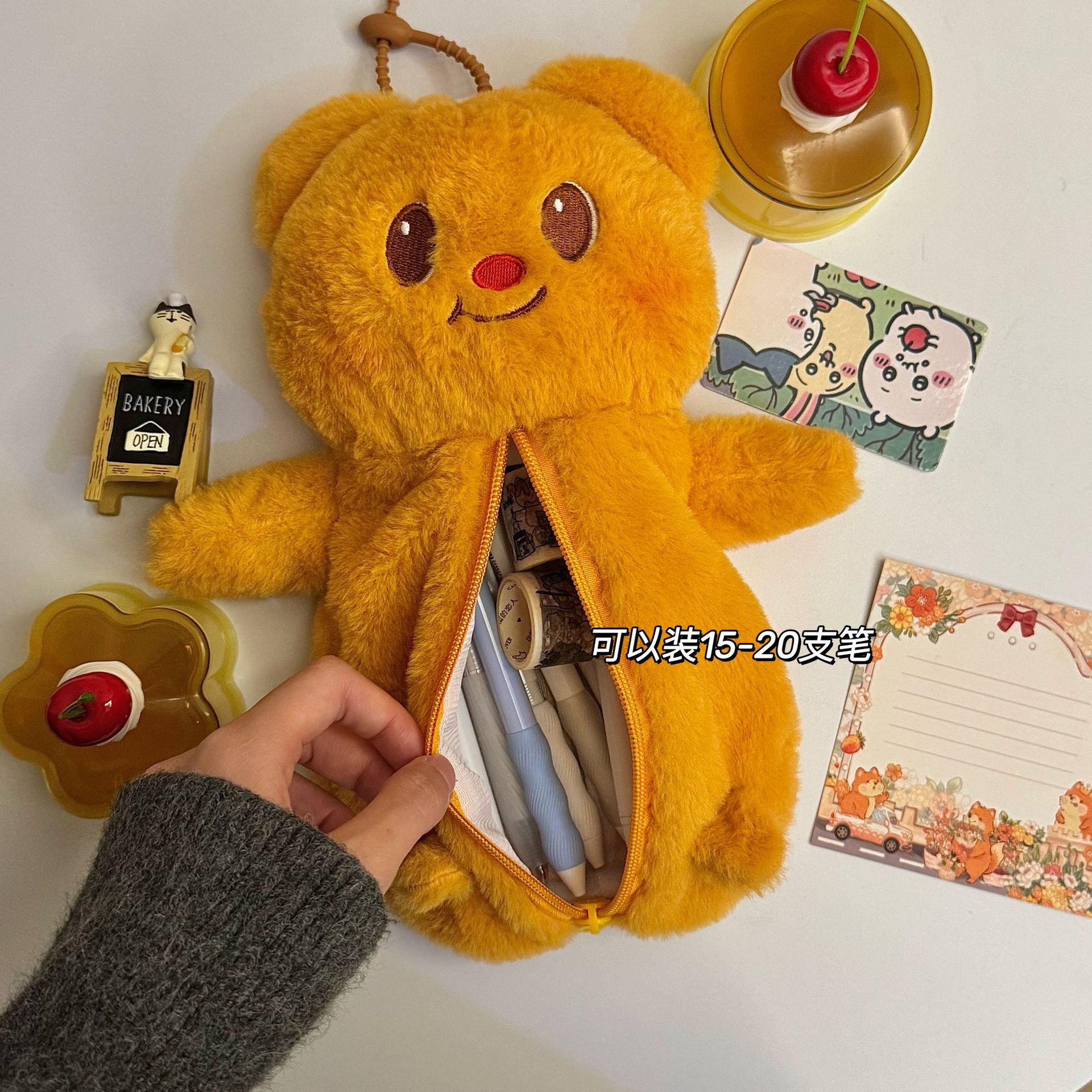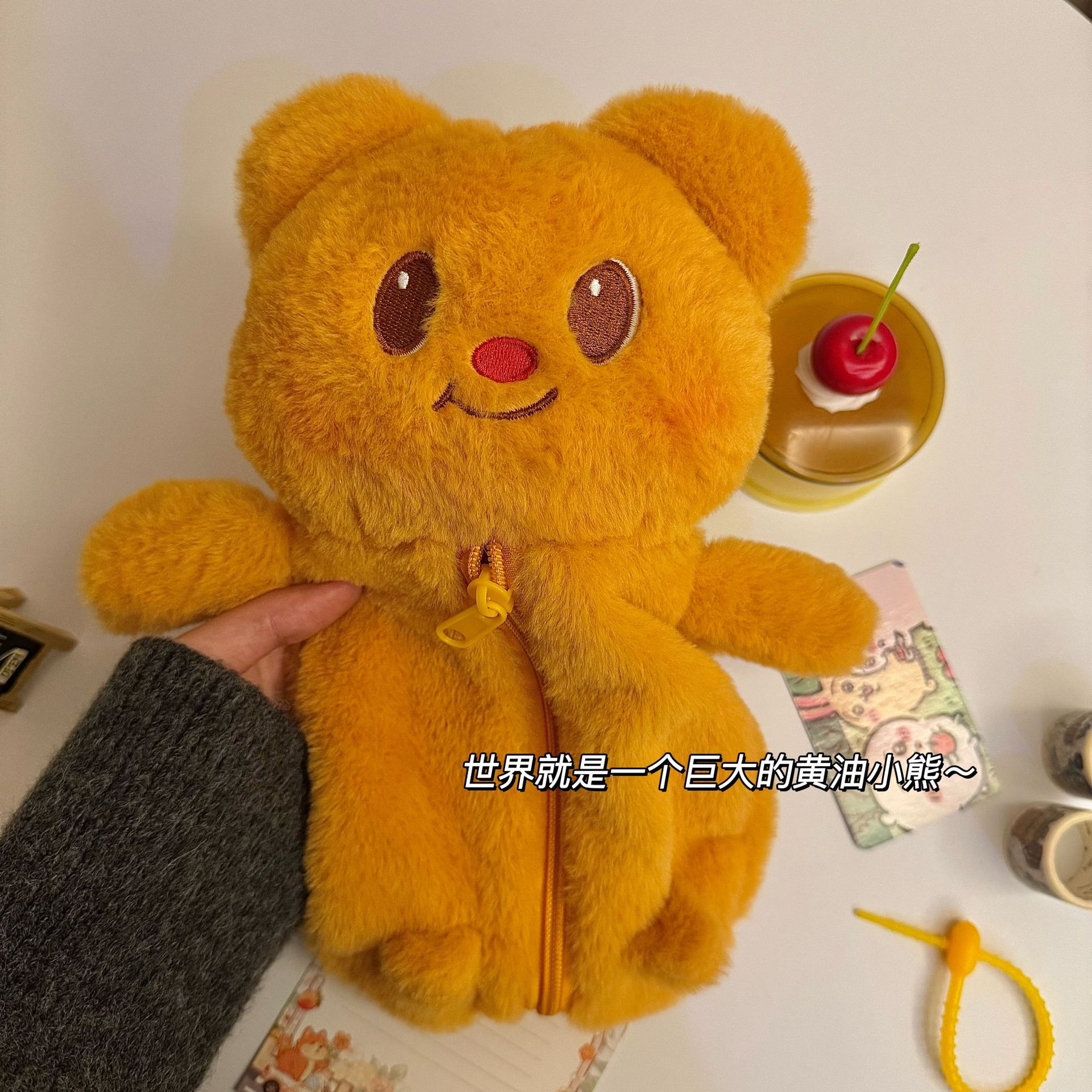 봉제 만화 버터 베어 창조적 인 대용량 연필 가방 생일 새해 선물 장난감 연필 가방 문구 보관스토어 가기