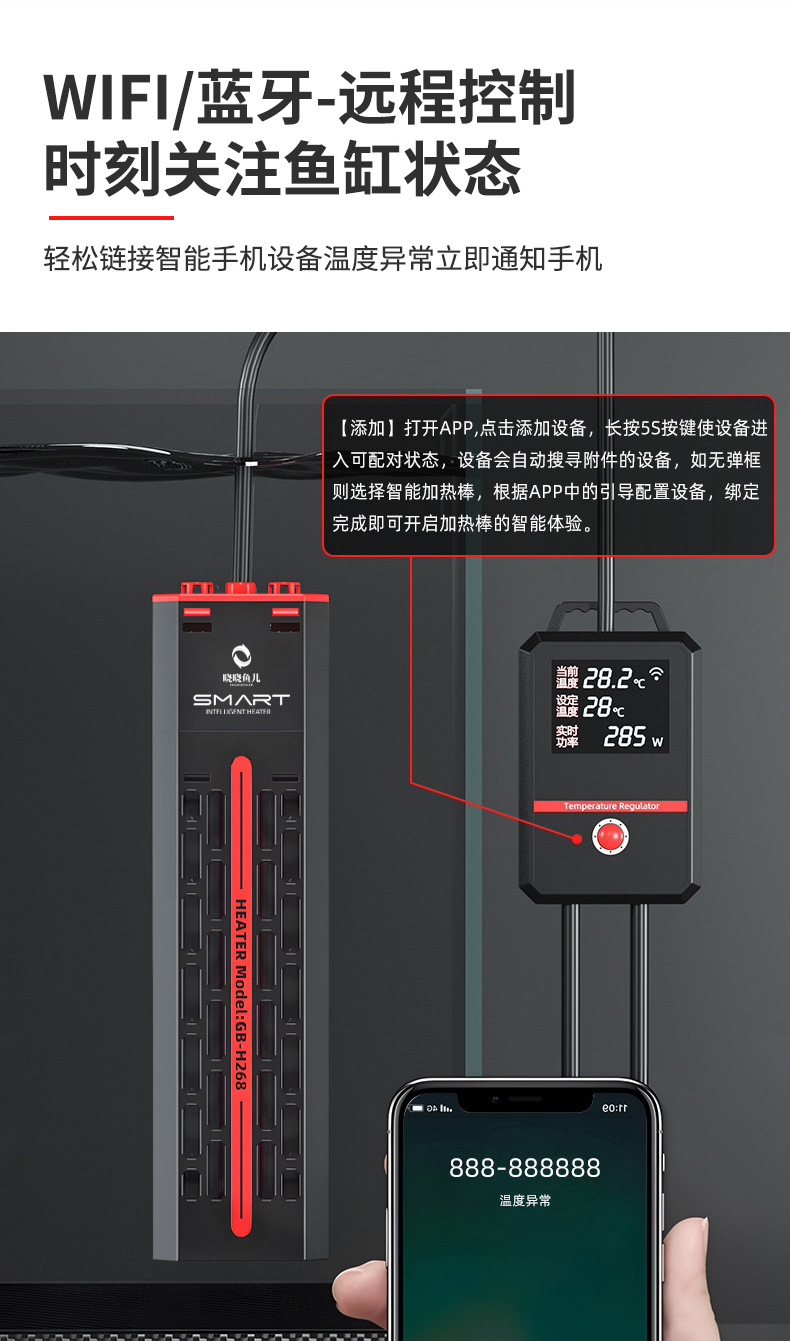 물고기 탱크 가열 막대 석영 폭발 방지 WIFI 지능형 자동 일정한 온도 주파수 변환 거북이 가열 막대 온도 조절기 전력 절약