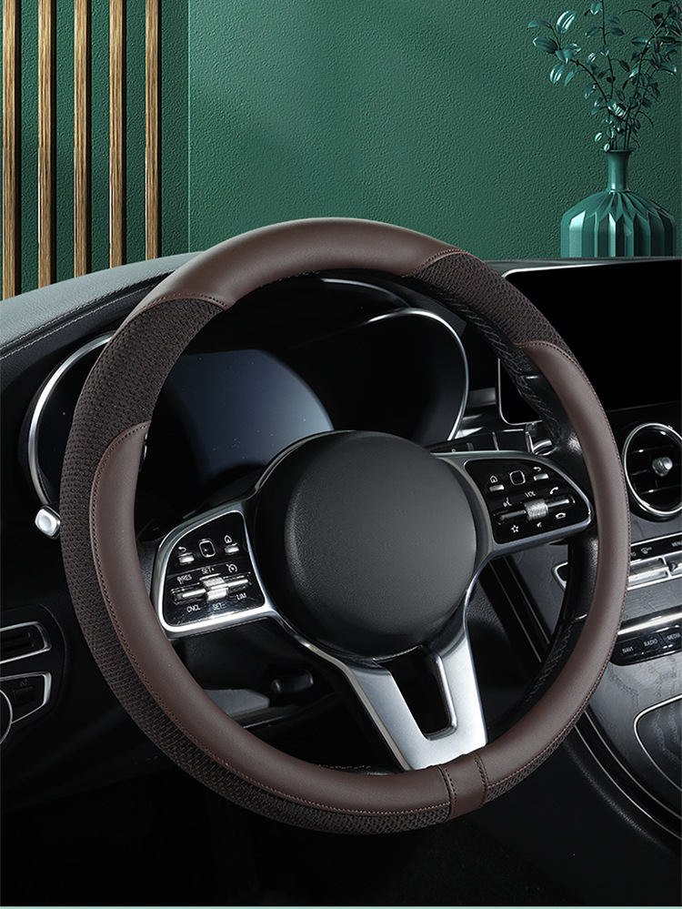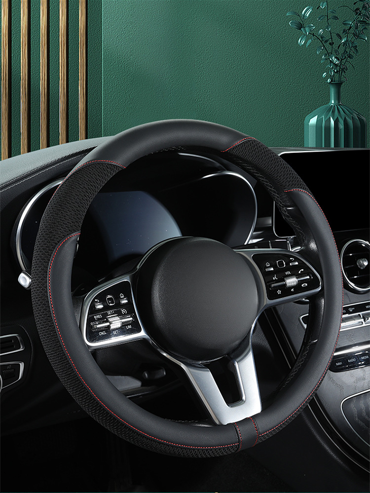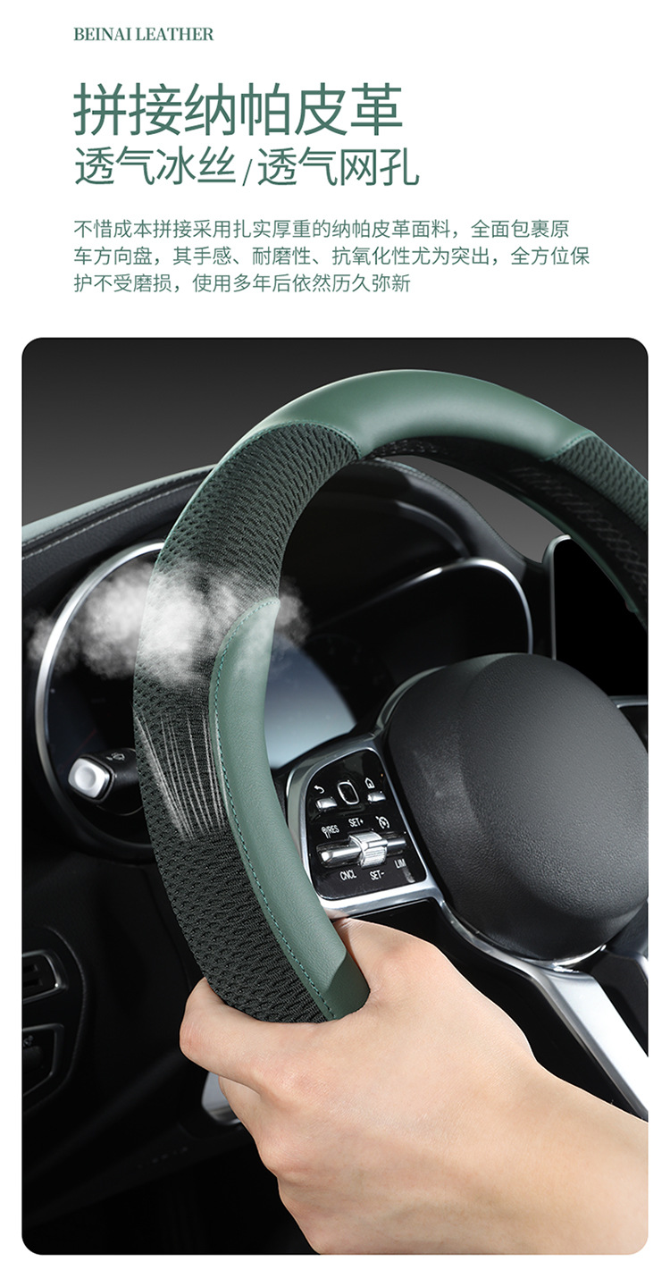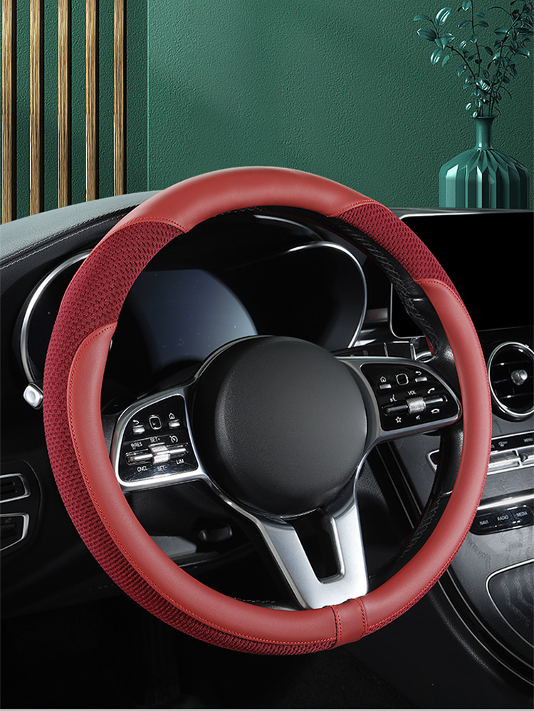 국경 간 스티어링 휠 커버 자동차 스티어링 휠 커버 여름 남성 통기성 아이스 실크 미끄럼 통기성 땀 흡수성 여성용 핸드 그립 커버