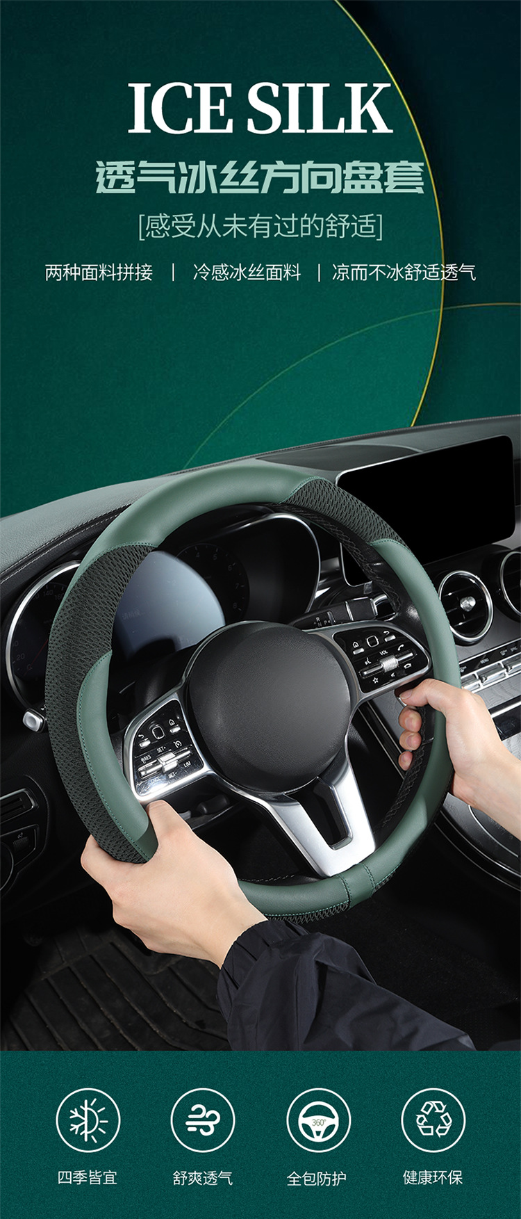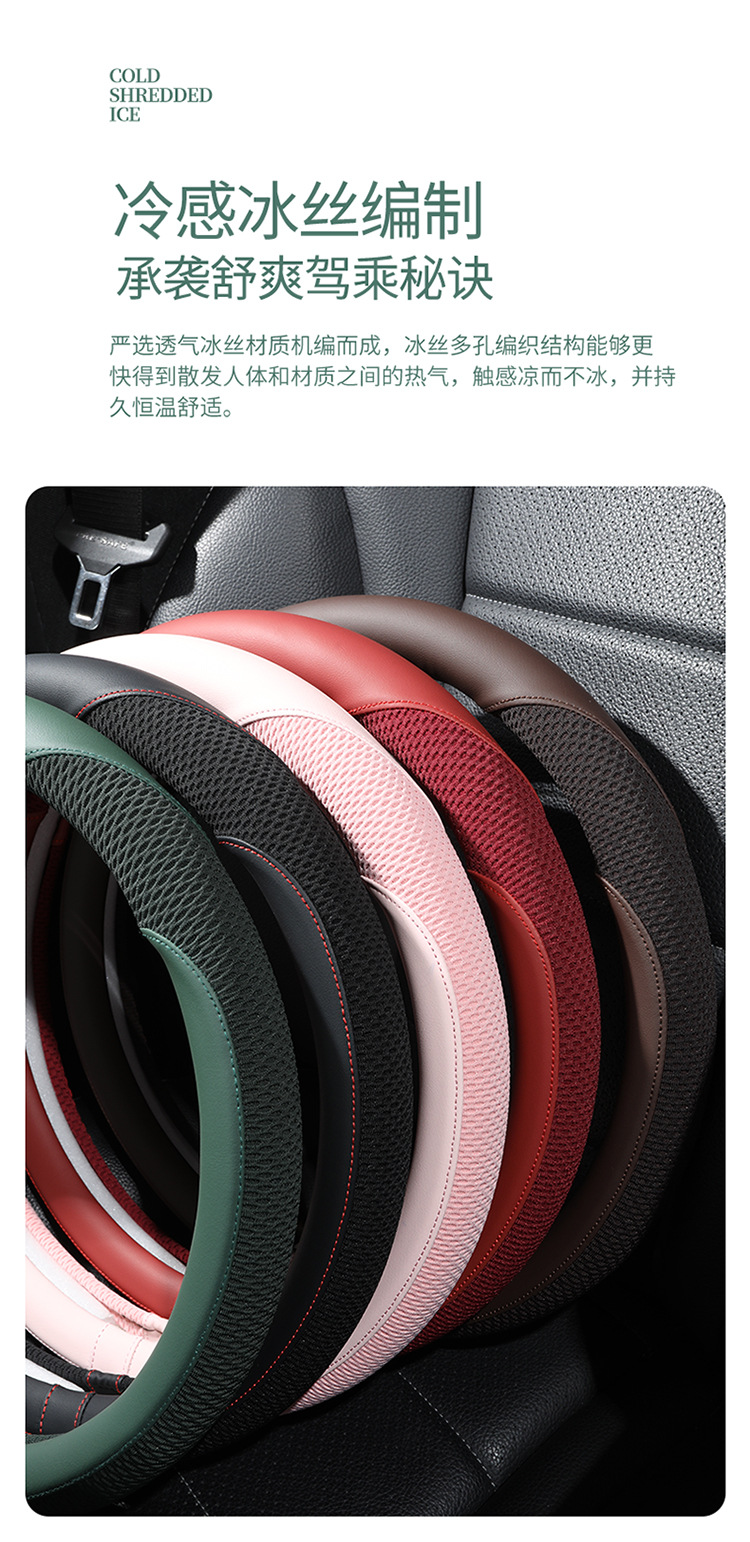 국경 간 스티어링 휠 커버 자동차 스티어링 휠 커버 여름 남성 통기성 아이스 실크 미끄럼 통기성 땀 흡수성 여성용 핸드 그립 커버스토어 가기