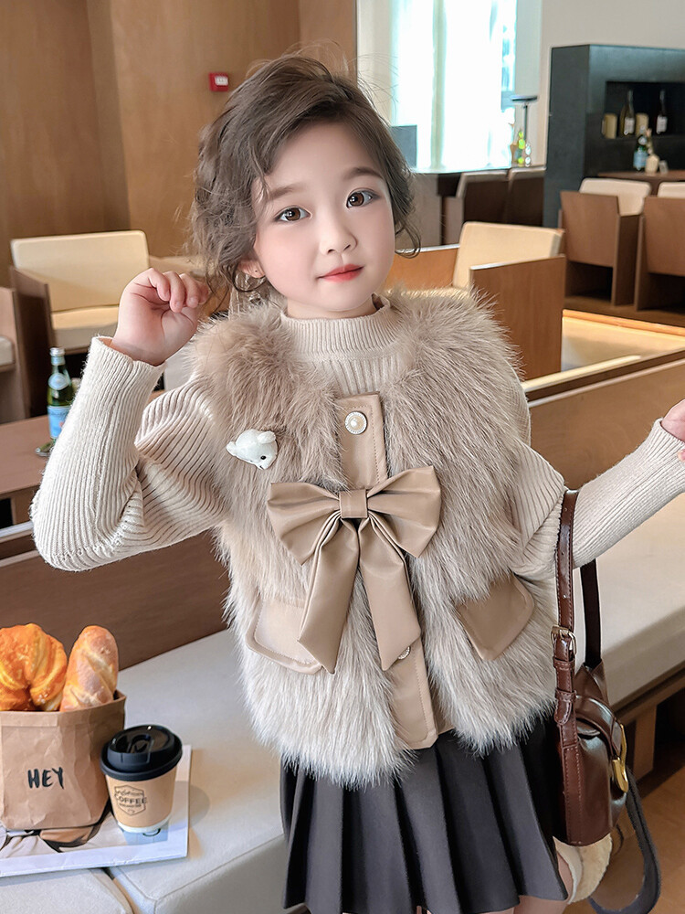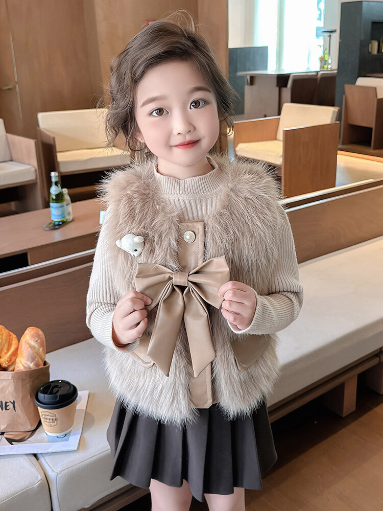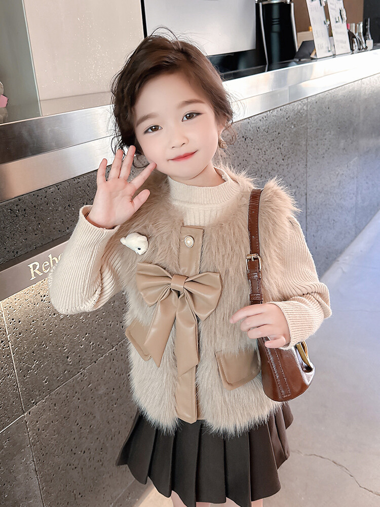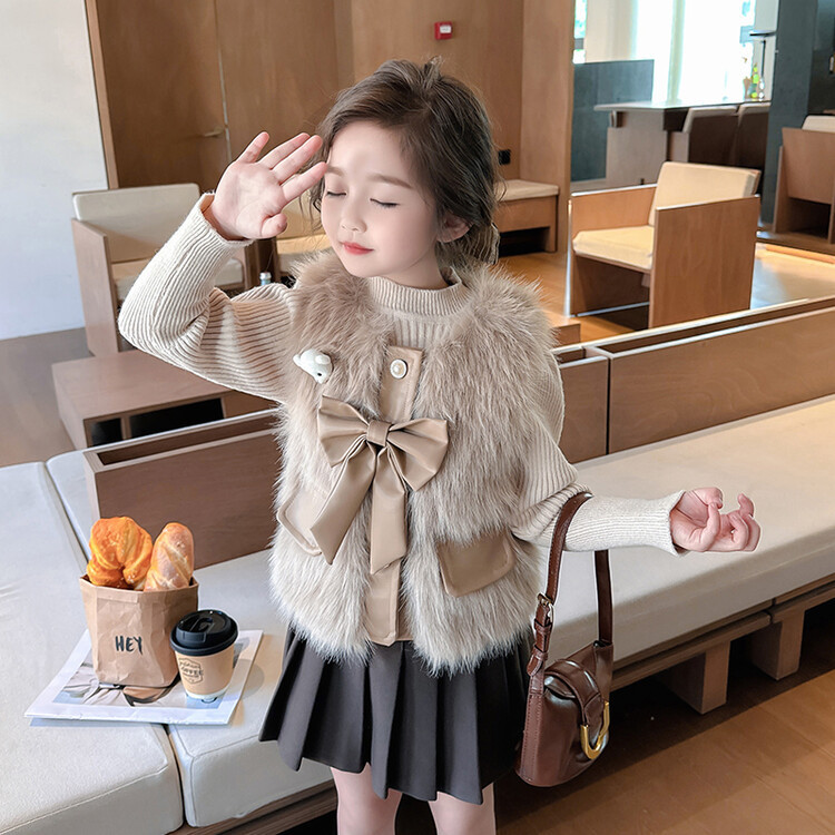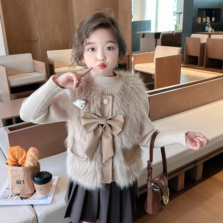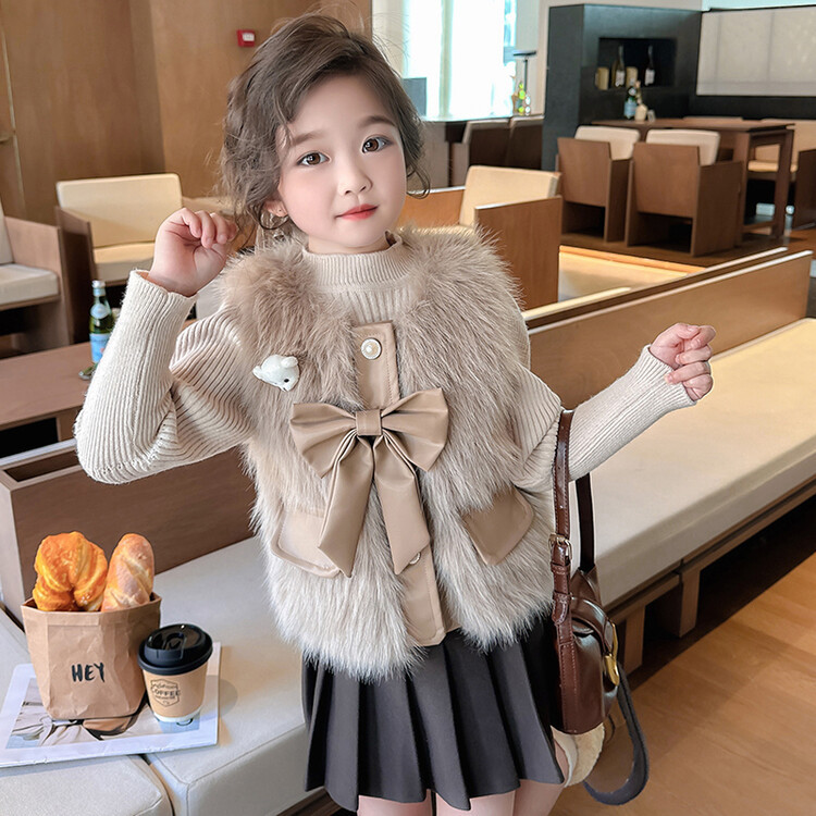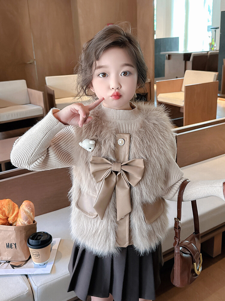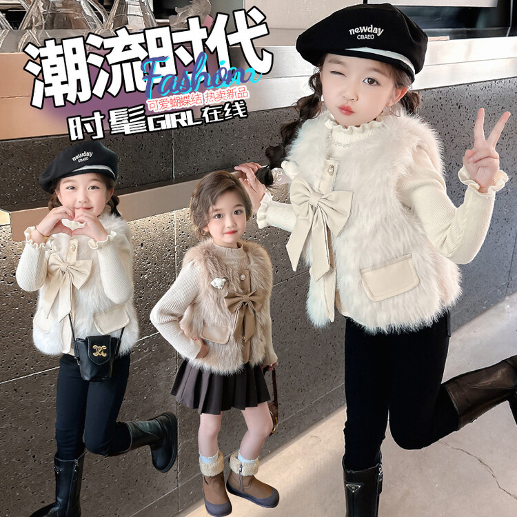 여자 2024 겨울 새로운 어린이 나비 조끼 한국 아동복 헤어 모피 조끼의 세대