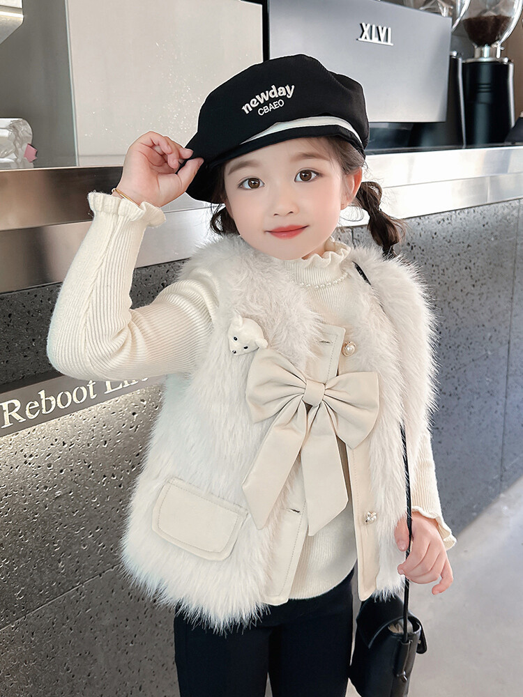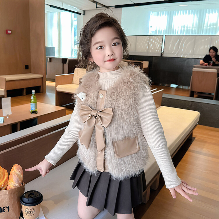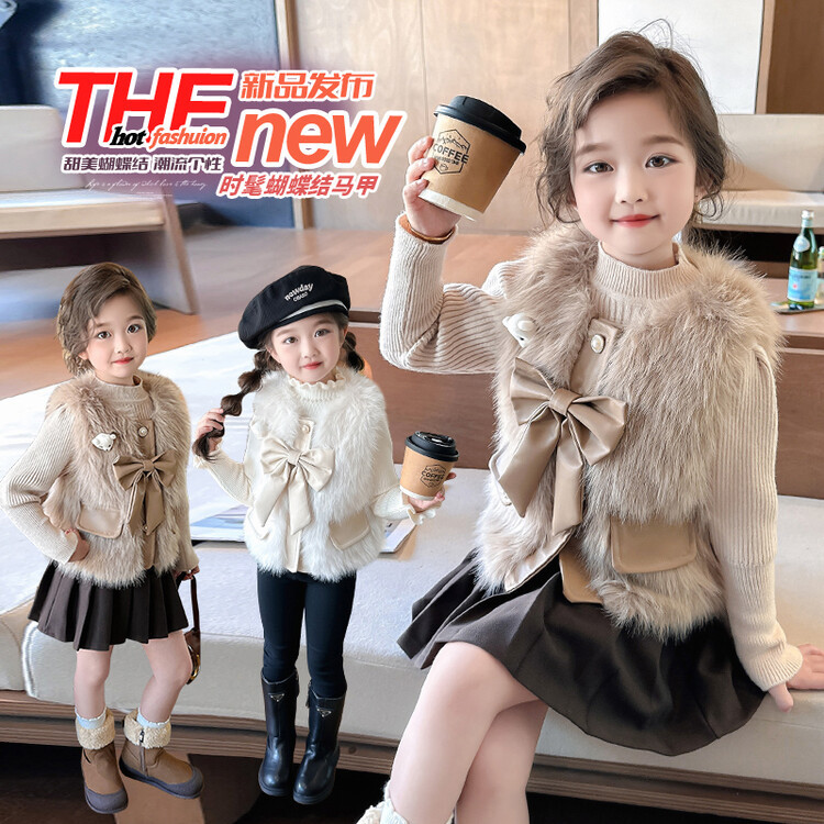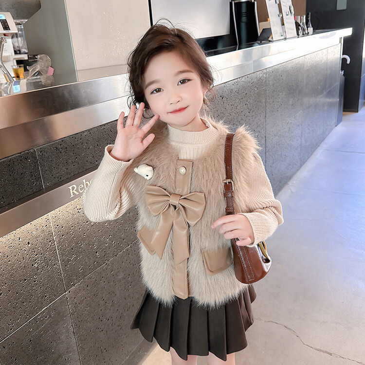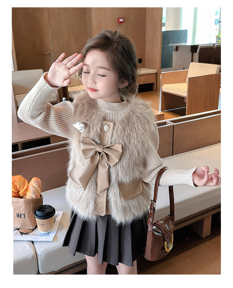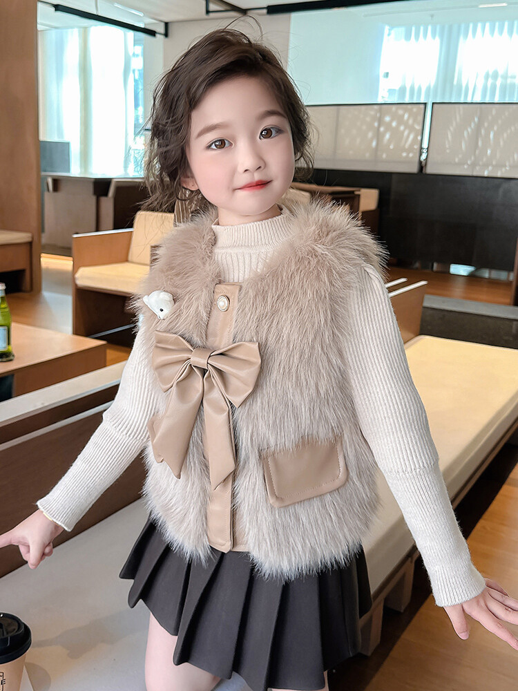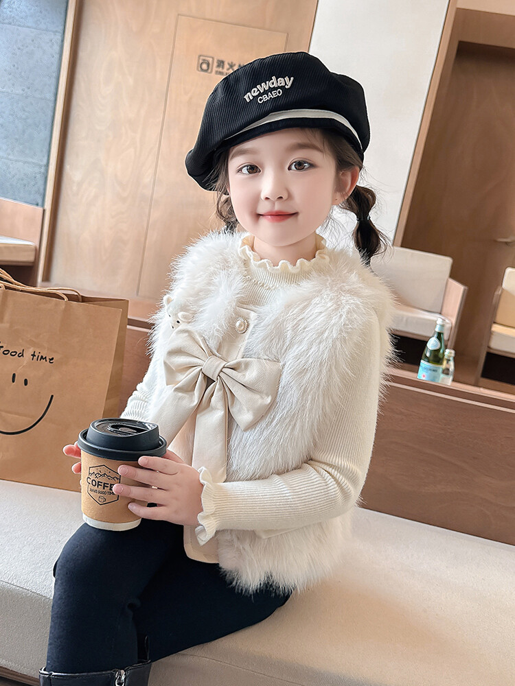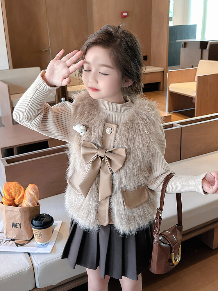 여자 2024 겨울 새로운 어린이 나비 조끼 한국 아동복 헤어 모피 조끼의 세대