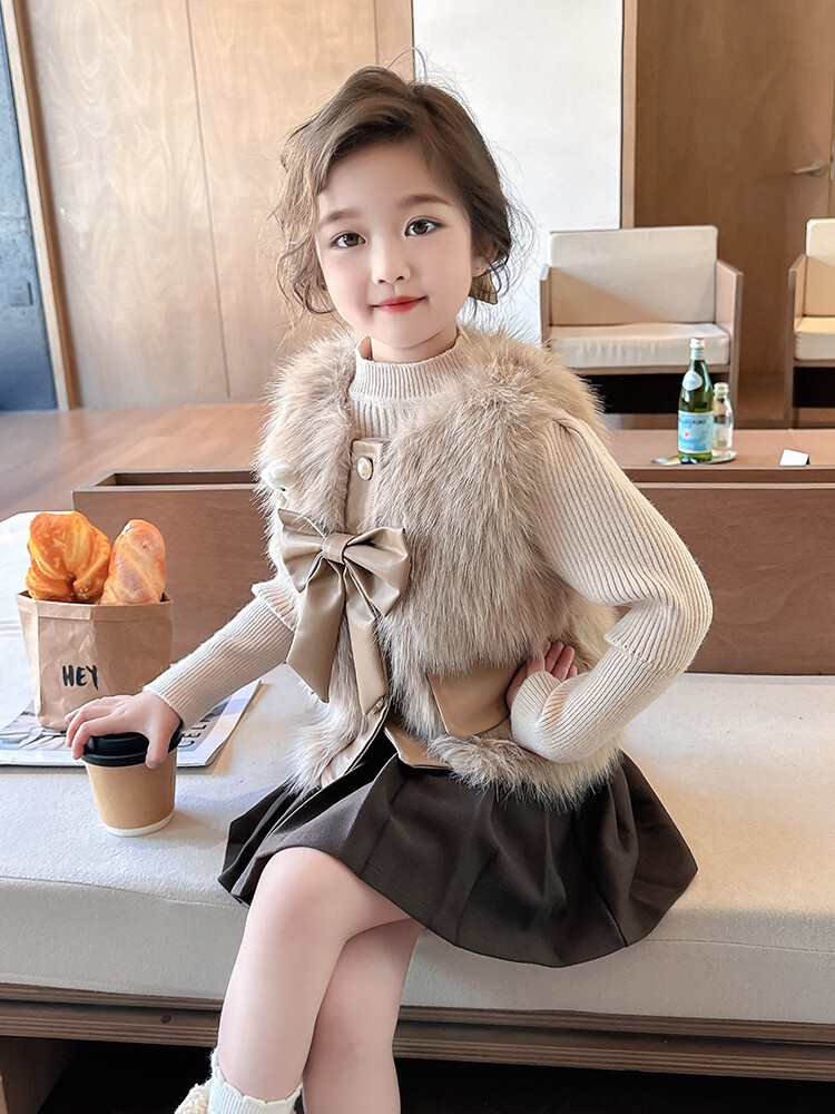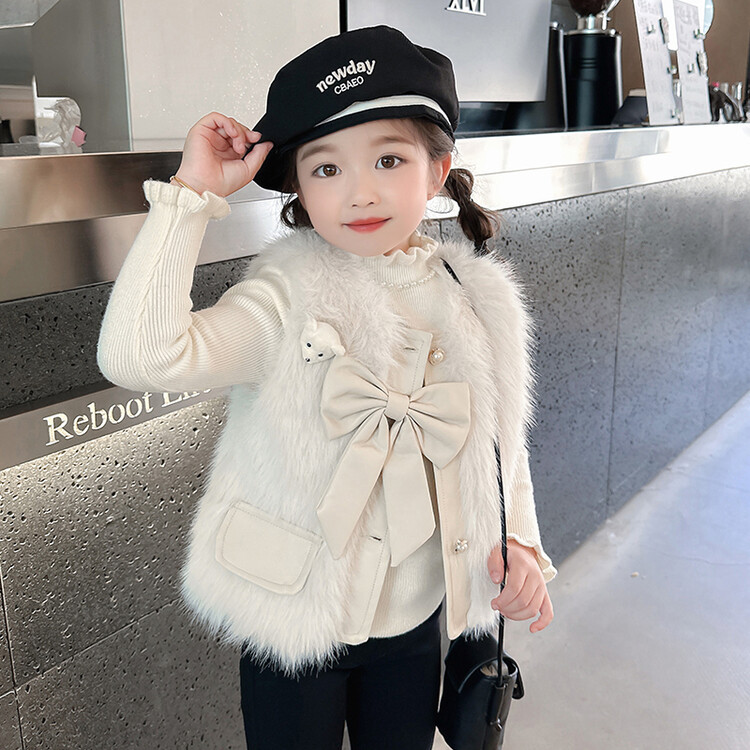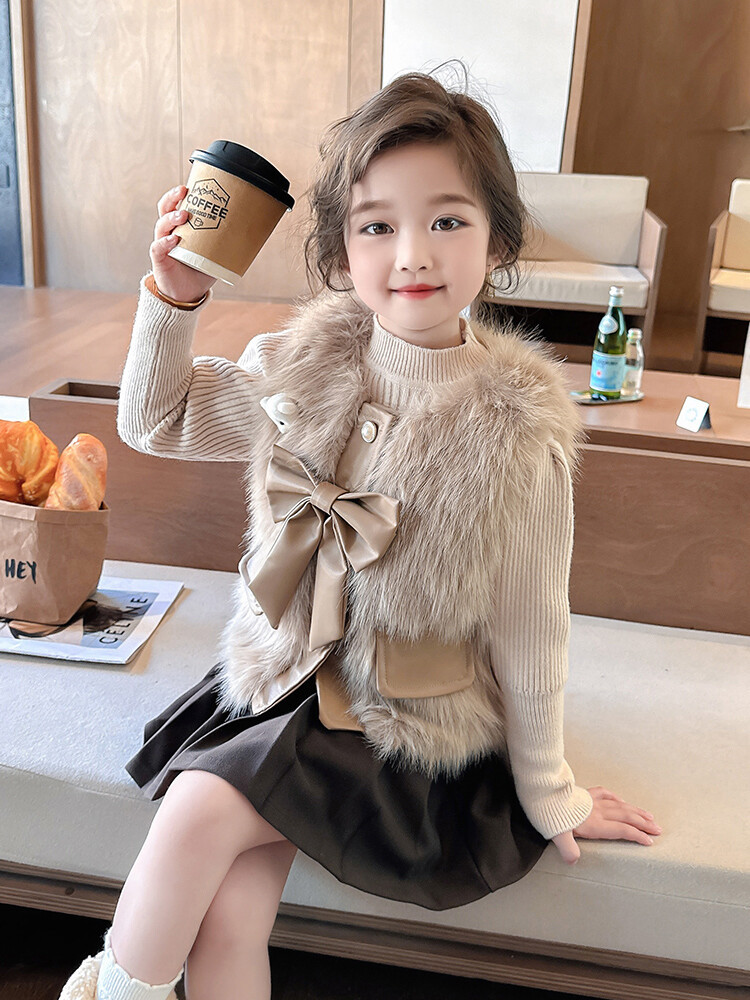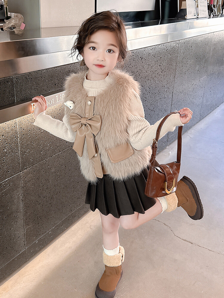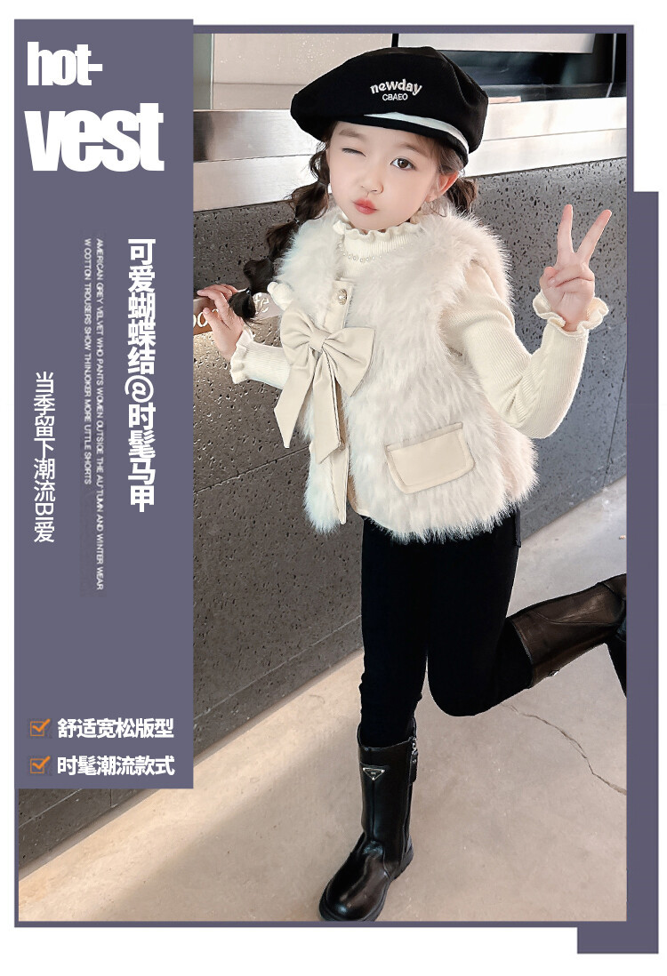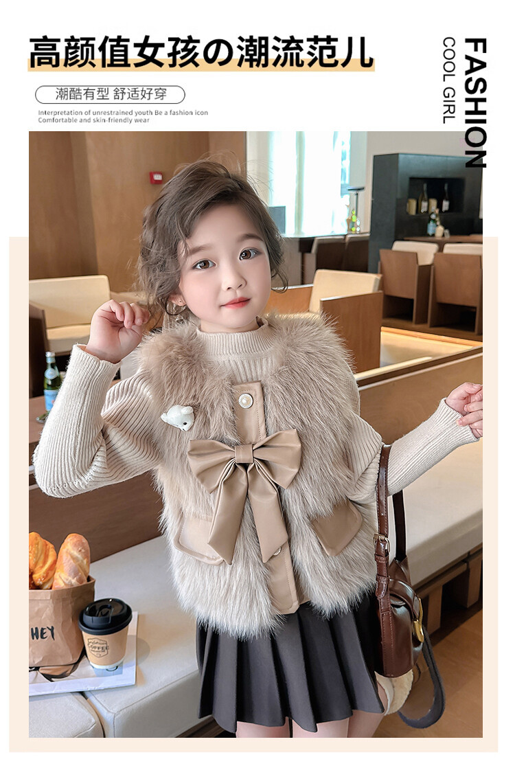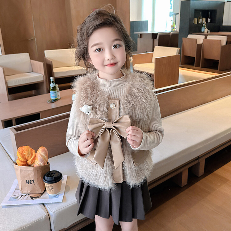 여자 2024 겨울 새로운 어린이 나비 조끼 한국 아동복 헤어 모피 조끼의 세대