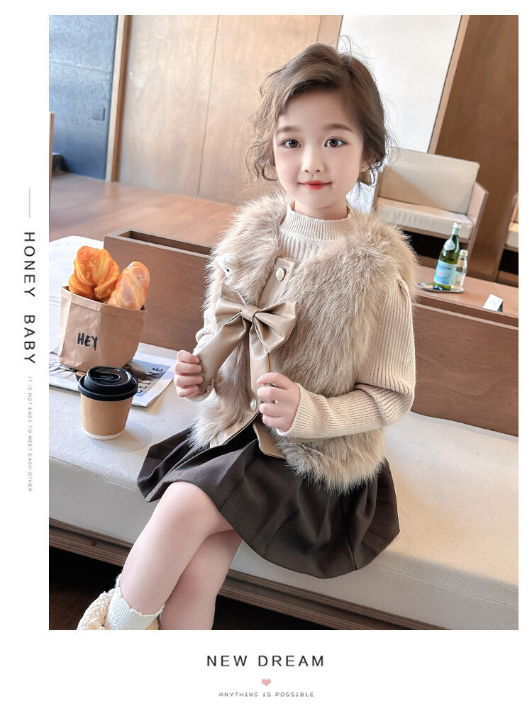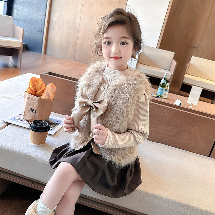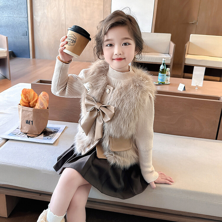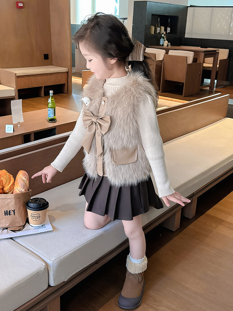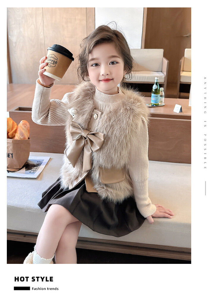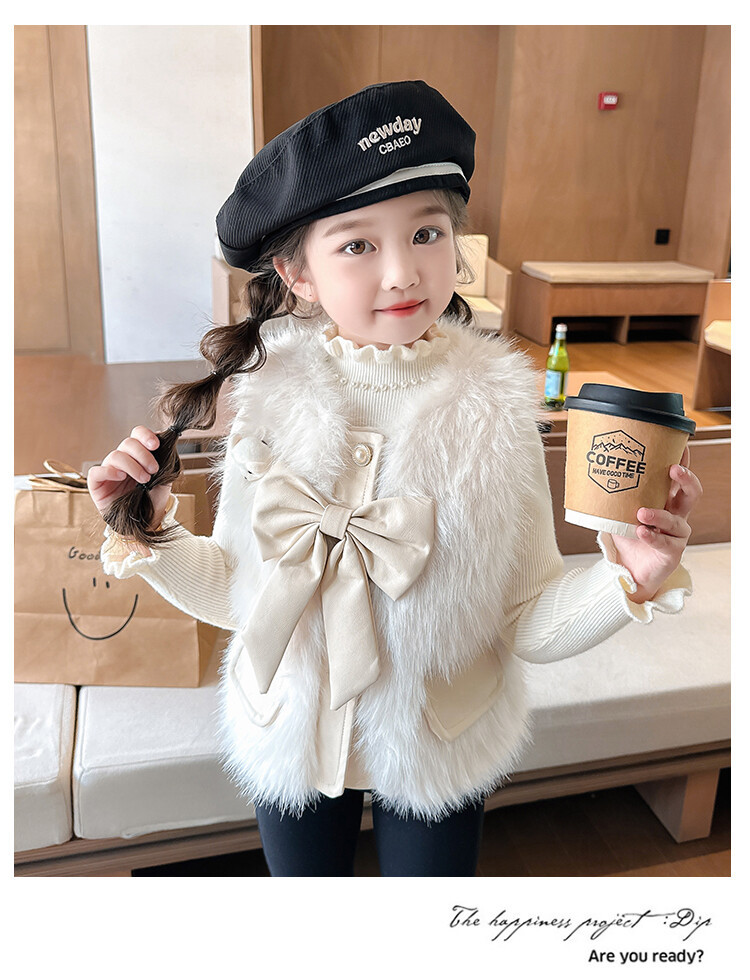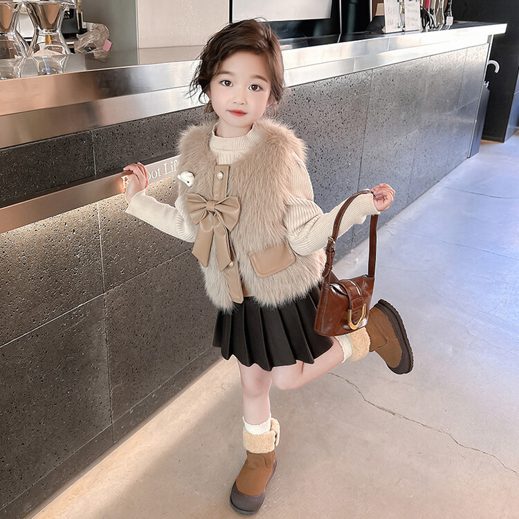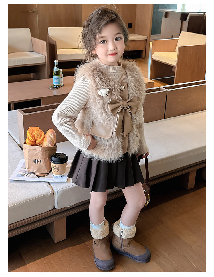 여자 2024 겨울 새로운 어린이 나비 조끼 한국 아동복 헤어 모피 조끼의 세대