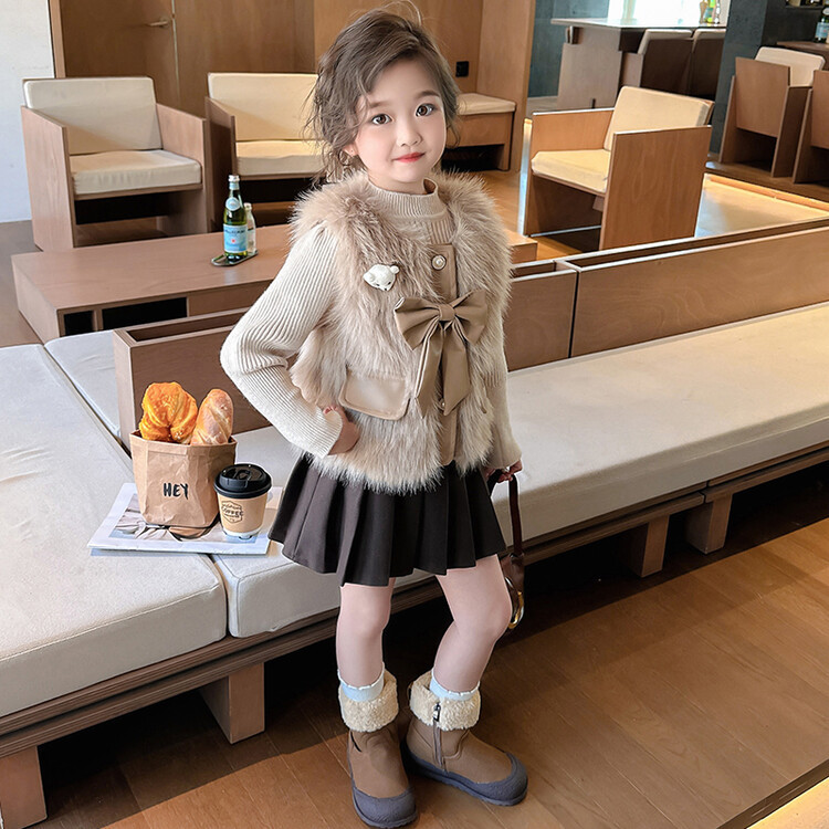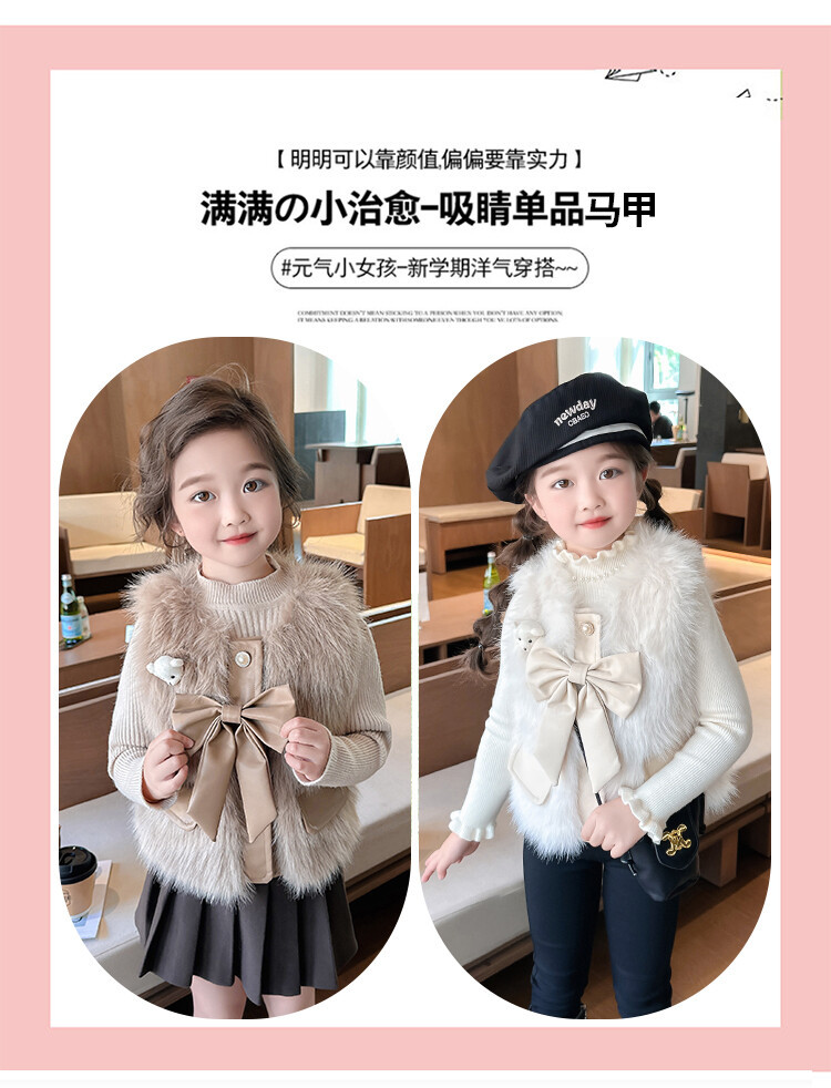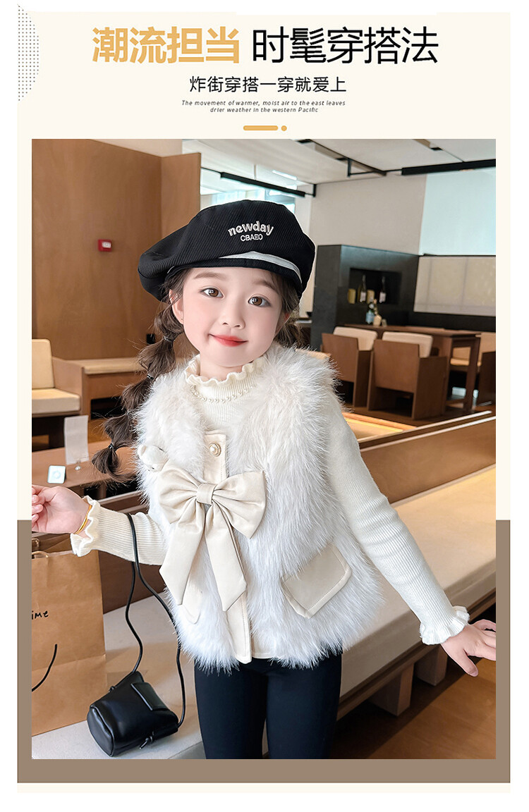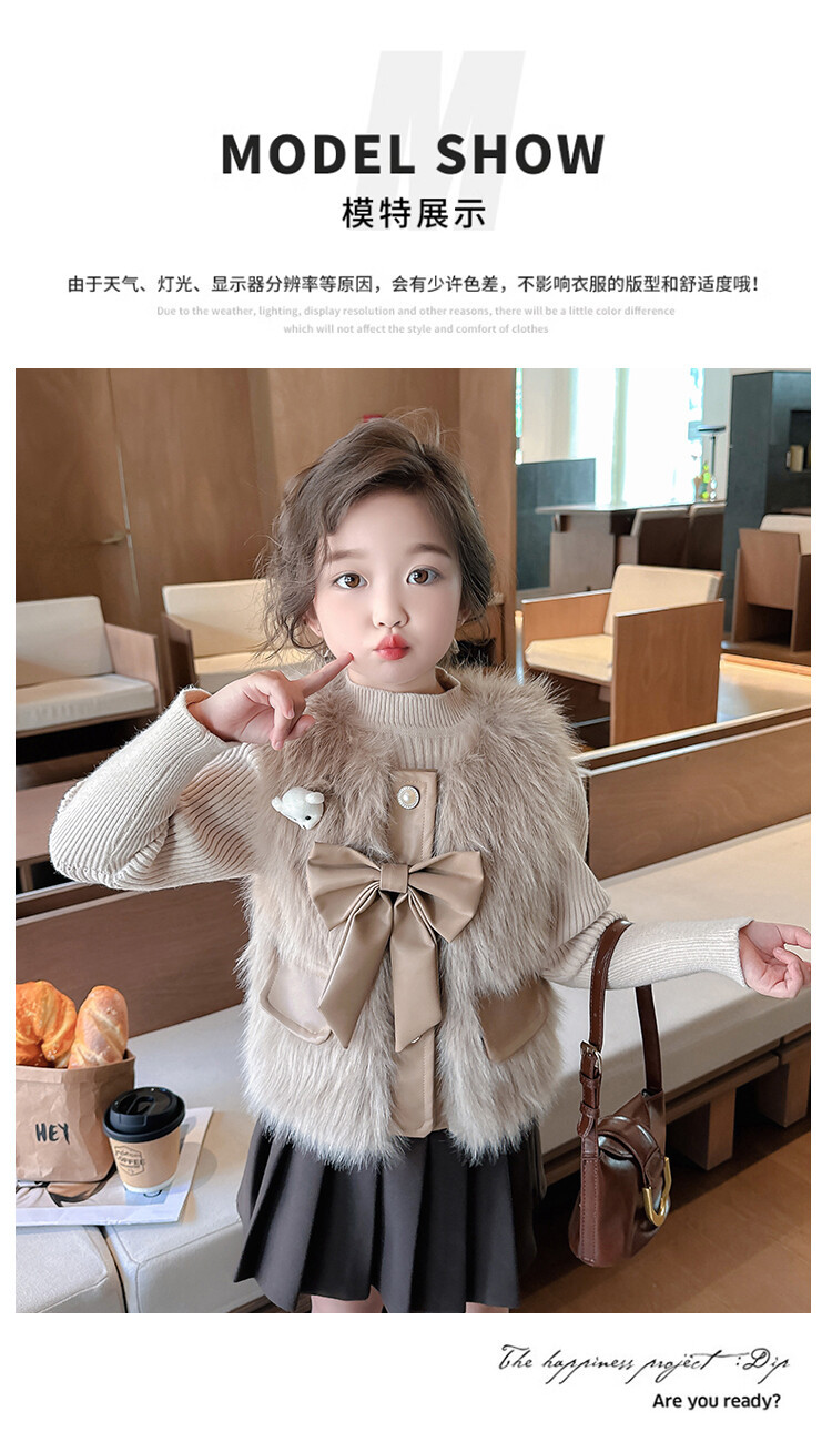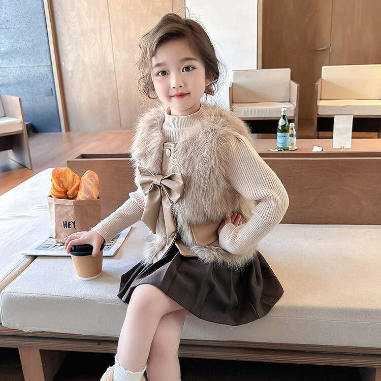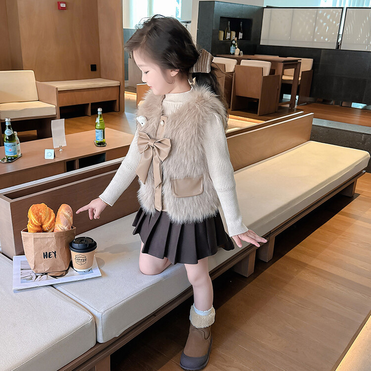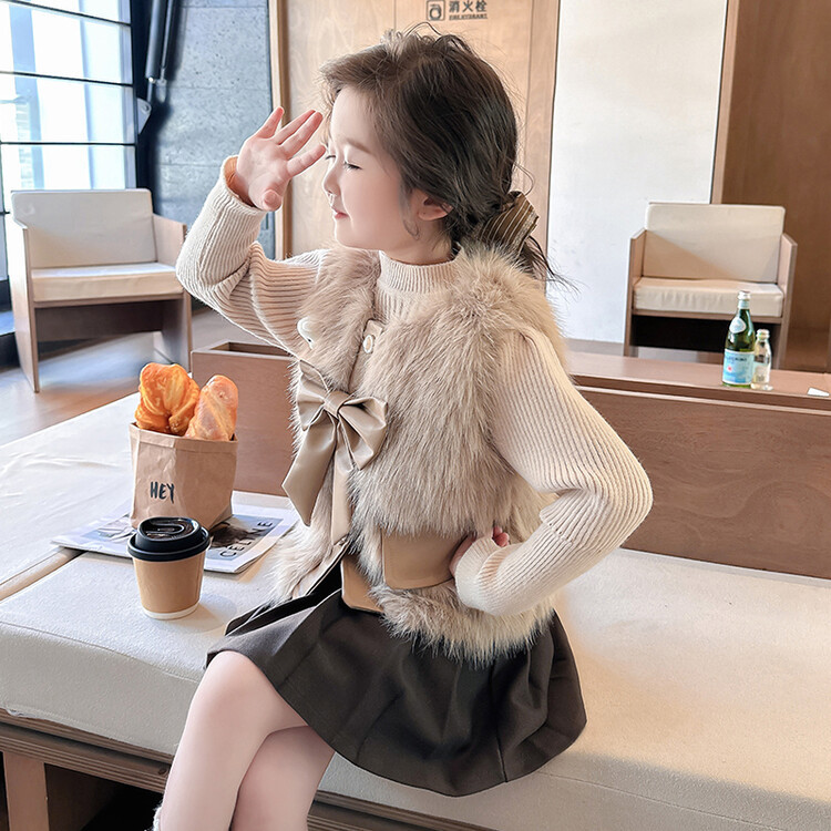 여자 2024 겨울 새로운 어린이 나비 조끼 한국 아동복 헤어 모피 조끼의 세대