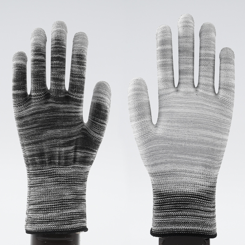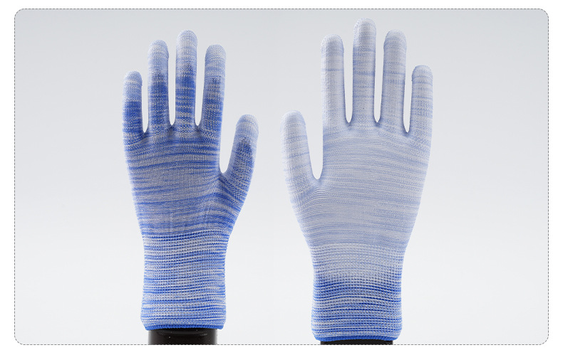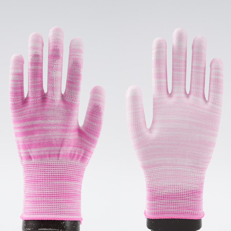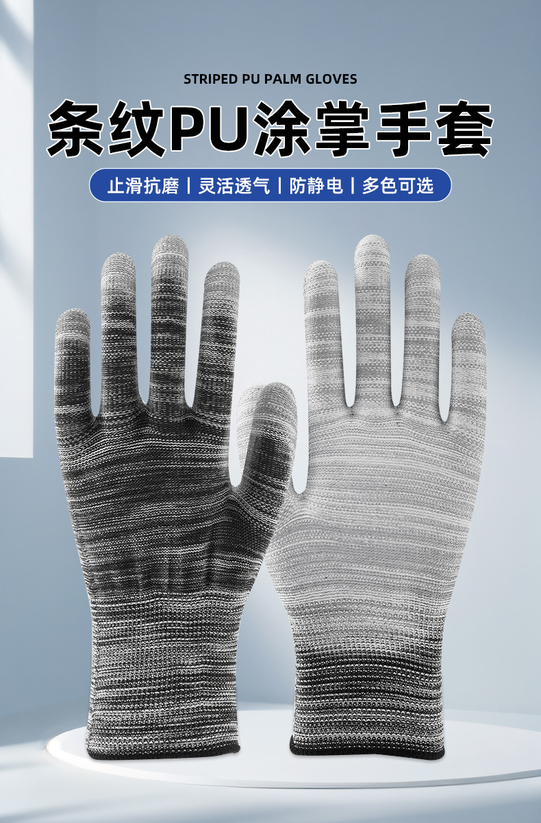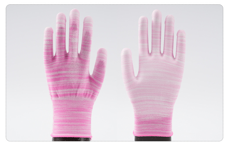 PU 코팅 팜 나일론 노동 보호 장갑 스트라이프 13 핀 접착제 얇은 장갑 먼지가없는 작업장 작동 정전기 방지 장갑