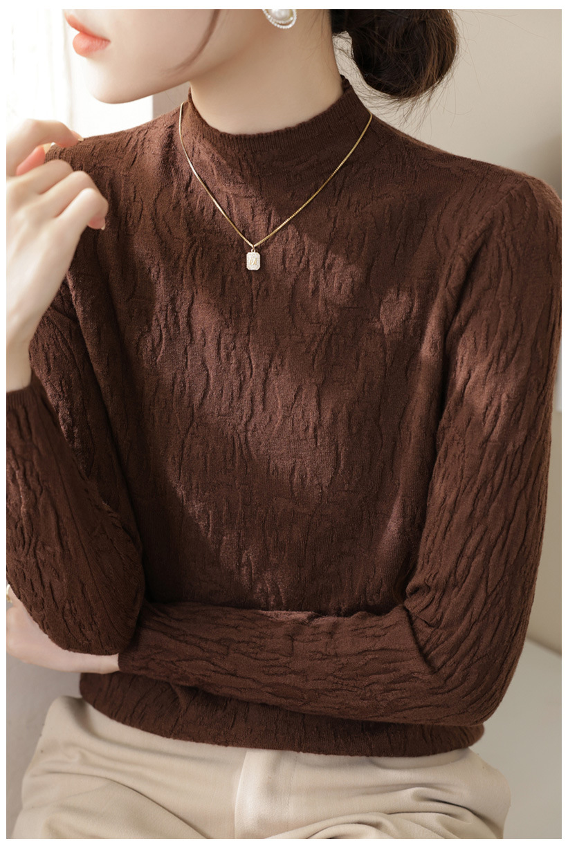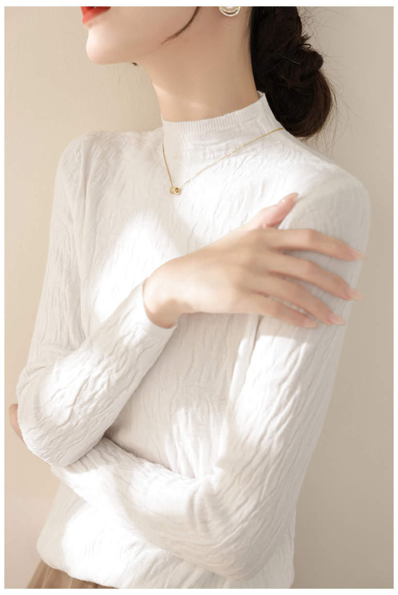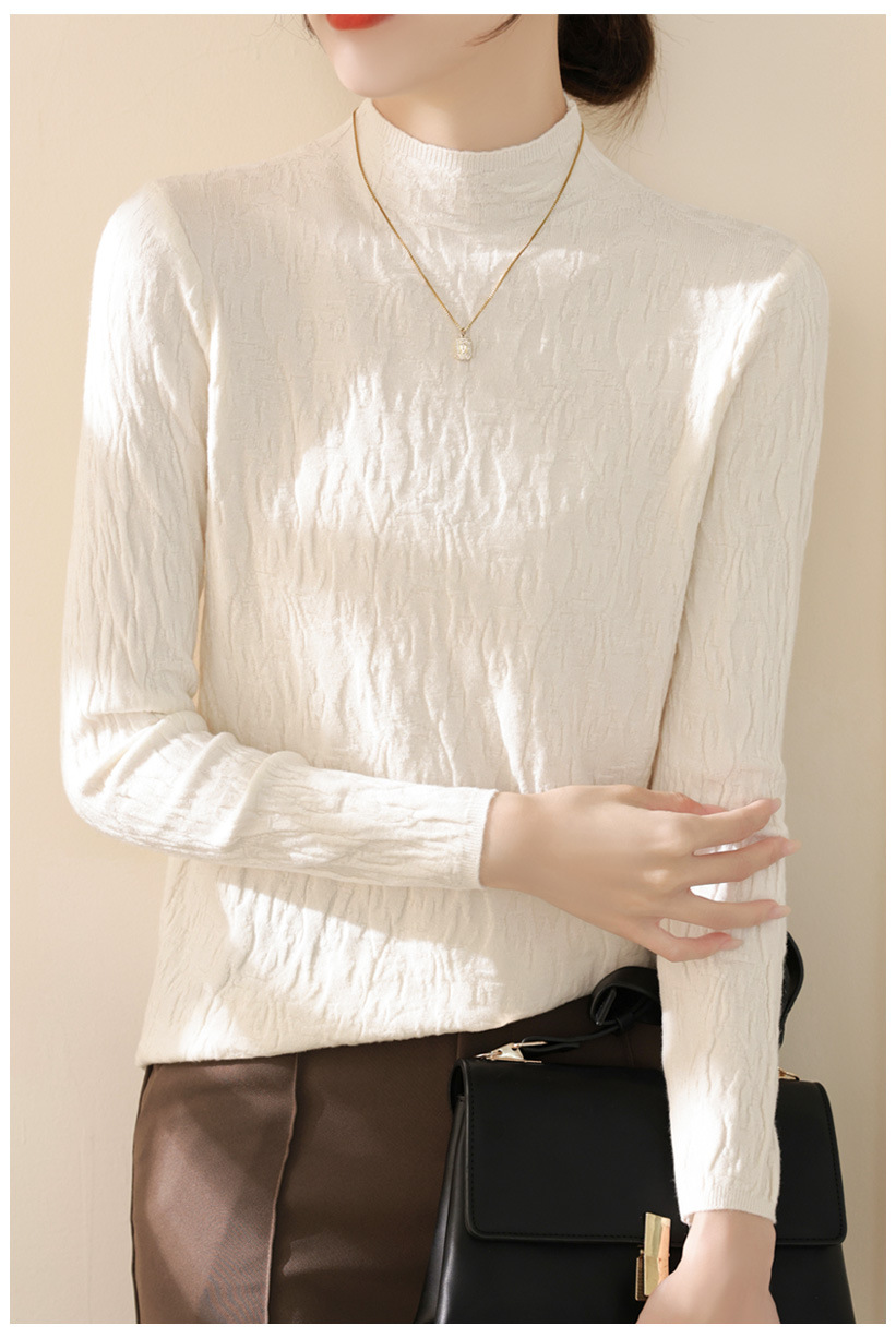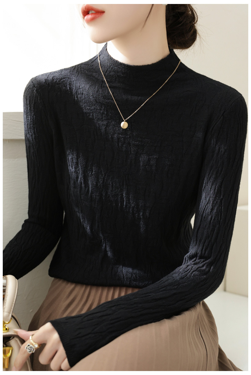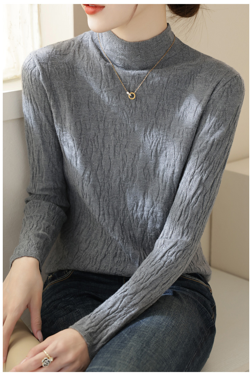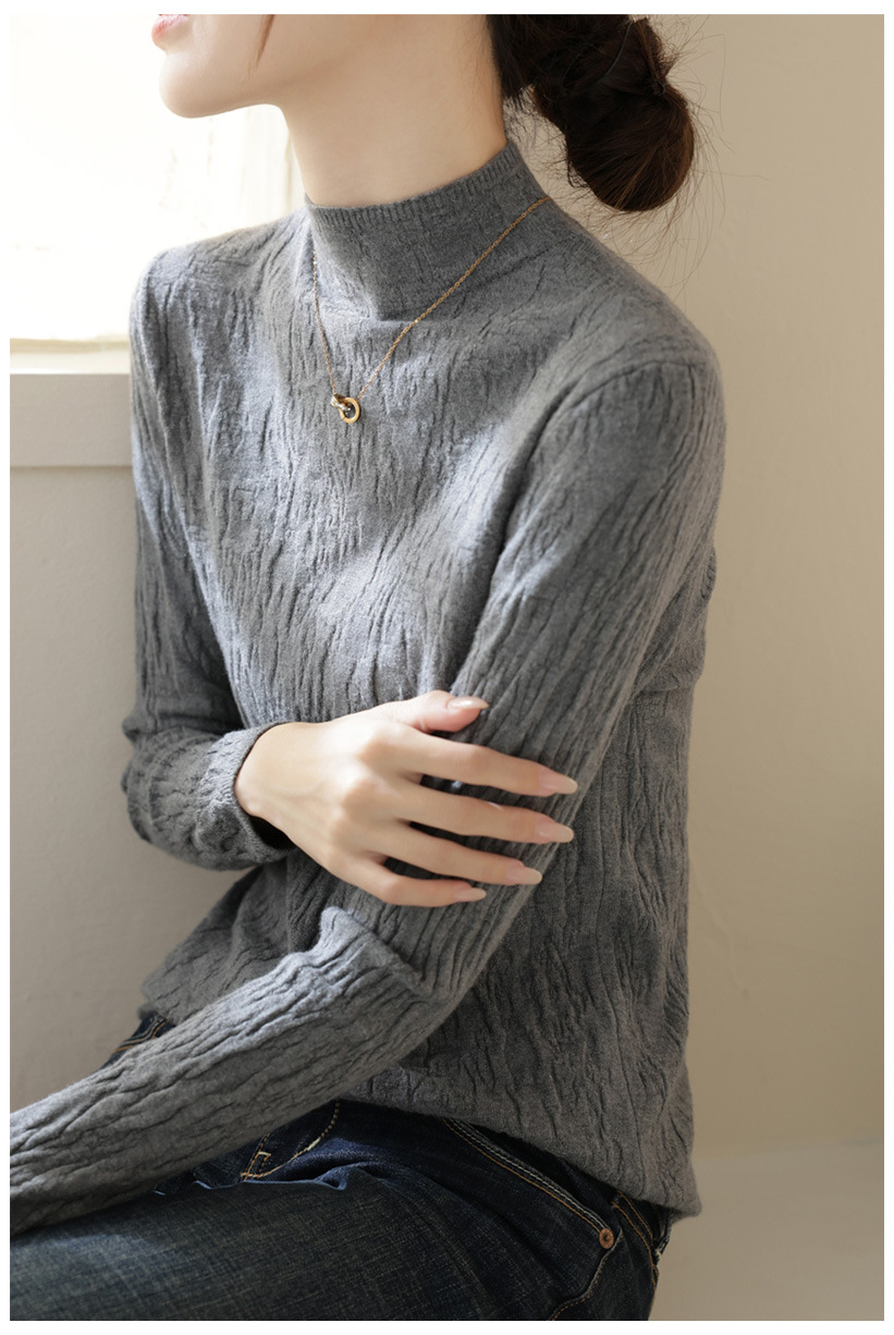 고급 그레이 반 터틀넥 울 텍스처 인테리어 슬림 핏 니트베이스 셔츠 여성용 가을 및 겨울 고급 슈퍼 잘 생긴 스웨터스토어 가기