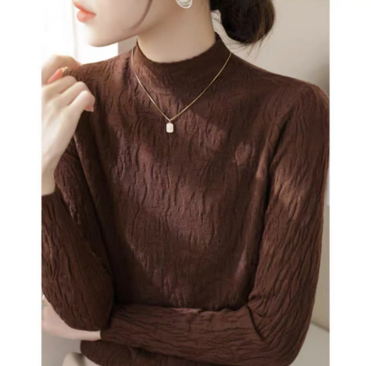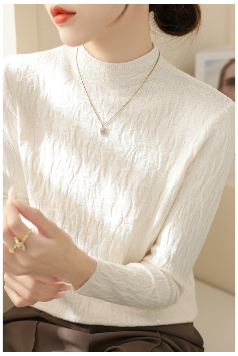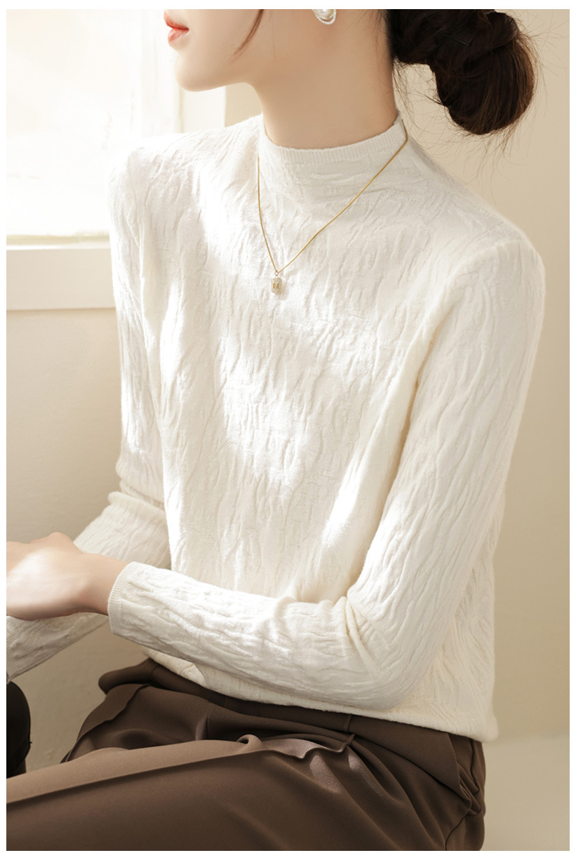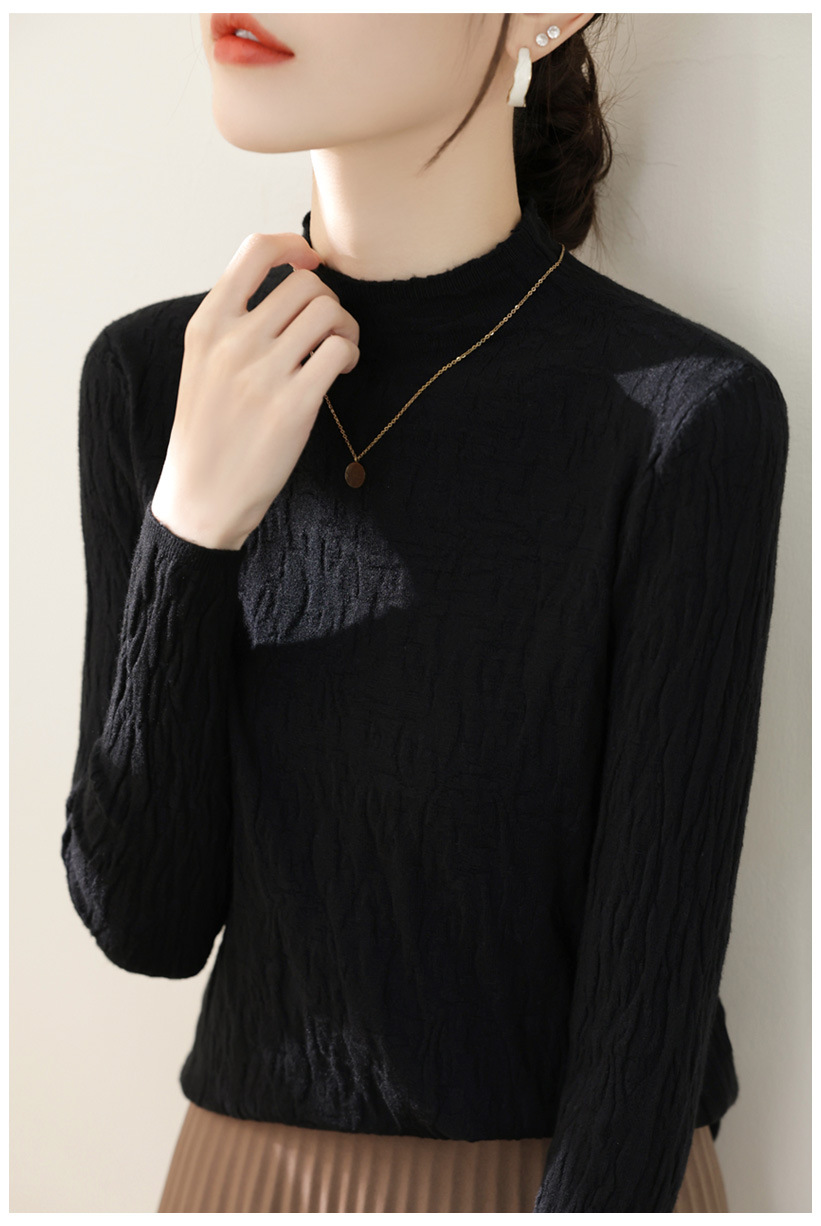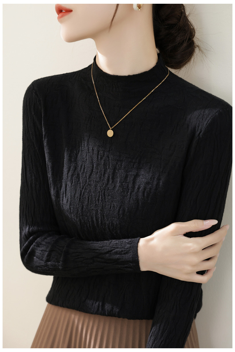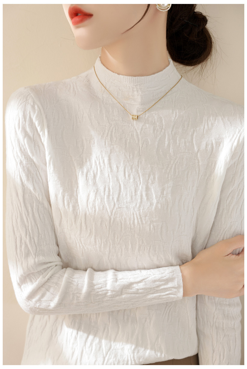 고급 그레이 반 터틀넥 울 텍스처 인테리어 슬림 핏 니트베이스 셔츠 여성용 가을 및 겨울 고급 슈퍼 잘 생긴 스웨터스토어 가기