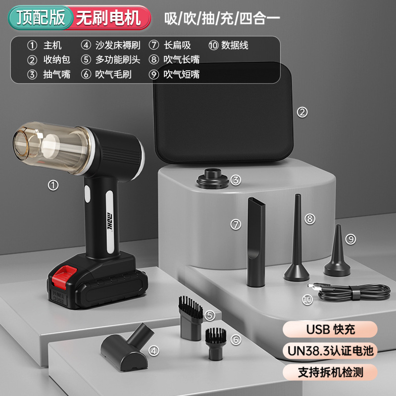 자동차 진공 청소기 슈퍼 대형 흡입 휴대용 무선 흡입 및 부는 통합 가정 및 자동차 이중 목적 브러시리스 고출력 먼지 송풍기스토어 가기