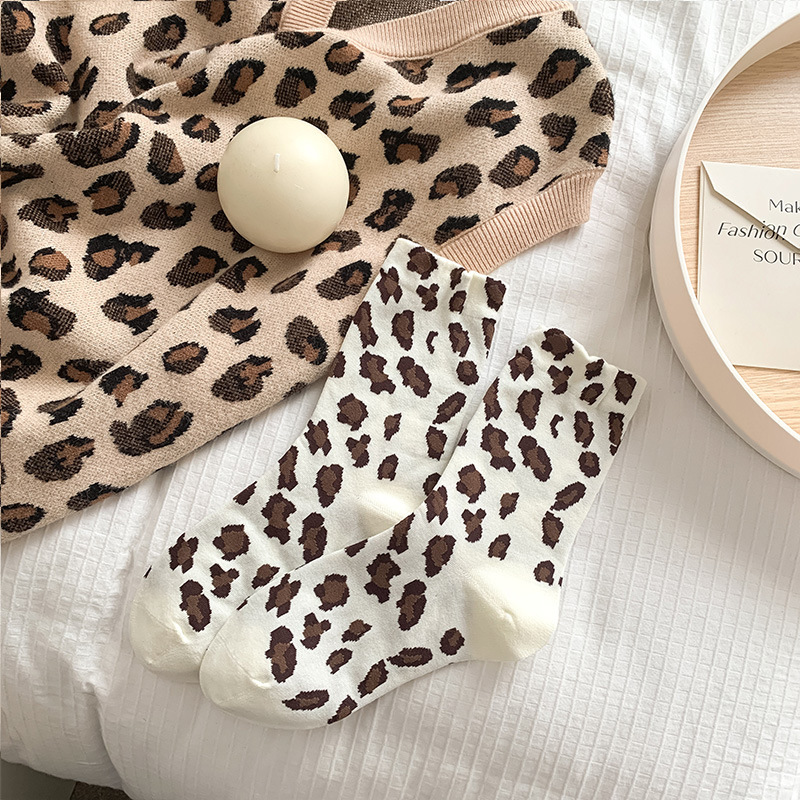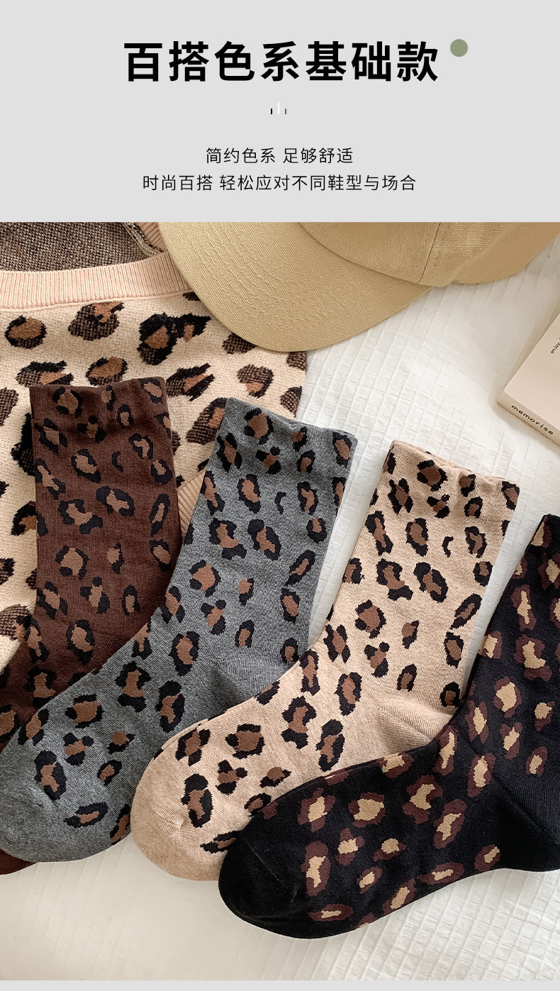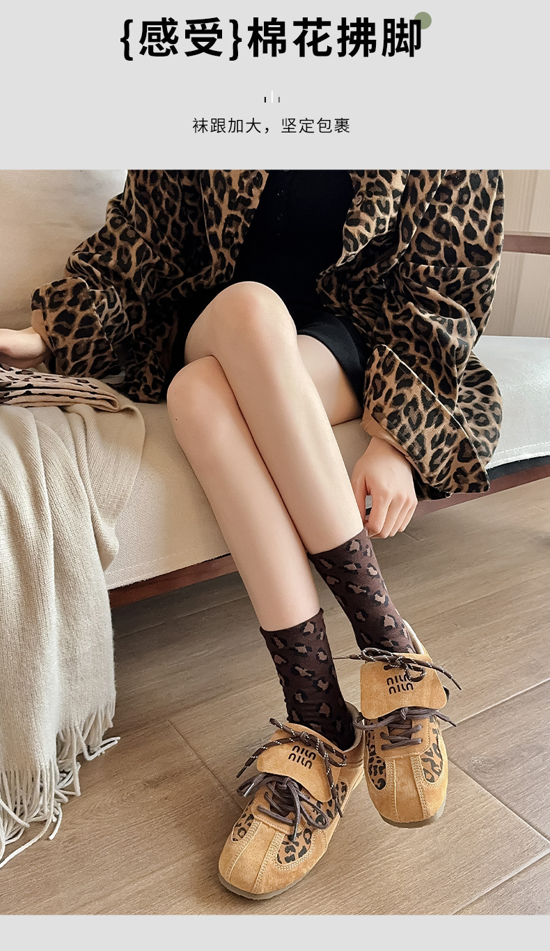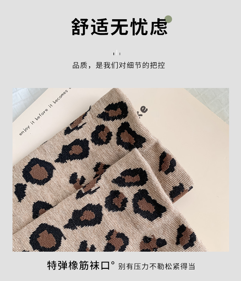 레오파드 무늬 양말 여성의 중간 길이 양말 가을과 겨울 새로운 동물 인쇄 넓은 입 더미 양말 유행 여성을위한 모든 경기 뼈없는 스타킹스토어 가기