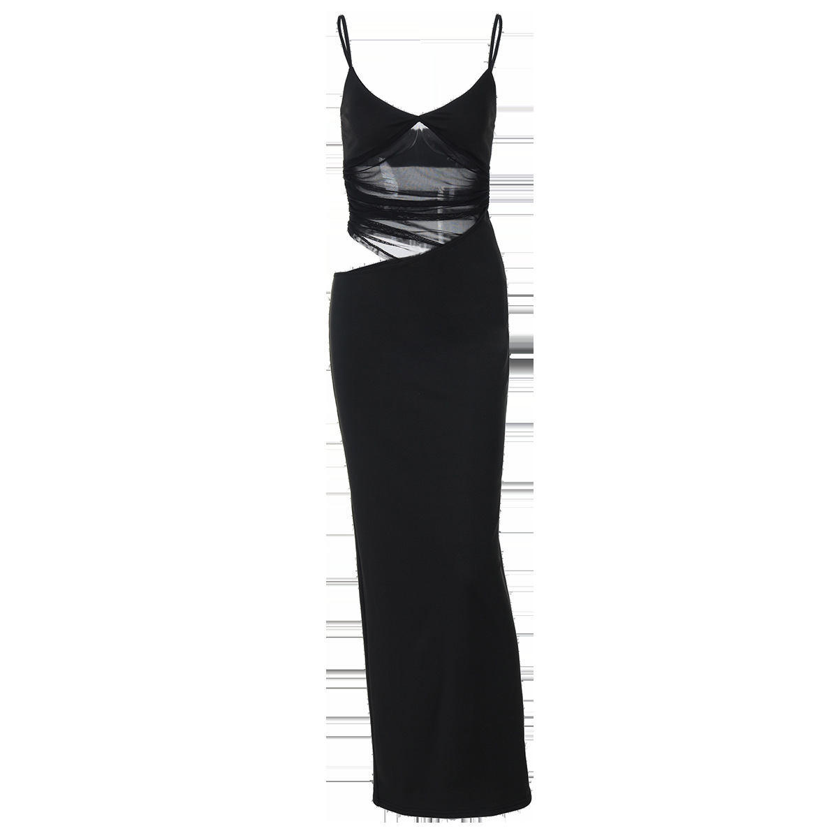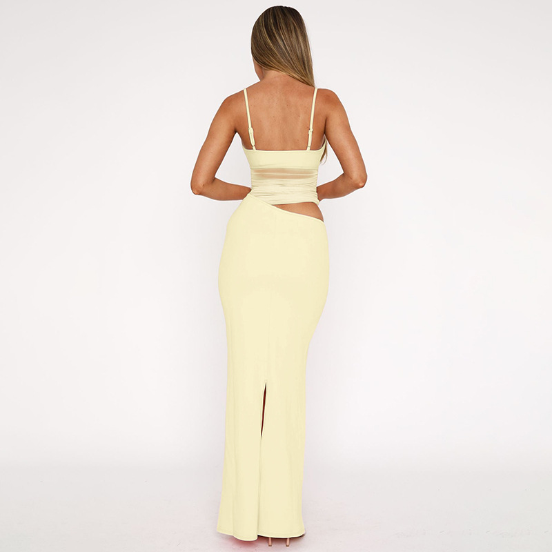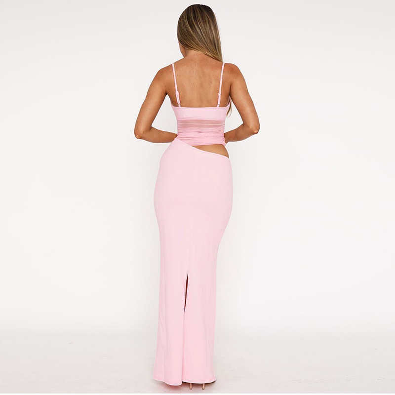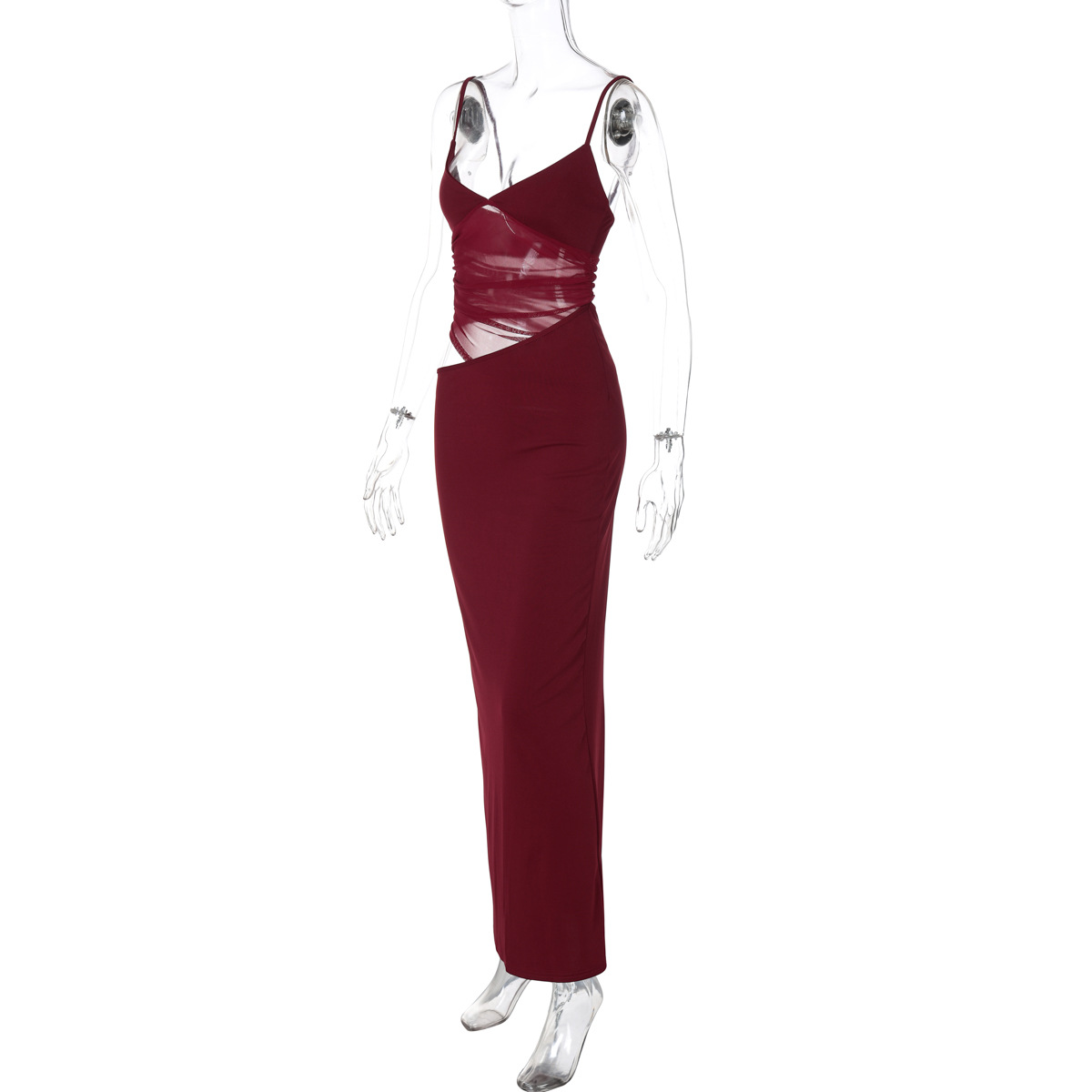 아마존 여성 의류 2025 여름 신상 패션 섹시 스플라이스 슬릿 메쉬 시스루 서스펜더 드레스 도매