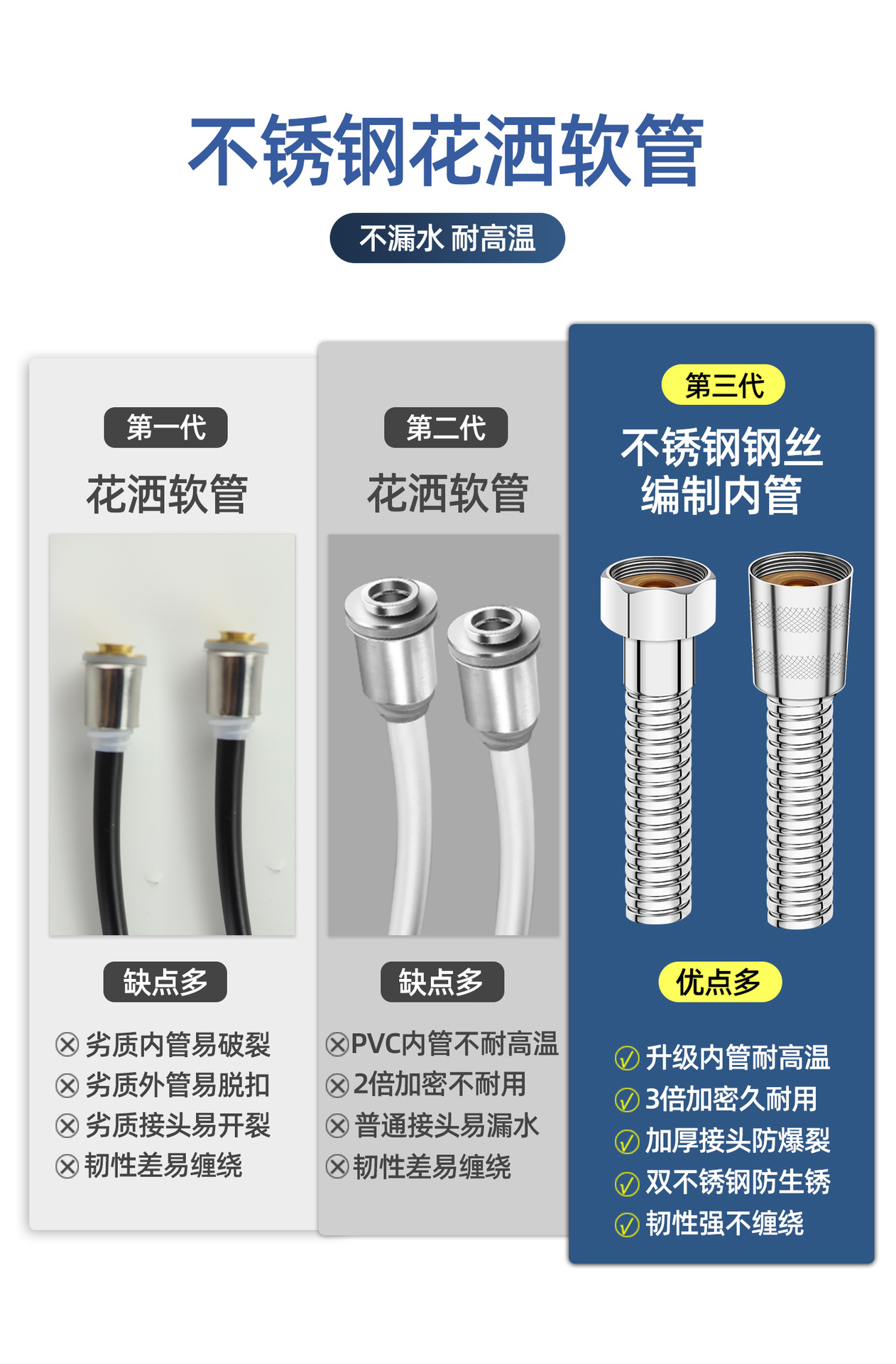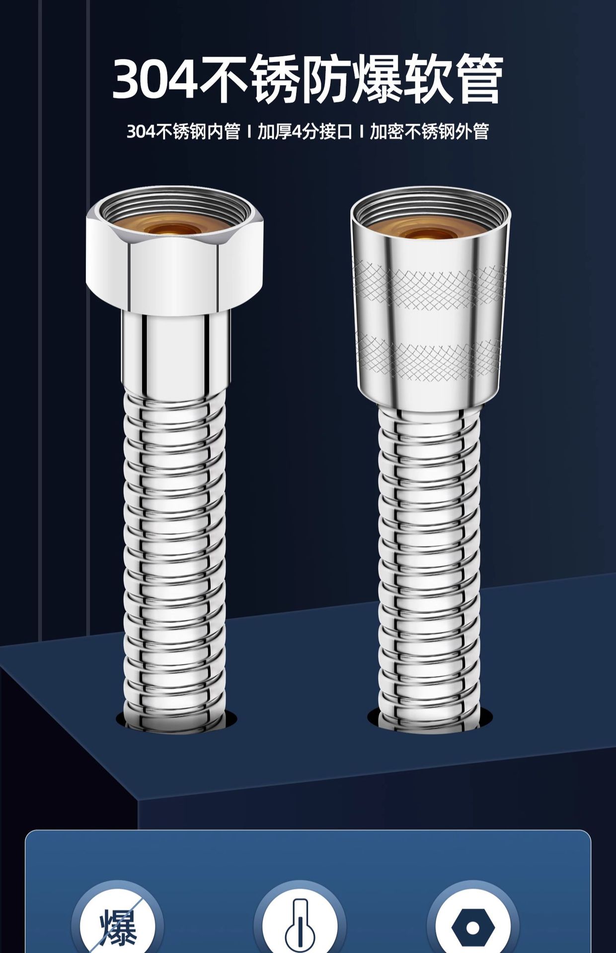 304 스테인레스 스틸 샤워 호스 샤워 노즐 연결 파이프 두꺼운 폭발 방지 범용 온수기 출구 파이프 피팅