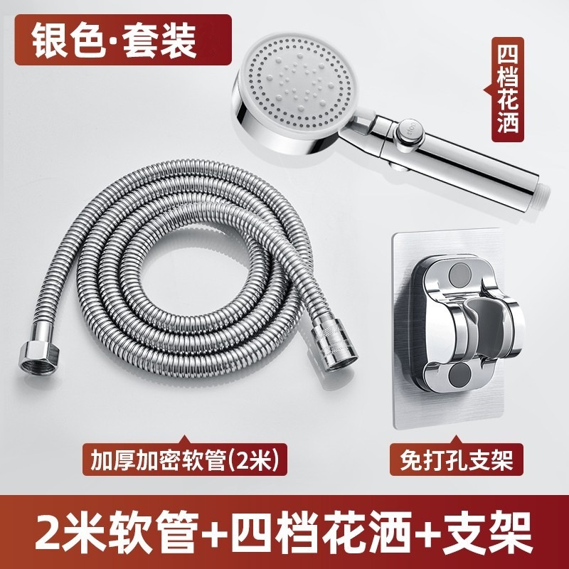 • [전기도금 실버 3종세트] 2m 샤워튜브 + 4단 슈퍼차저 샤워노즐 + 브라켓