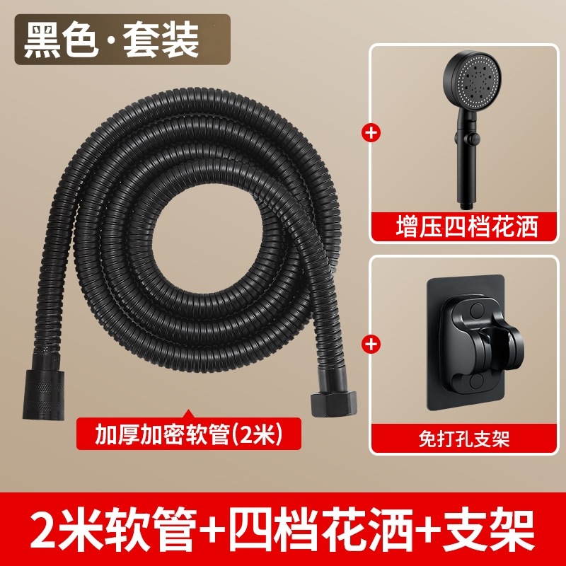 • [블랙 3종세트] 2m 샤워튜브 + 4단 슈퍼차저 샤워노즐 + 브라켓