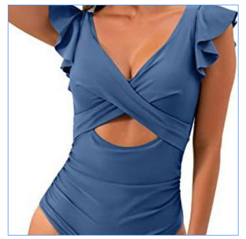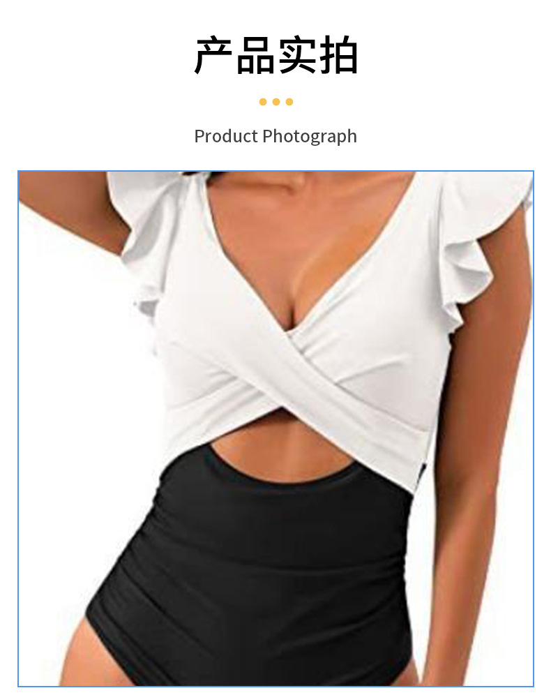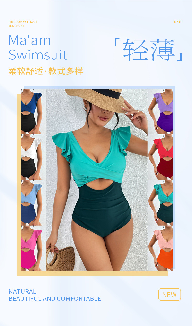 2025 아마존 컬러블록 유럽풍 원피스 수영복 주름 장식 슬림핏 복부 보정 크로스 디자인 외국 수출용 비키니스토어 가기
