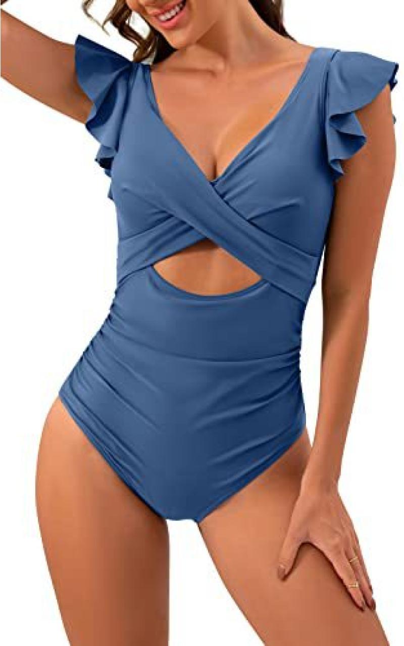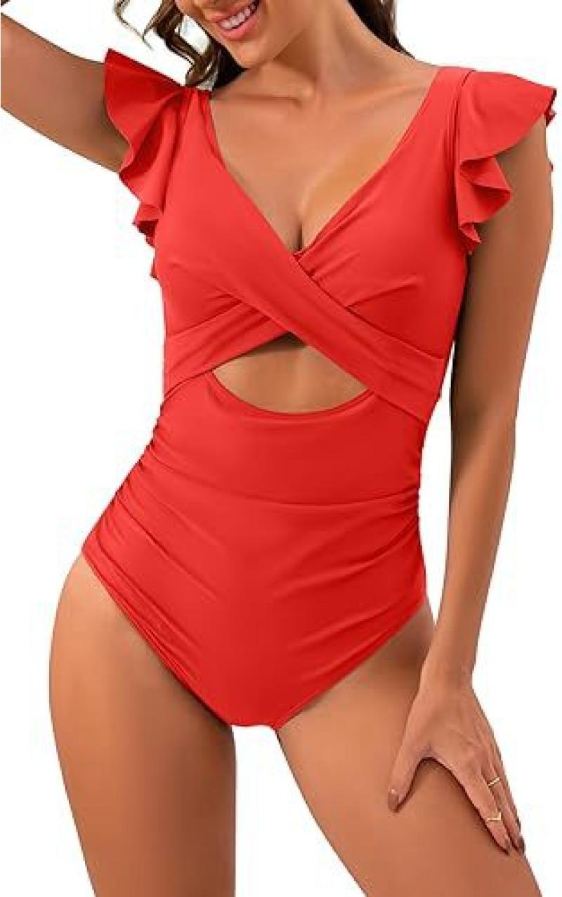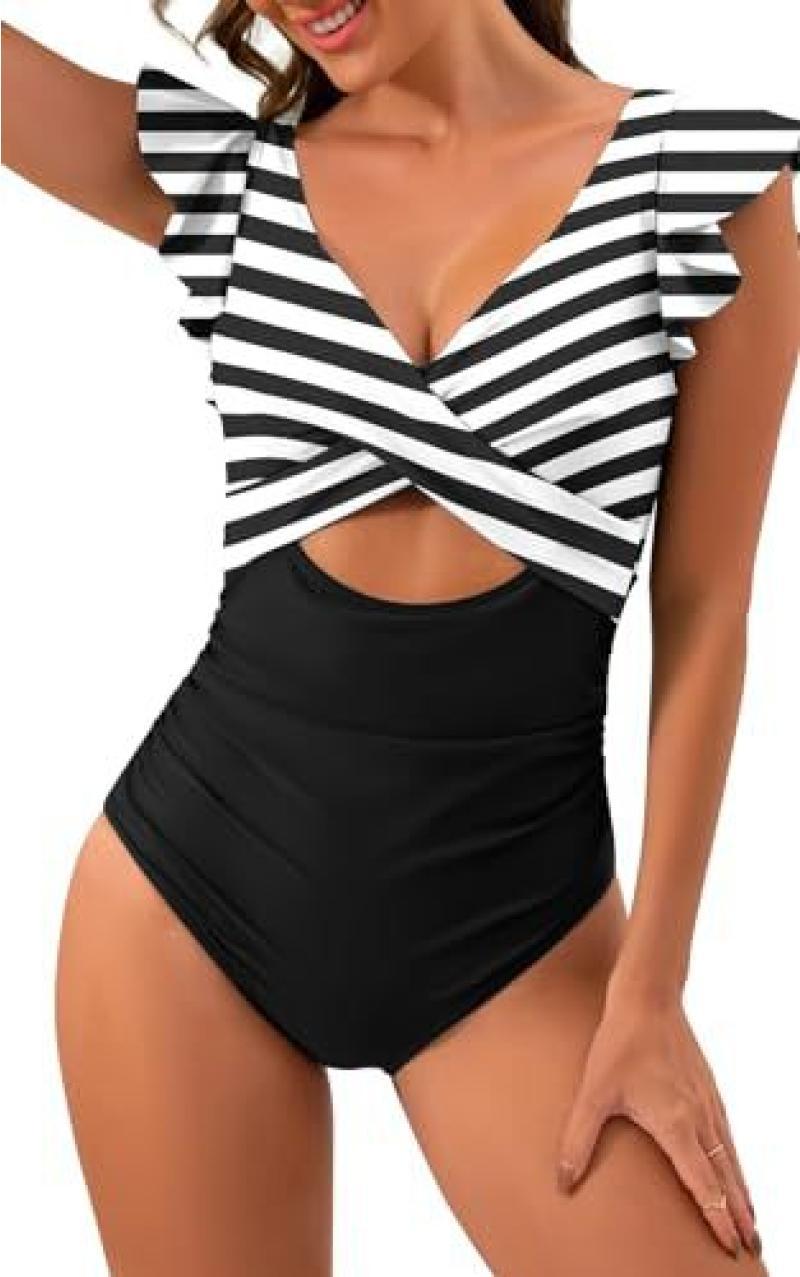 2025년 아마존 신상 유럽풍 원피스 수영복 주름 장식 허리 조임 크로스 디자인 수출용 비키니스토어 가기