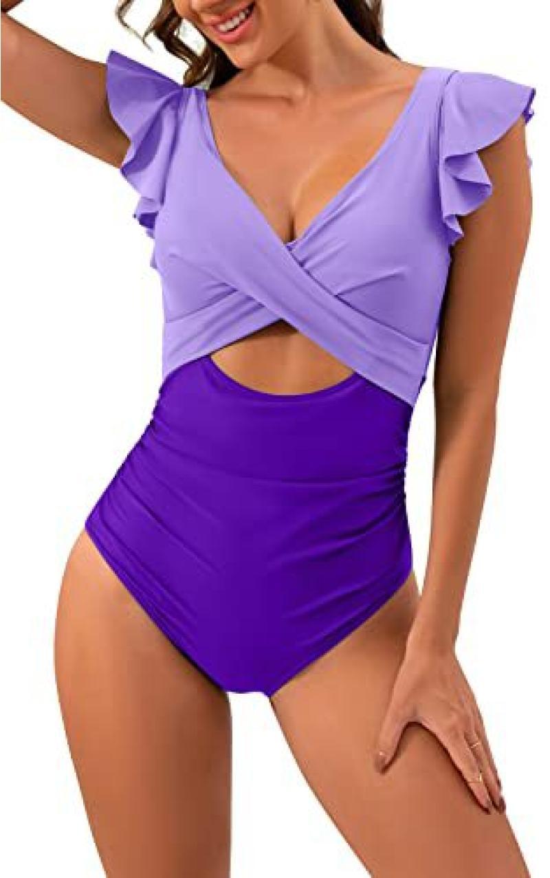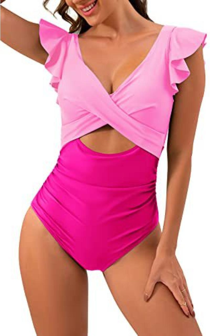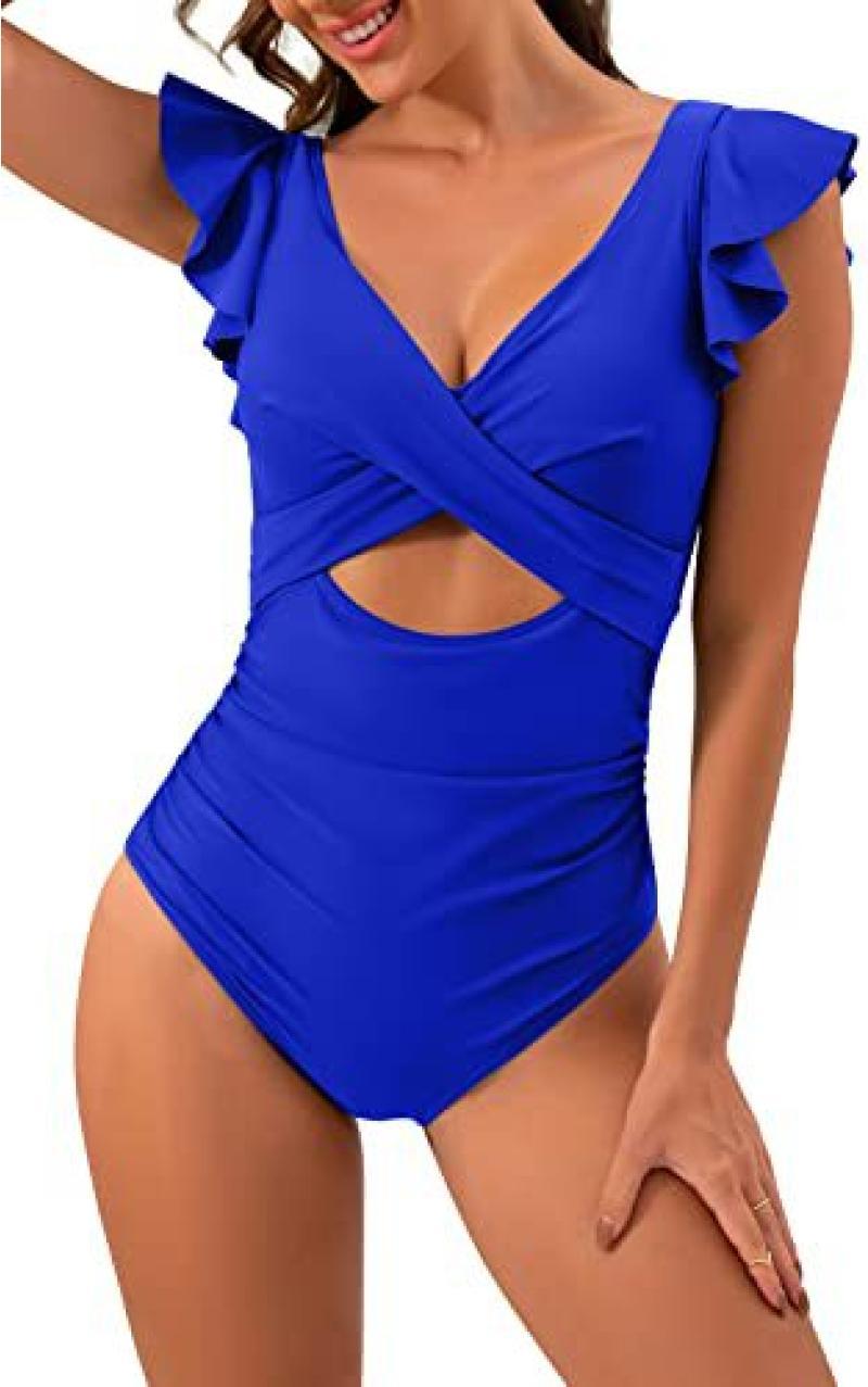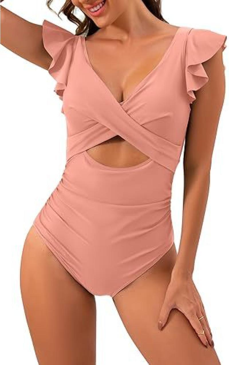2025년 아마존 신상 유럽풍 원피스 수영복 주름 장식 허리 조임 크로스 디자인 수출용 비키니스토어 가기