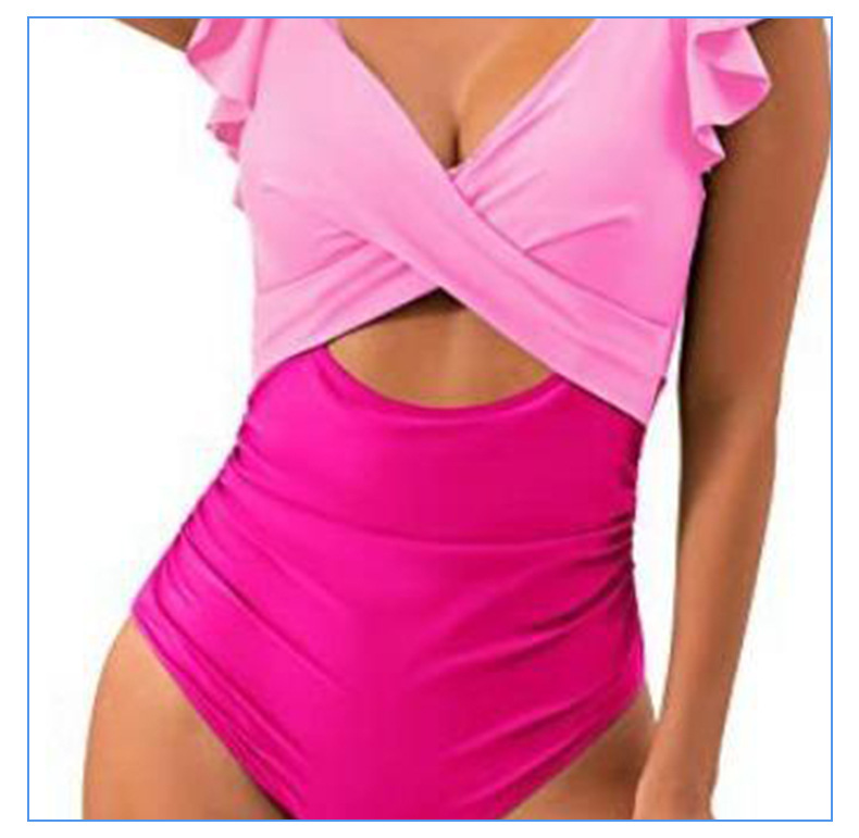 2025 아마존 컬러블록 유럽풍 원피스 수영복 주름 장식 슬림핏 복부 보정 크로스 디자인 외국 수출용 비키니