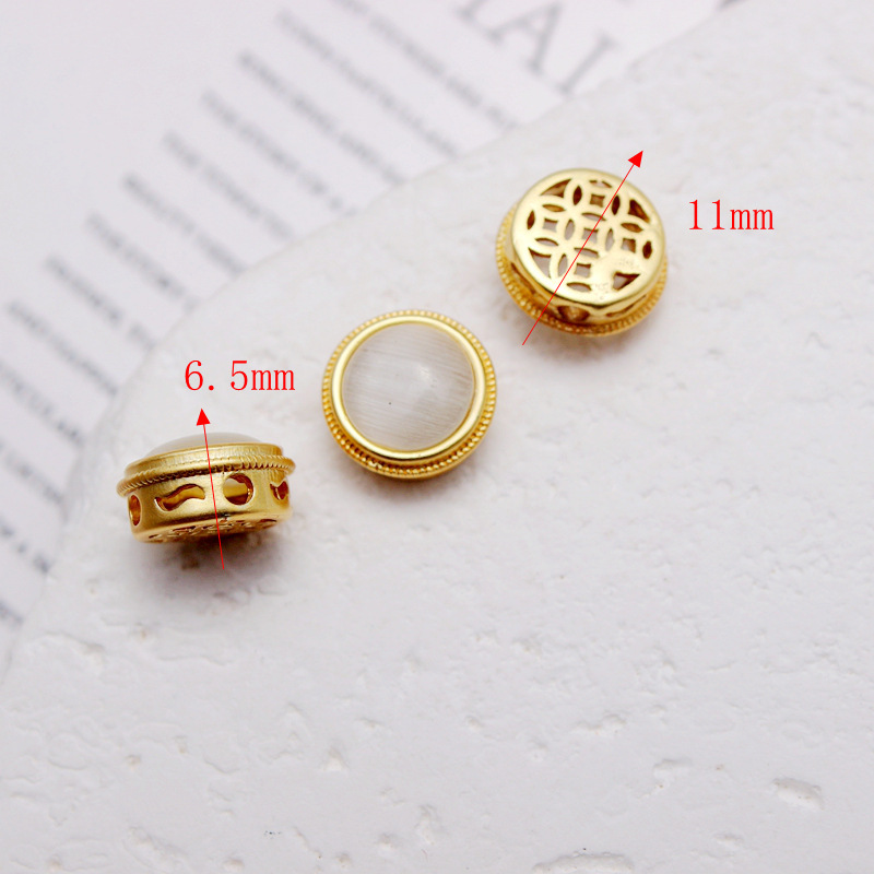 14K包金保色镶锆/猫眼石哑金镂空隔珠DIY手链项链手工饰品滴油