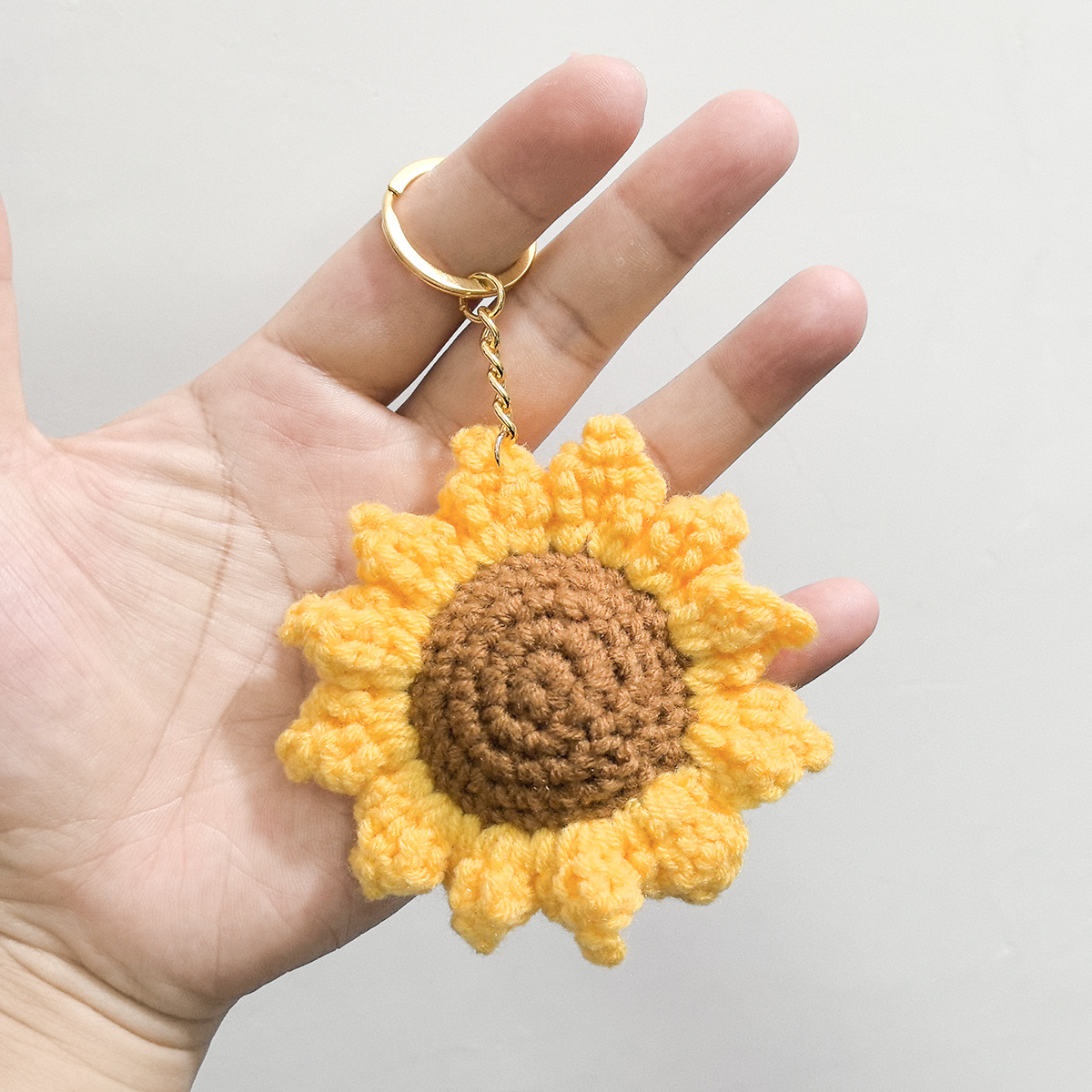크리 에이 티브 해바라기 키 체인 손으로 짠 해바라기 키 체인 니트 울 키 체인 펜던트 선물