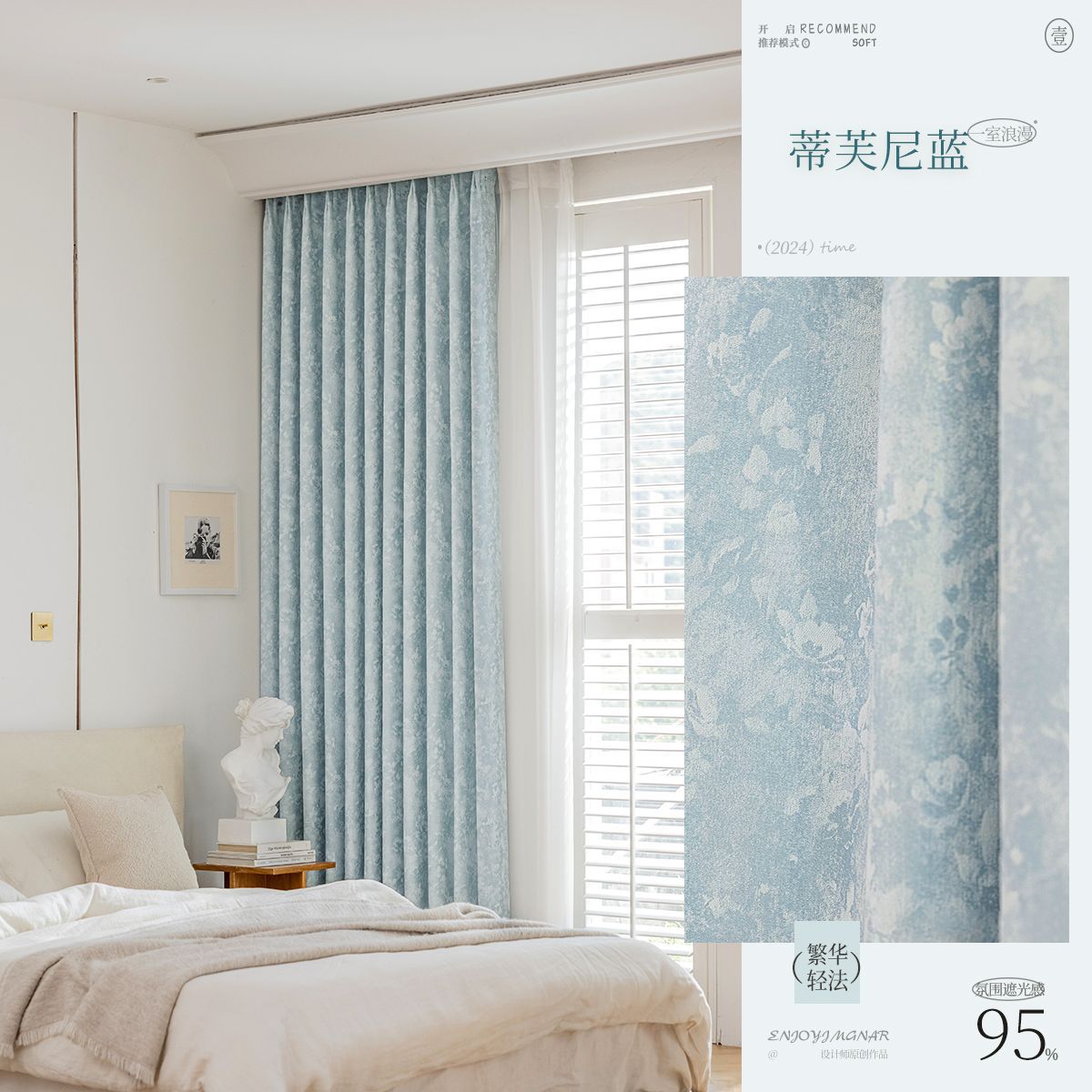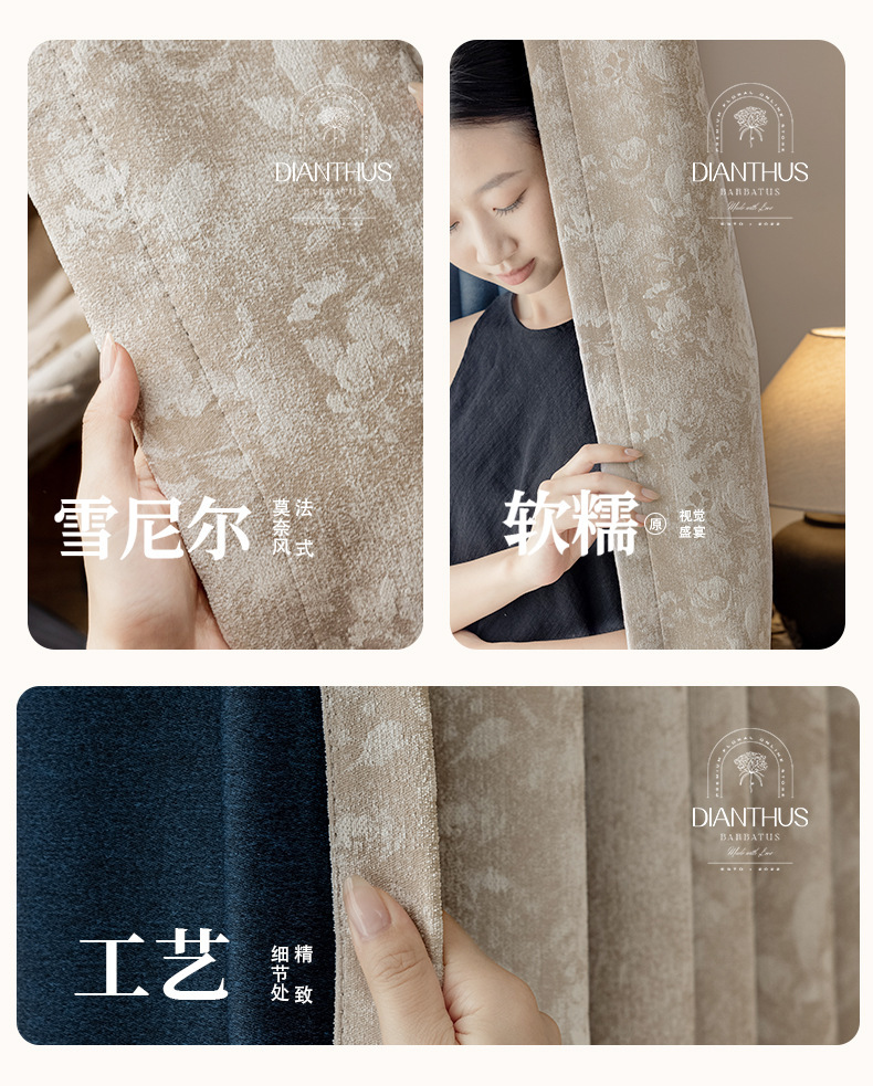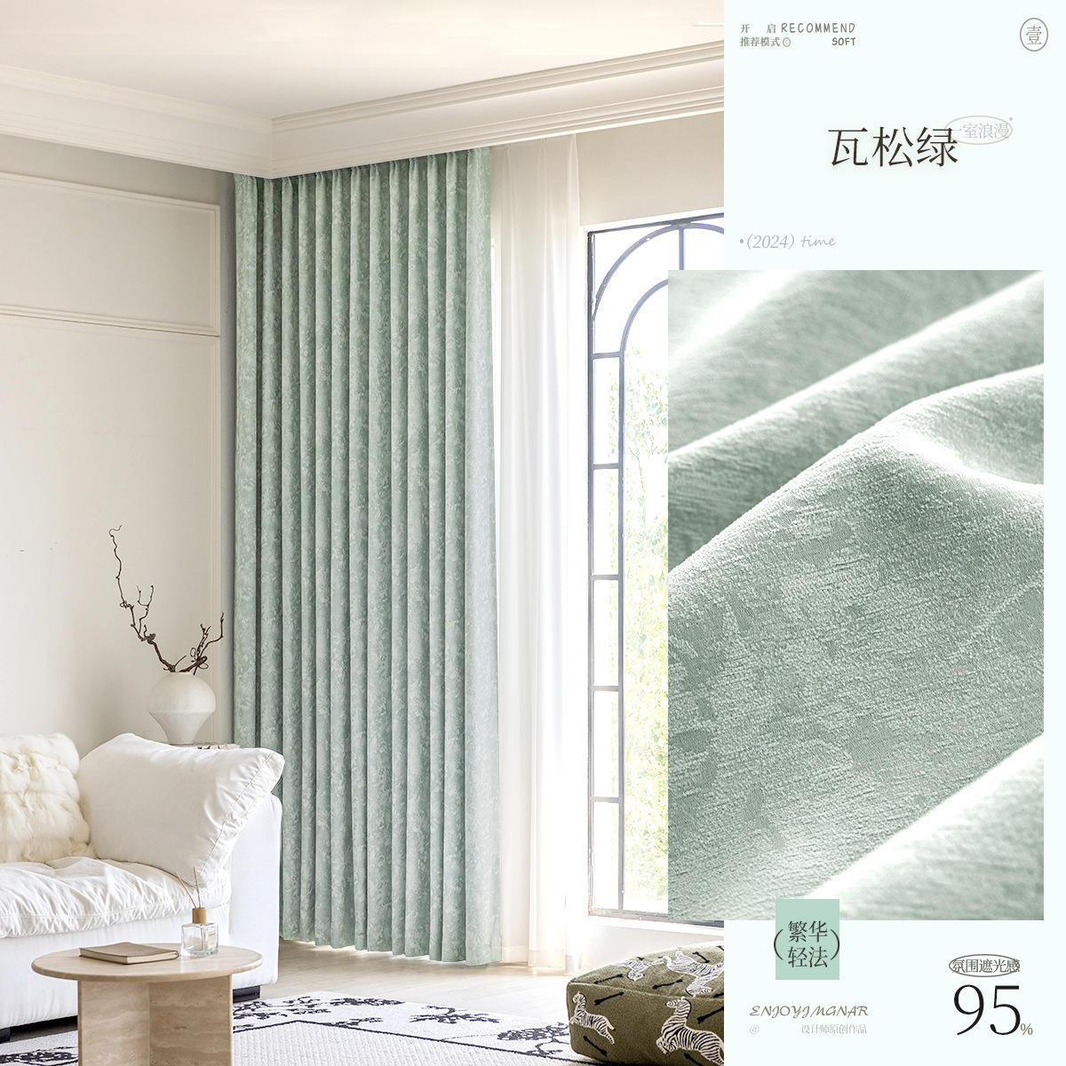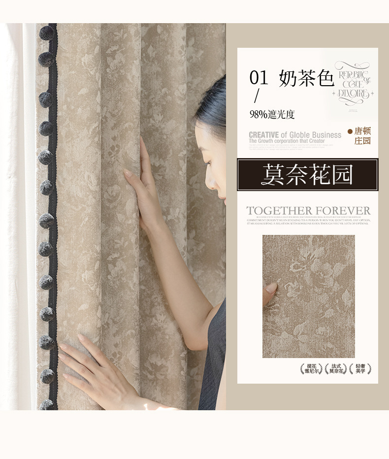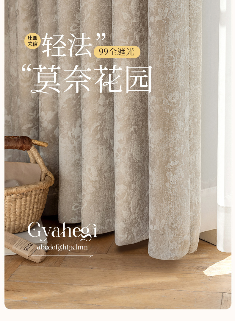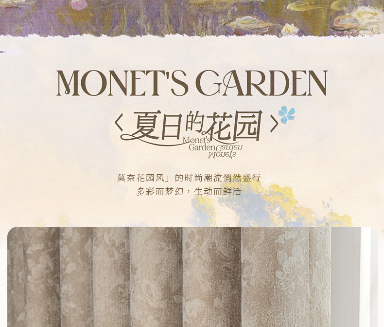 모네의 새로운 고급 자카드 셔닐 차광 거실 침실 커튼 프랑스 복고풍 고온 스타일링 커튼 도매스토어 가기