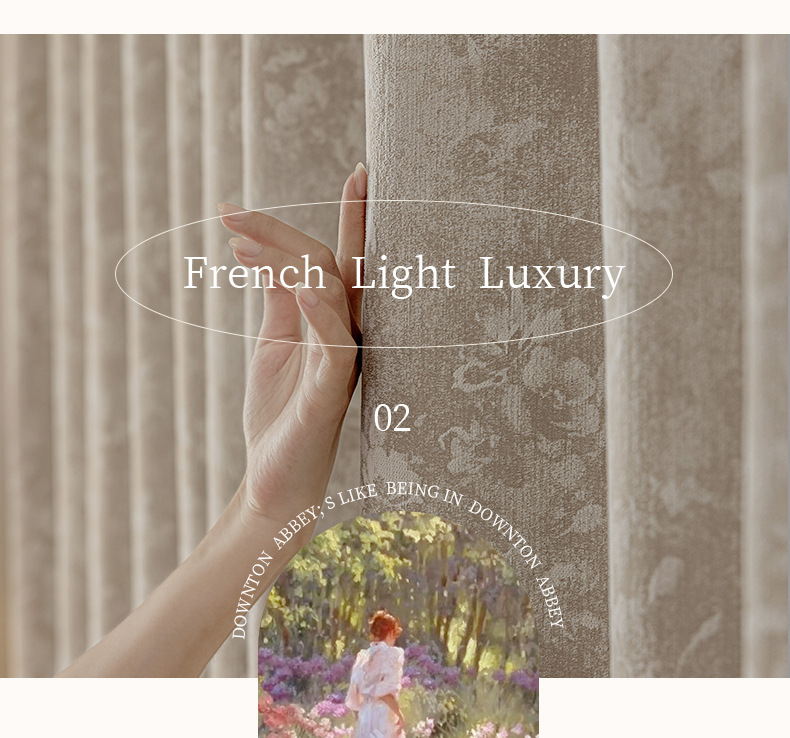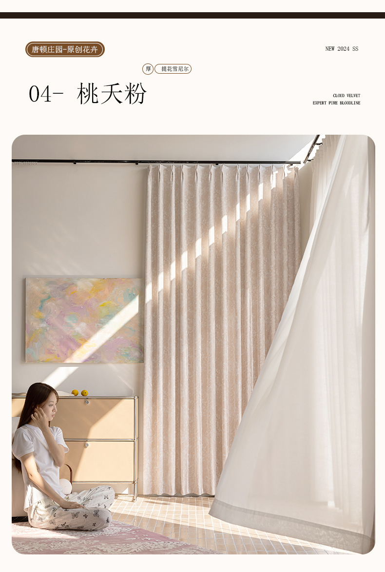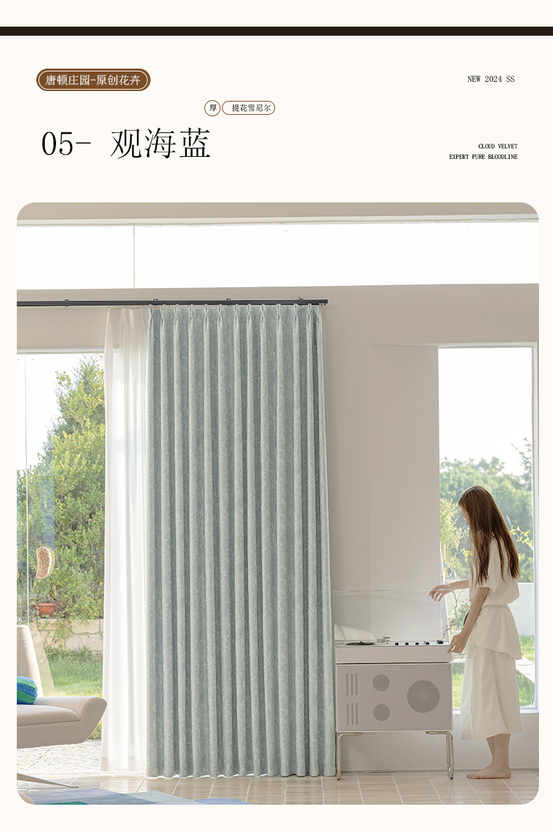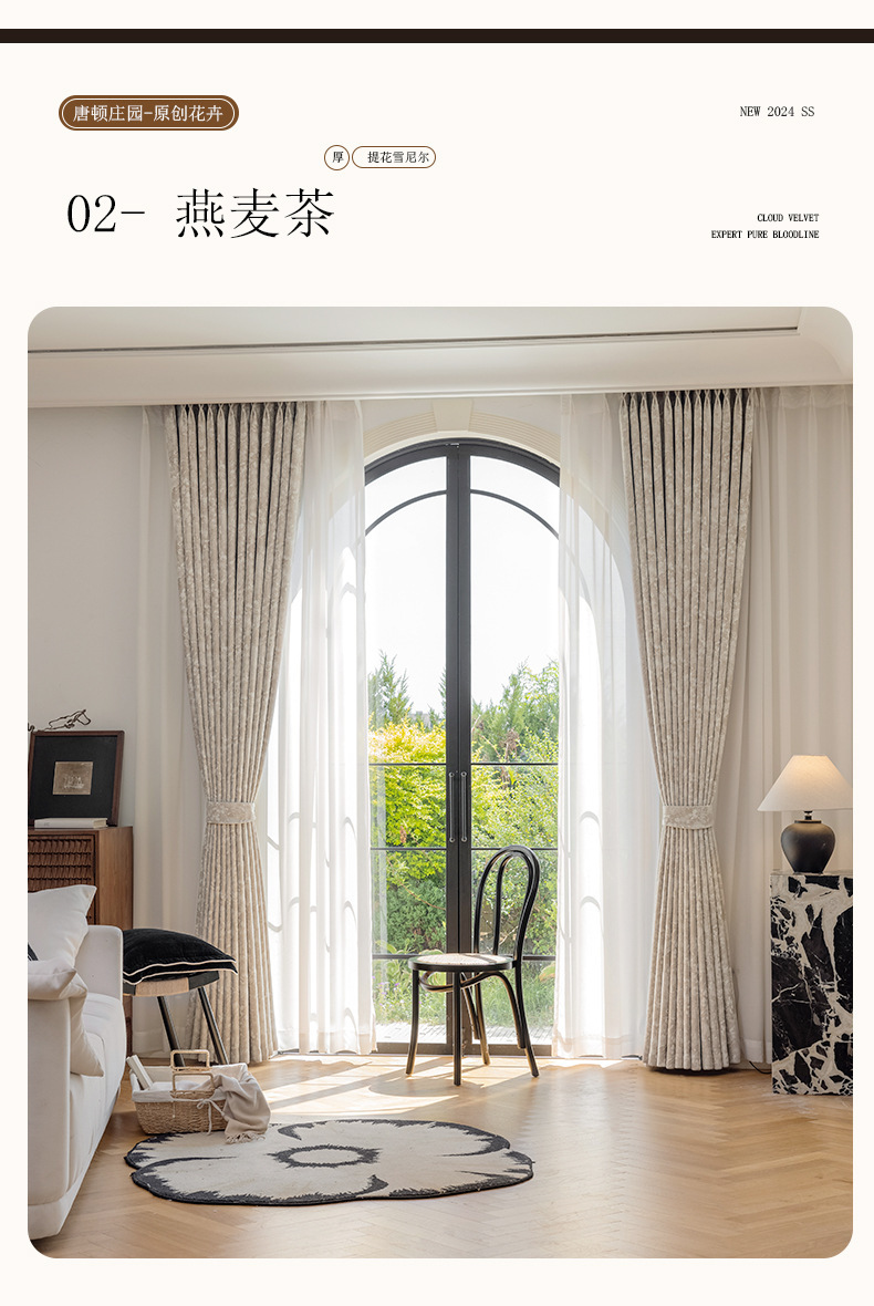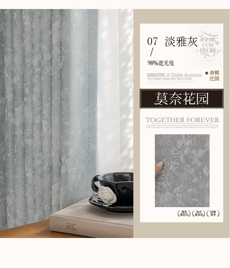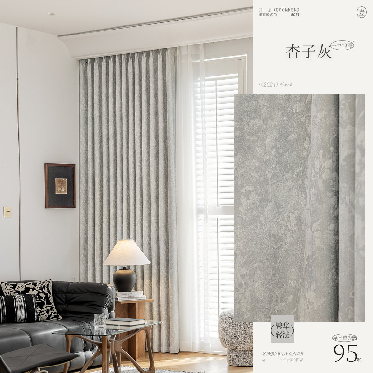 모네의 새로운 고급 자카드 셔닐 차광 거실 침실 커튼 프랑스 복고풍 고온 스타일링 커튼 도매스토어 가기