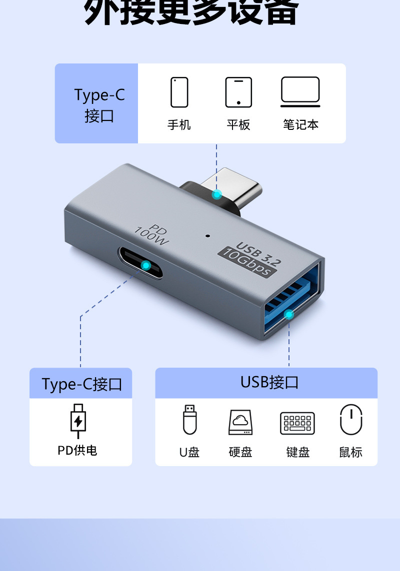 Type-C-USB 변환기는 PD1000W 빠른 충전 OTG 전송 3 대 1 어댑터 지원