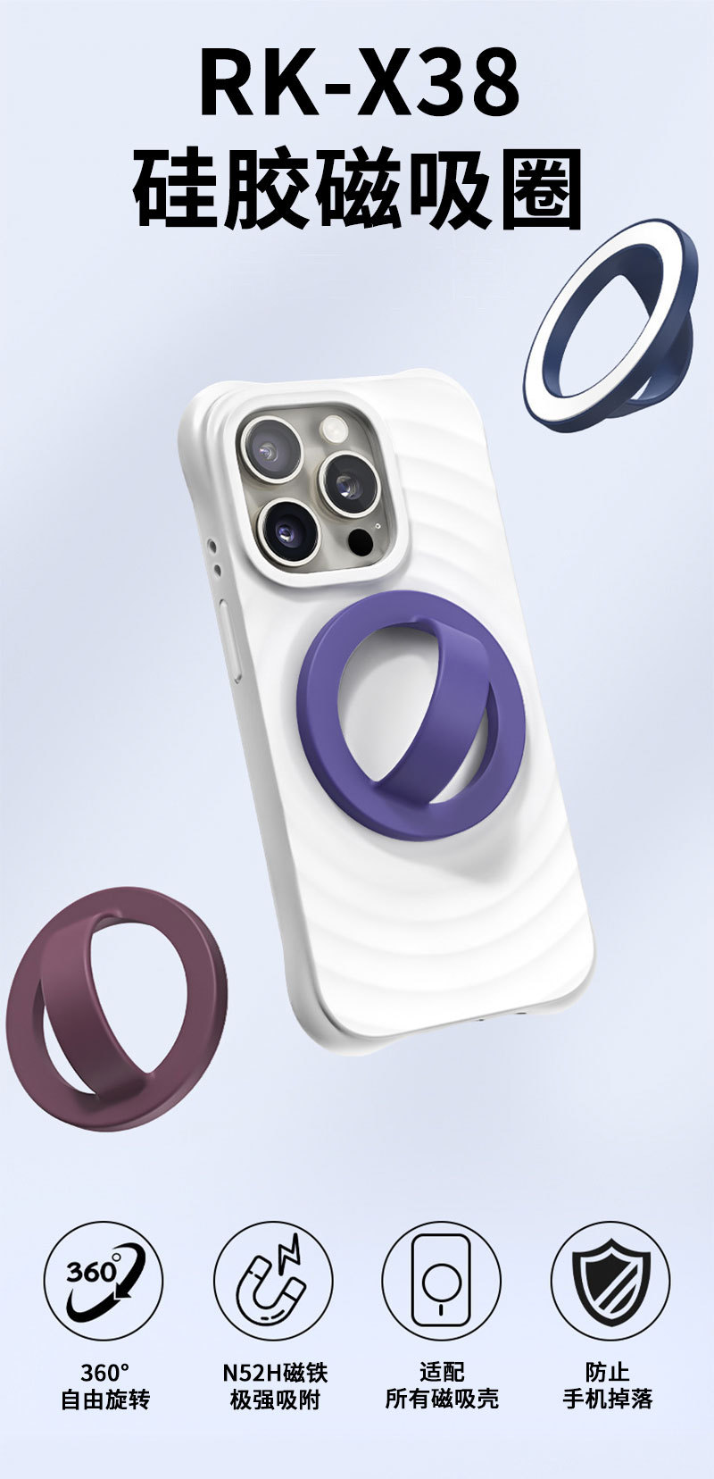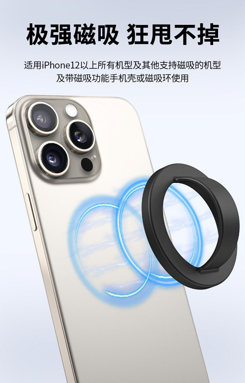 产品功能:磁吸支架可360度旋转、适配所以磁吸壳、防摔防滑、多颜色选择、简约耐看