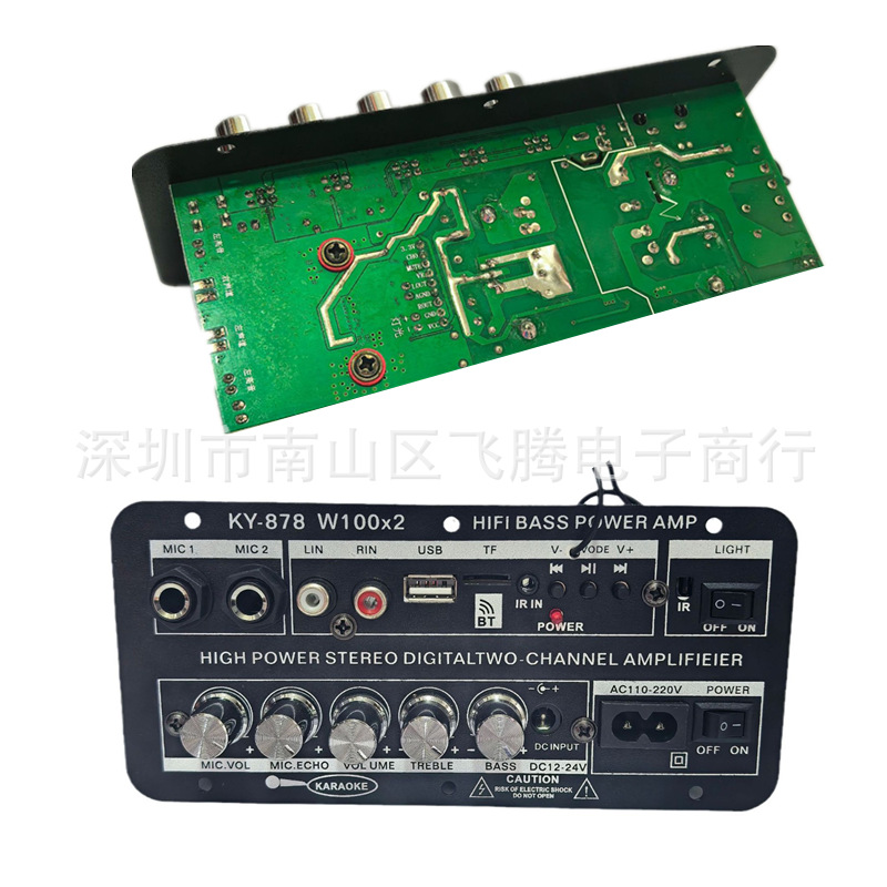 국경 간 듀얼 채널 스테레오 디지털 카드 블루투스 파워 앰프 보드 인치 3 방향 자동차 리버브 마이크
