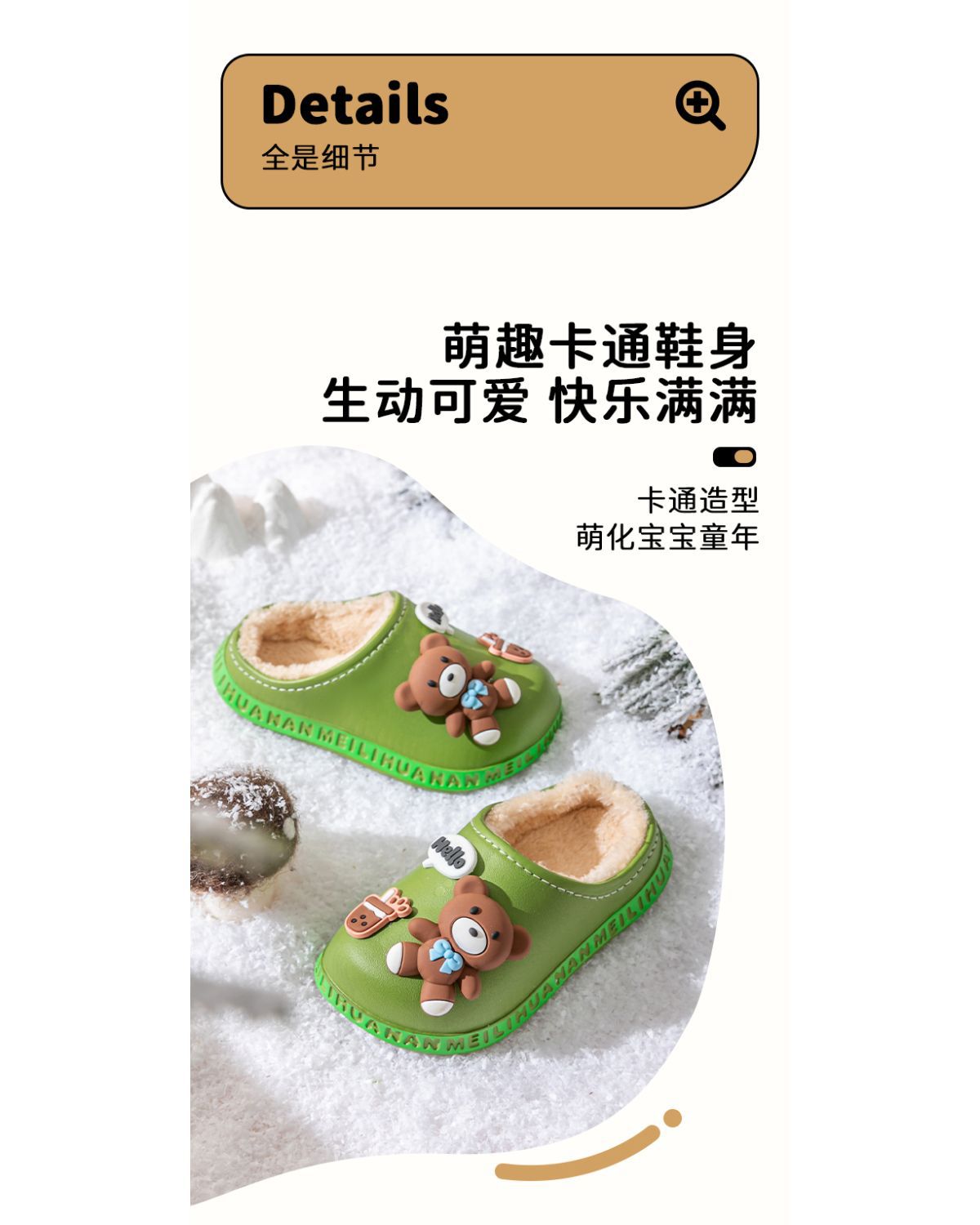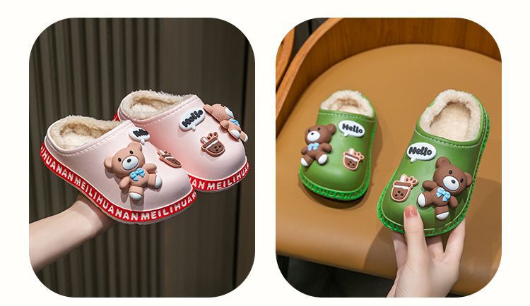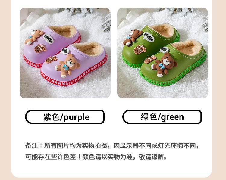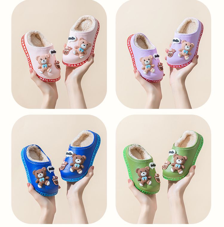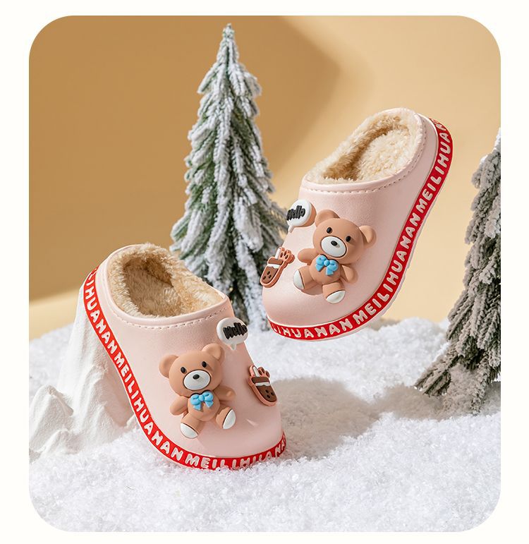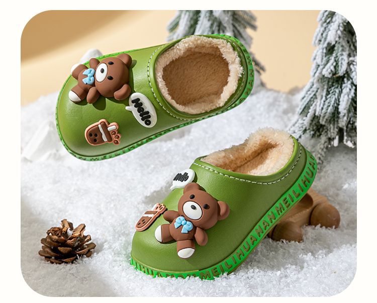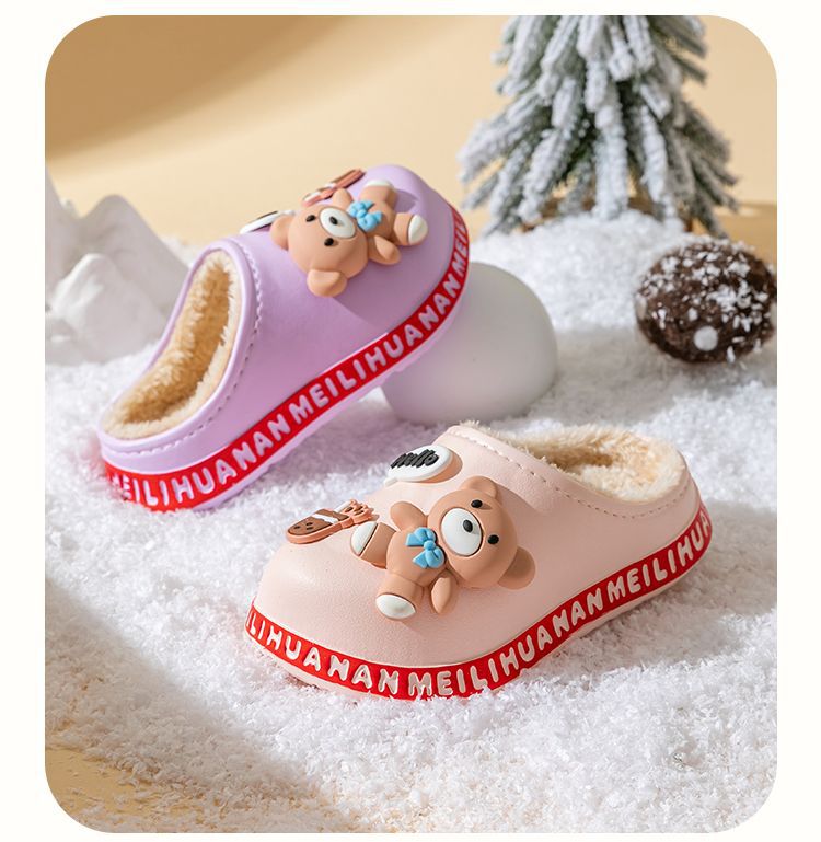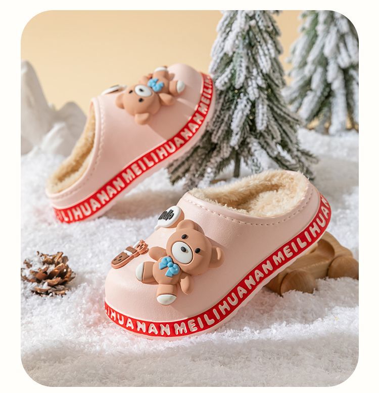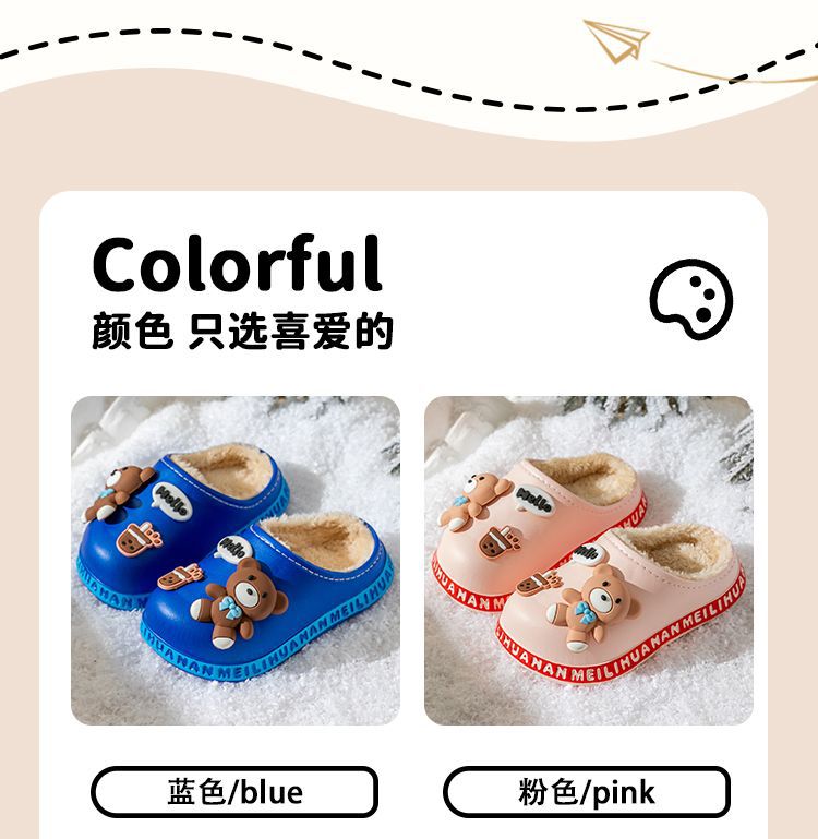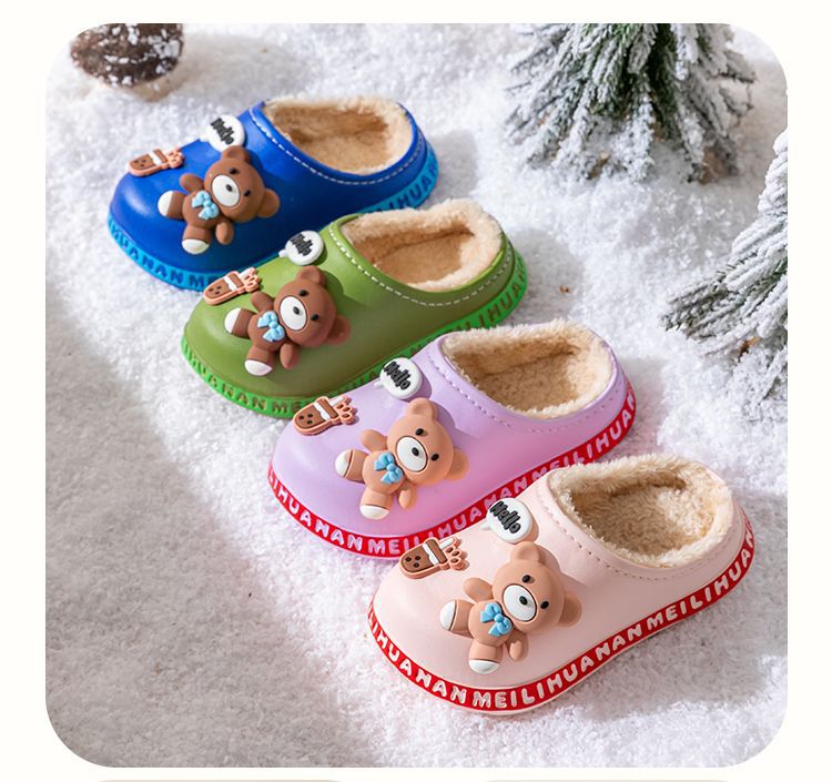 어린이용 면 슬리퍼, 남아 여아용 두꺼운 밑창 미끄럼 방지 실내용 가정용 플러스 벨벳 보온 면 슬리퍼, 중소 어린이용 겨울 모델스토어 가기