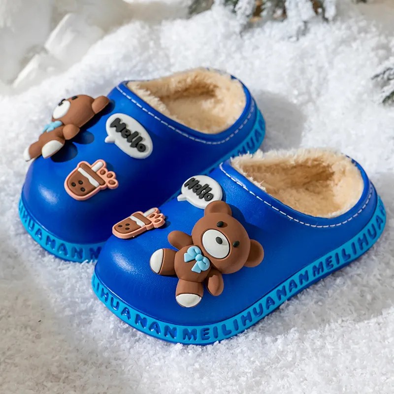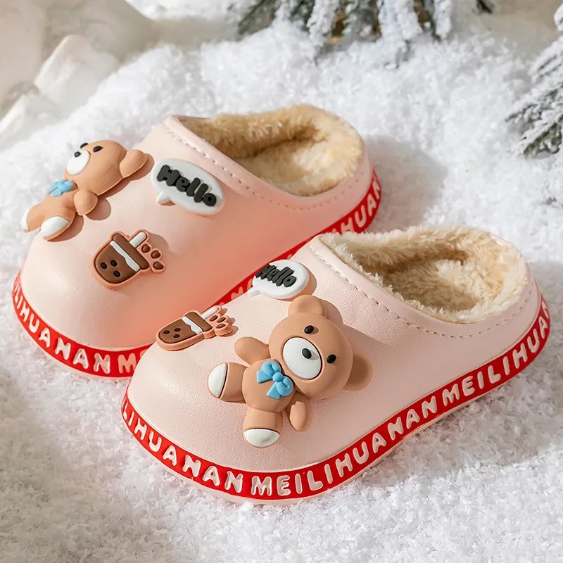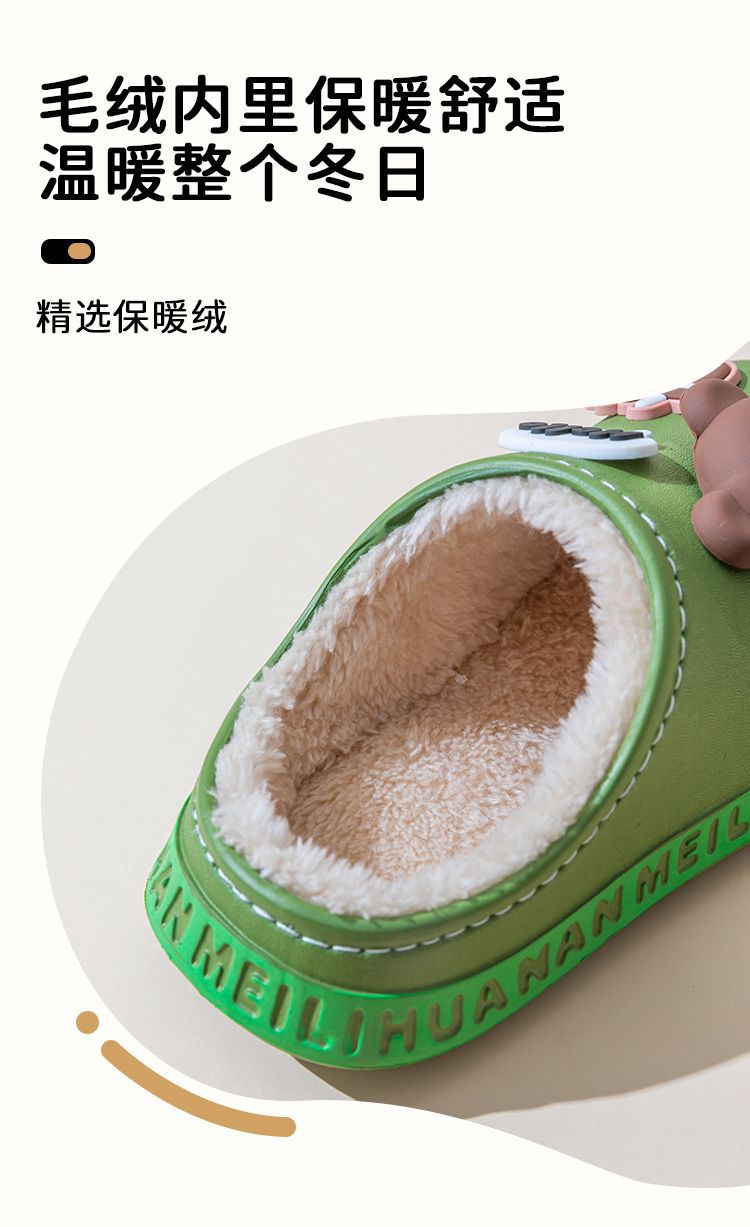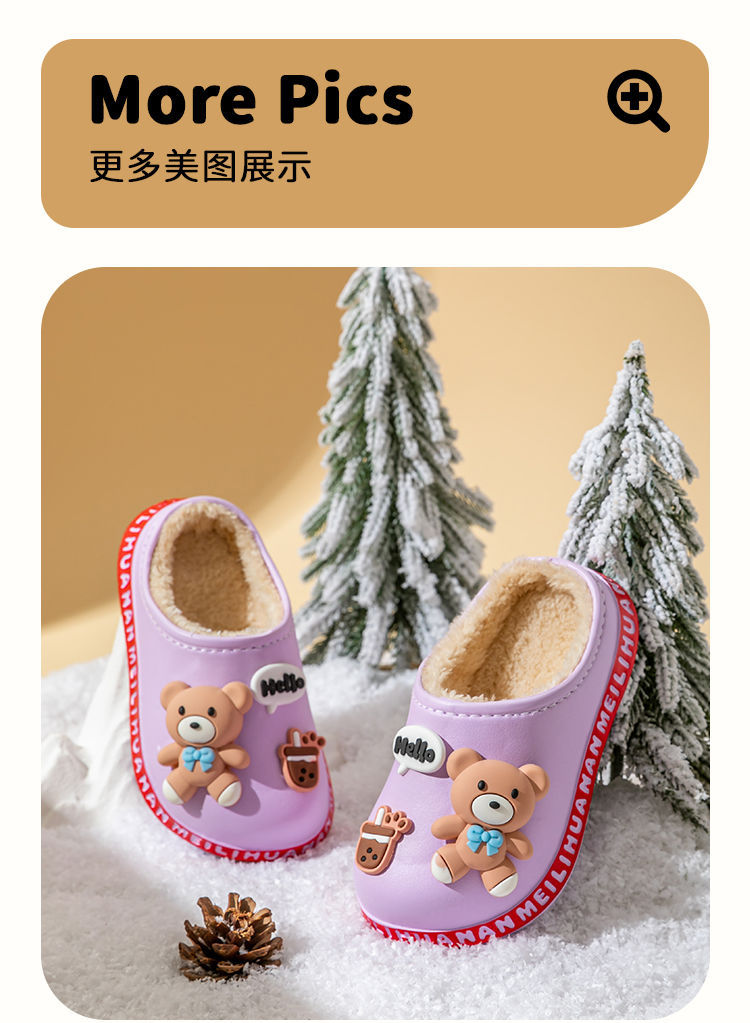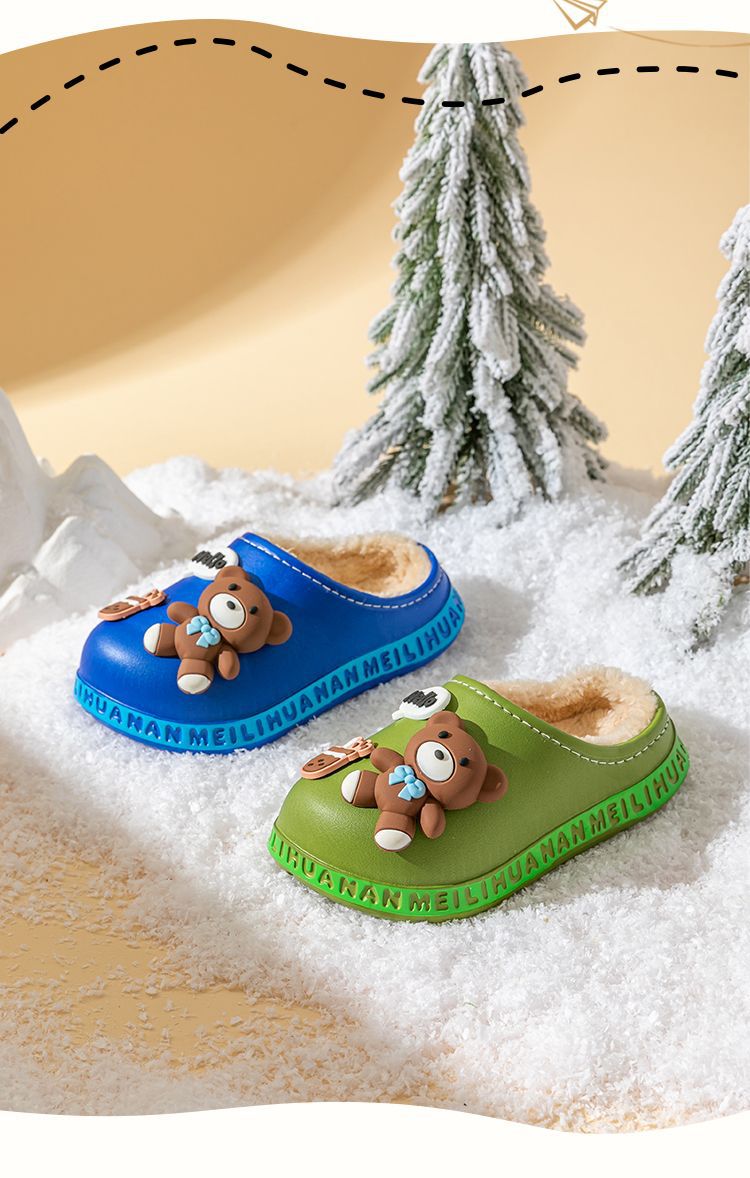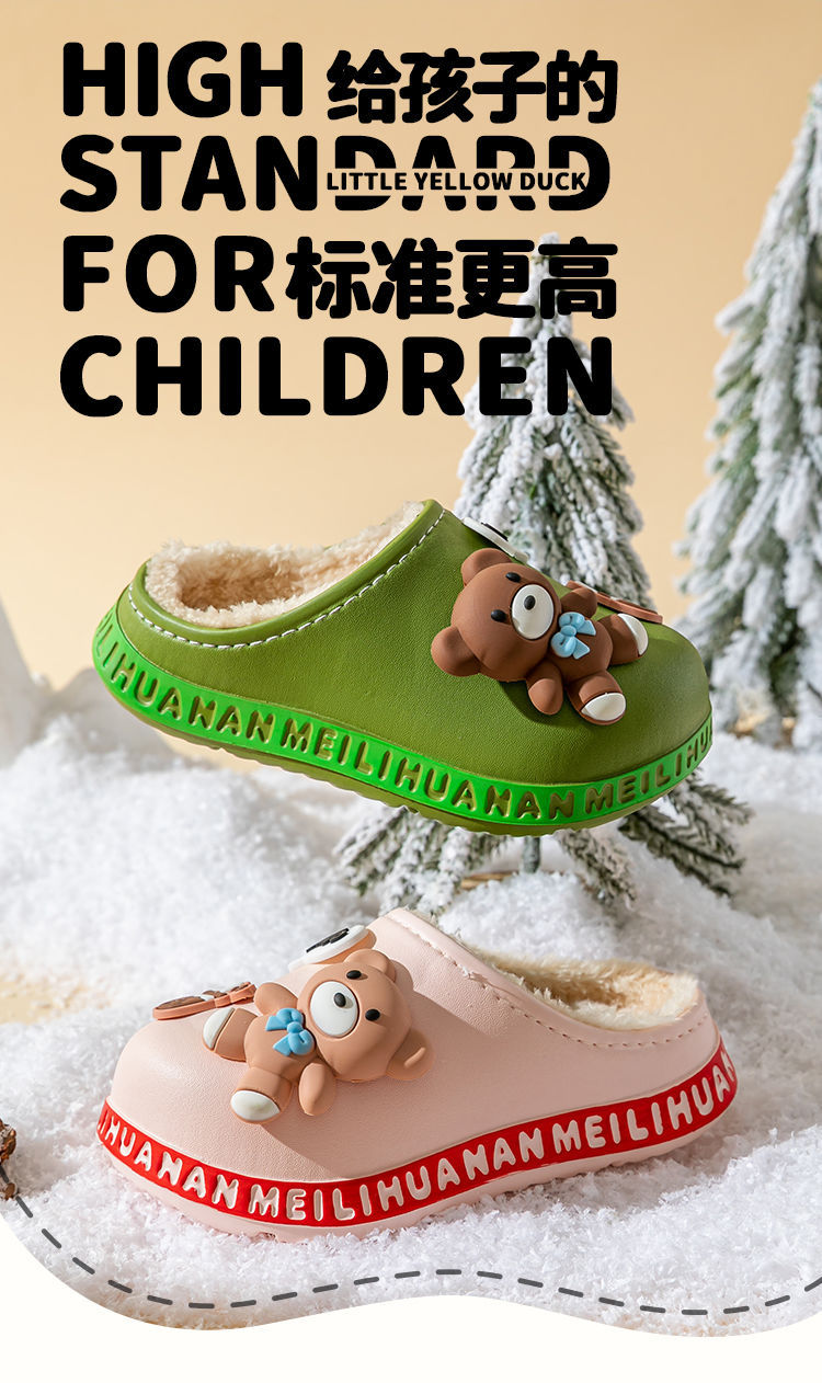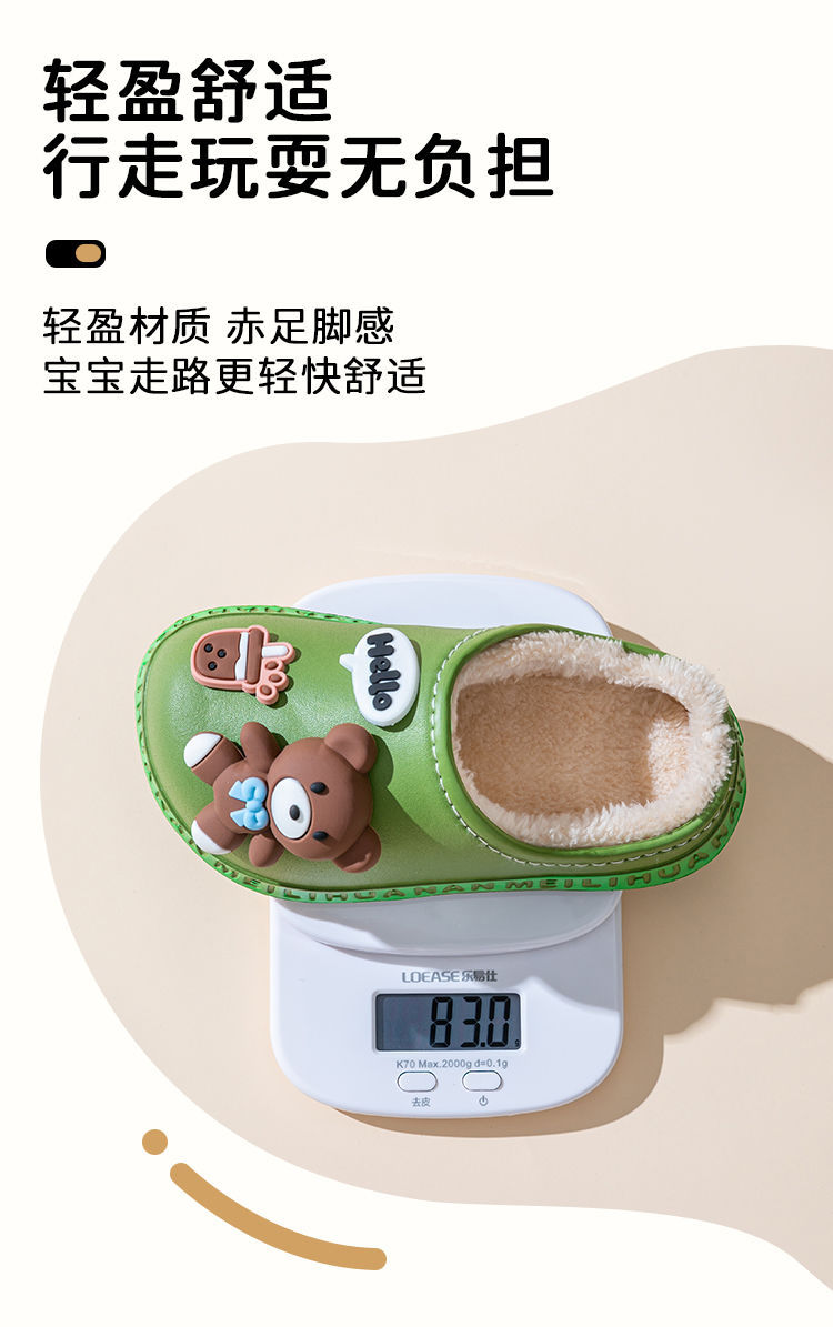 어린이용 면 슬리퍼, 남아 여아용 두꺼운 밑창 미끄럼 방지 실내용 가정용 플러스 벨벳 보온 면 슬리퍼, 중소 어린이용 겨울 모델스토어 가기