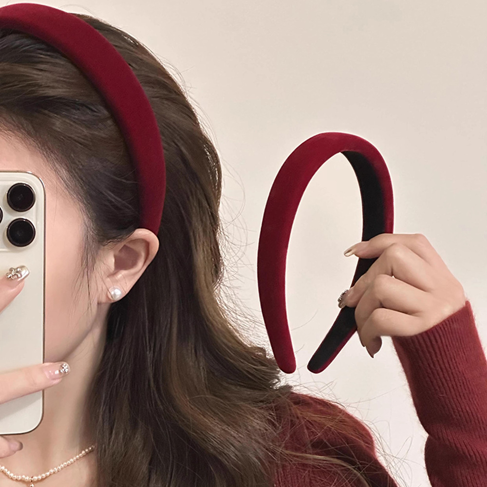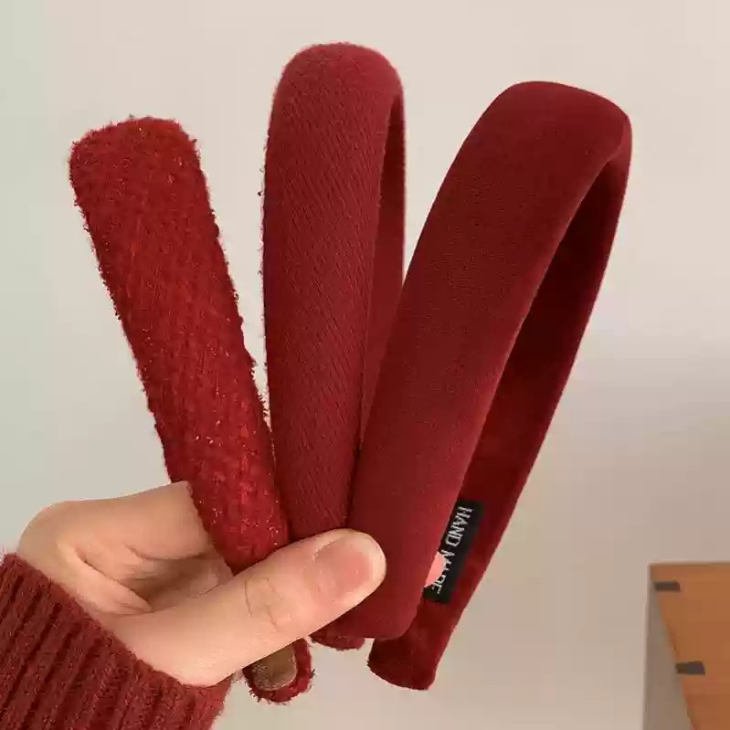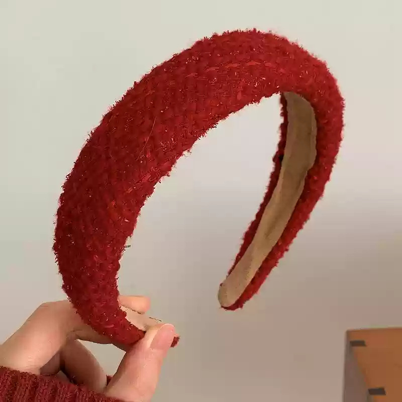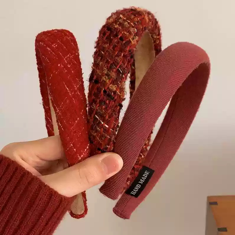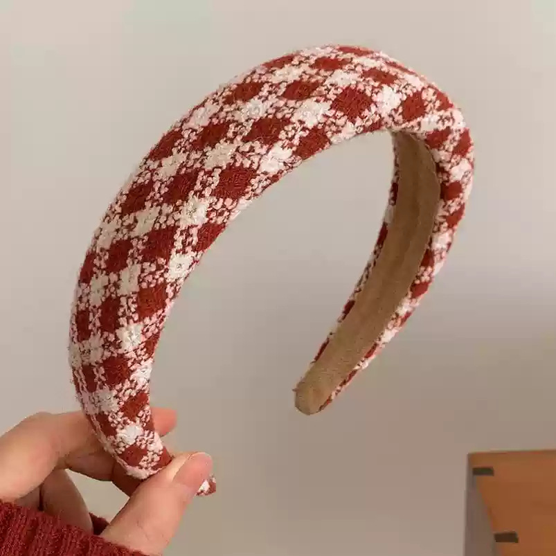 새해 스타일 샤넬 스타일 헤어 후프 헤드웨어 여성 가을과 겨울 레드 스타일 올 매치 헤드 밴드 패브릭 체크 무늬 헤어 카드 헤어 액세서리