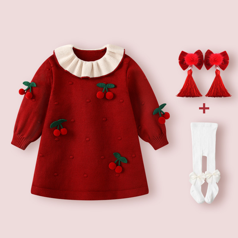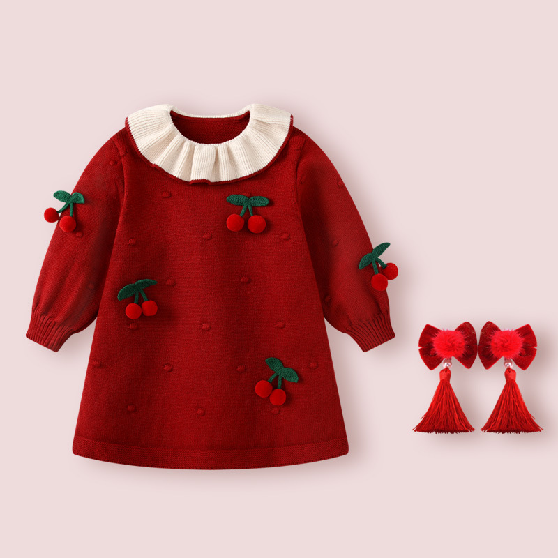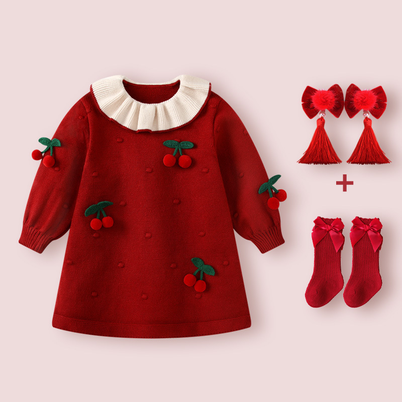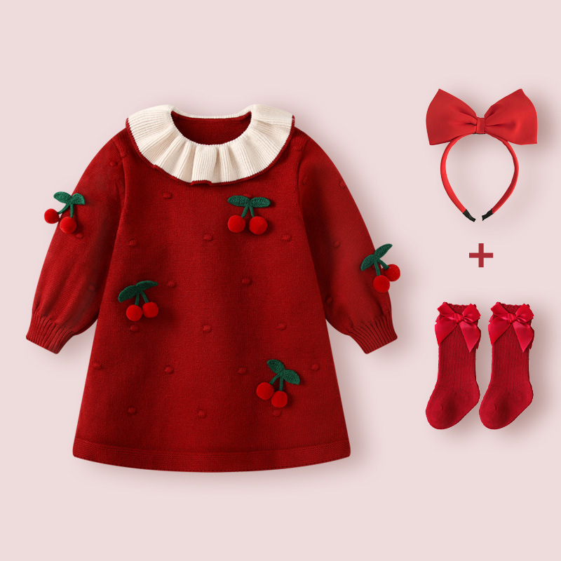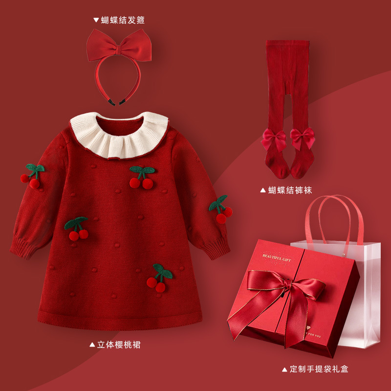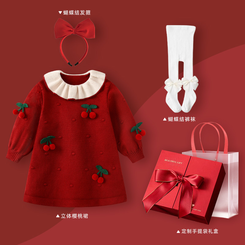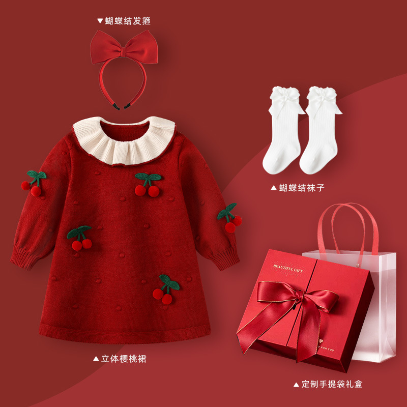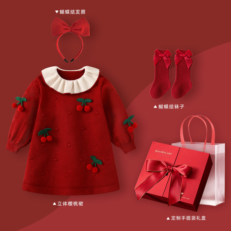소녀 스웨터 원피스 가을과 겨울 아기 소녀의 한 살짜리 원피스 공주 원피스 아기 신년 옷스토어 가기
