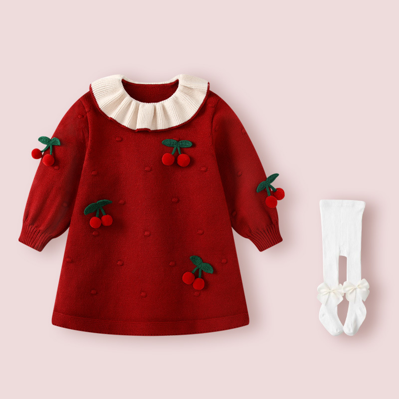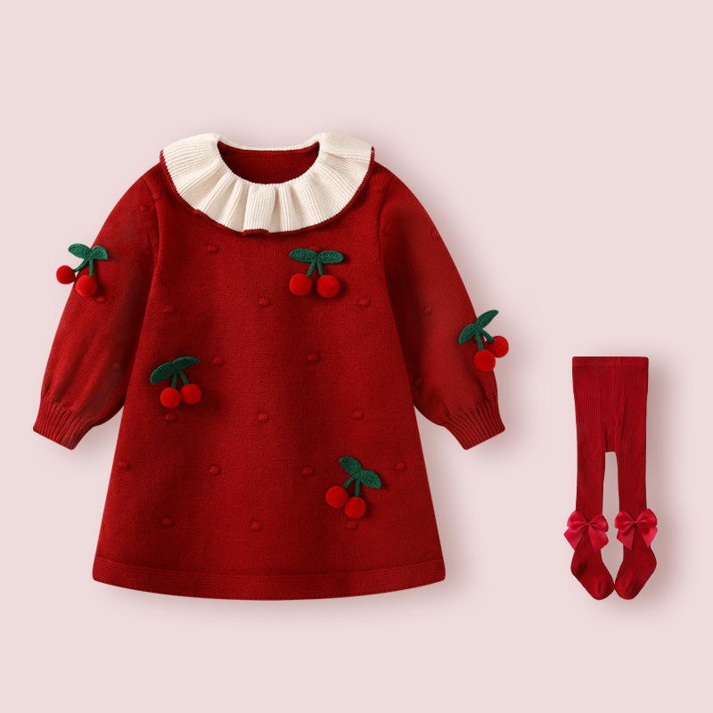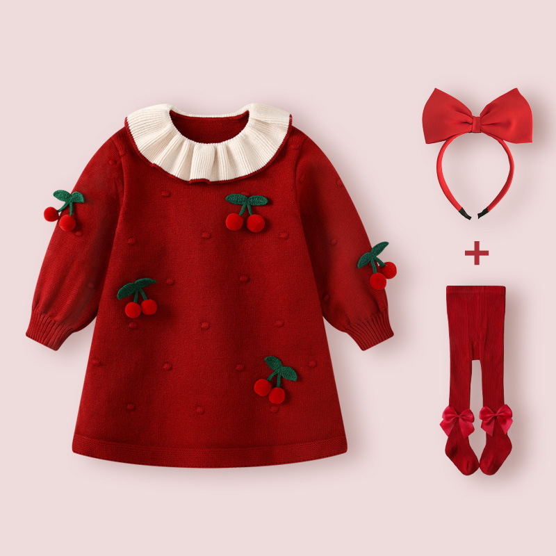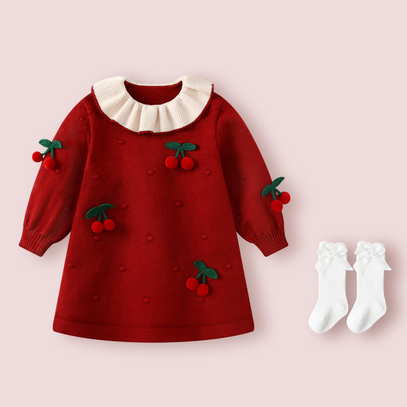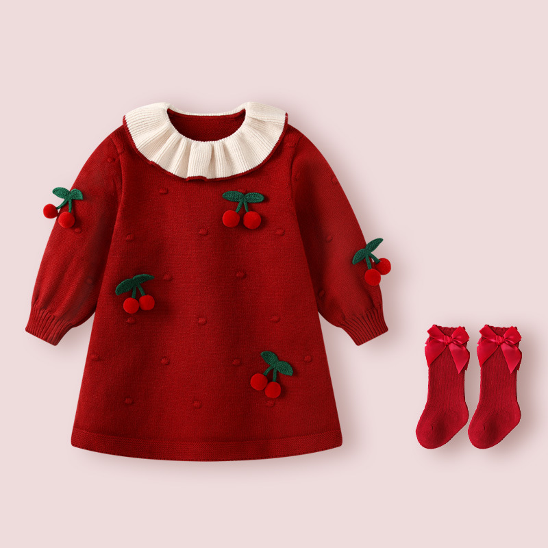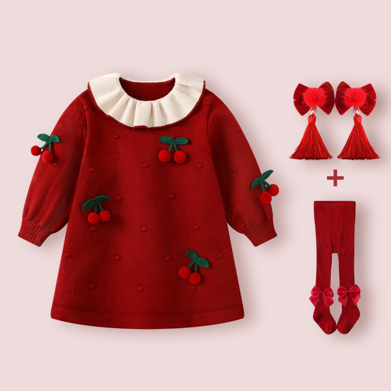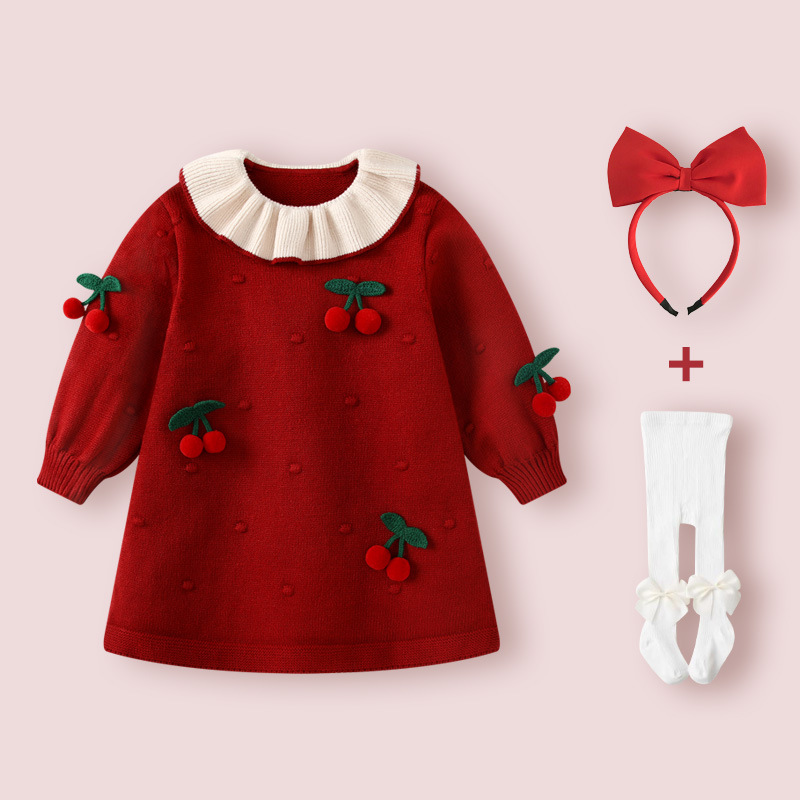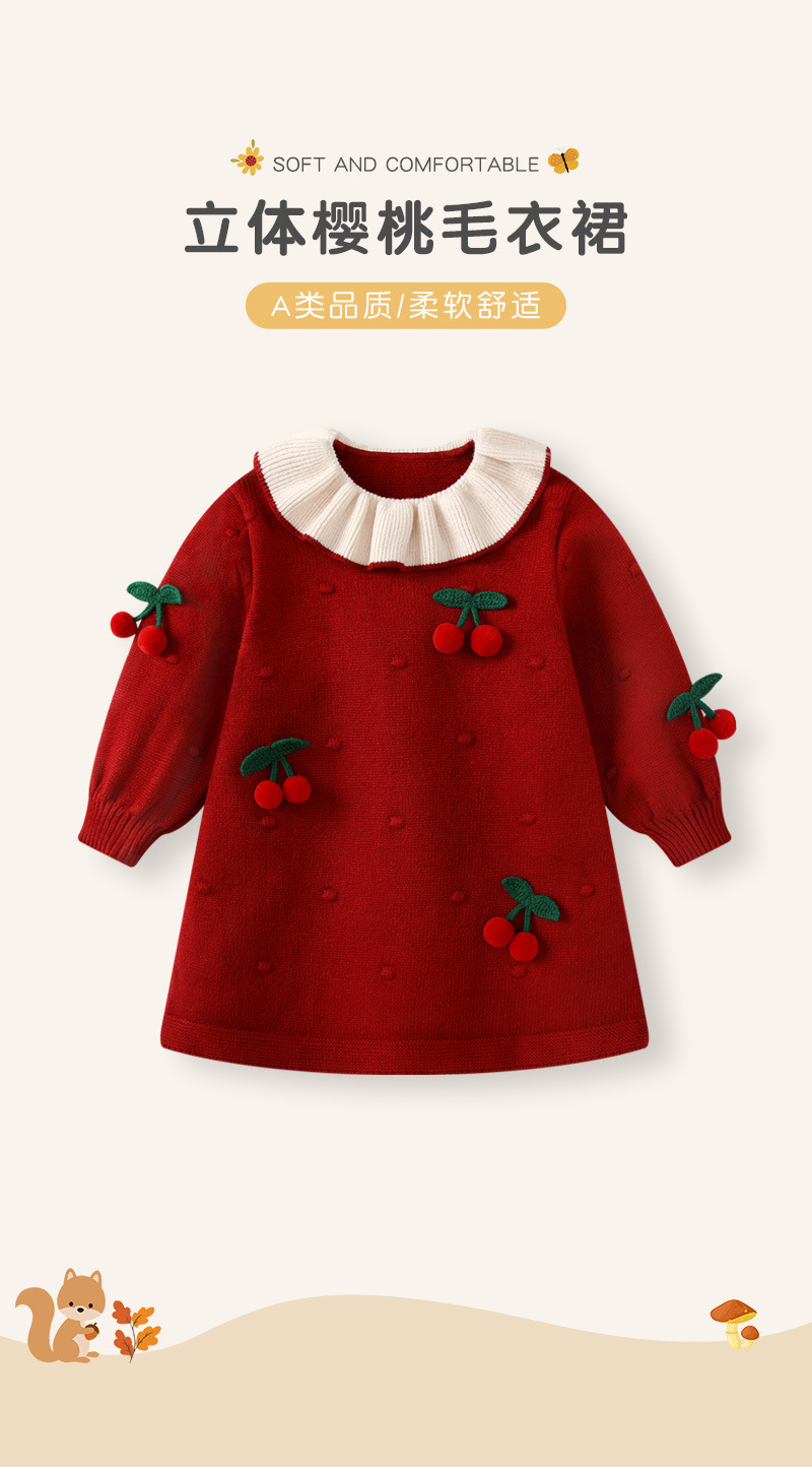 소녀 스웨터 원피스 가을과 겨울 아기 소녀의 한 살짜리 원피스 공주 원피스 아기 신년 옷스토어 가기
