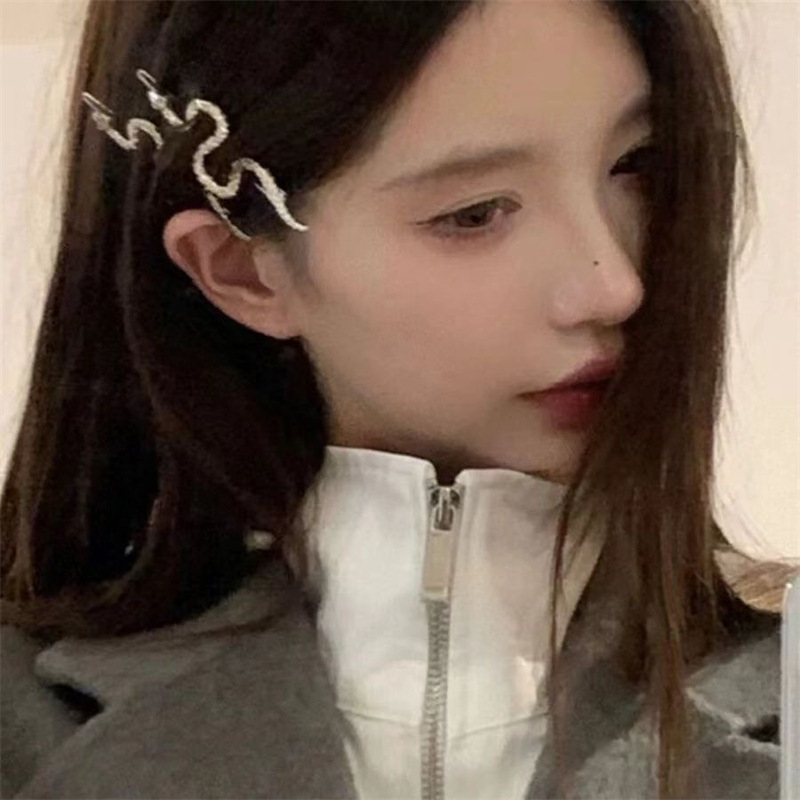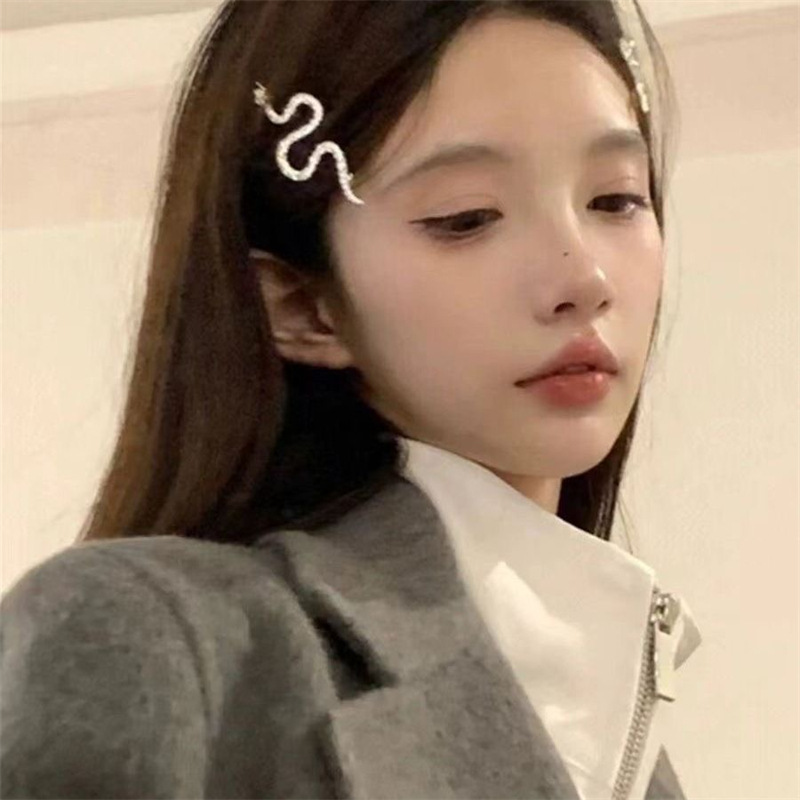 달콤한 쿨 스타일 레트로 헤어핀 여성 Ins 크리에이티브 실버 뱀 모양의 헤어핀 올매치 사이드 클립