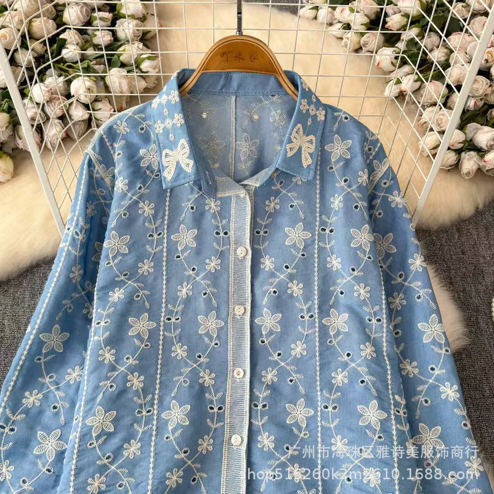 새로운 스타일 부드러운 스타일 자수 꽃 폴로 칼라 셔츠 여성의 겨울 서양식 시대 감소 느슨한 빈 긴 소매 최고 트렌디스토어 가기