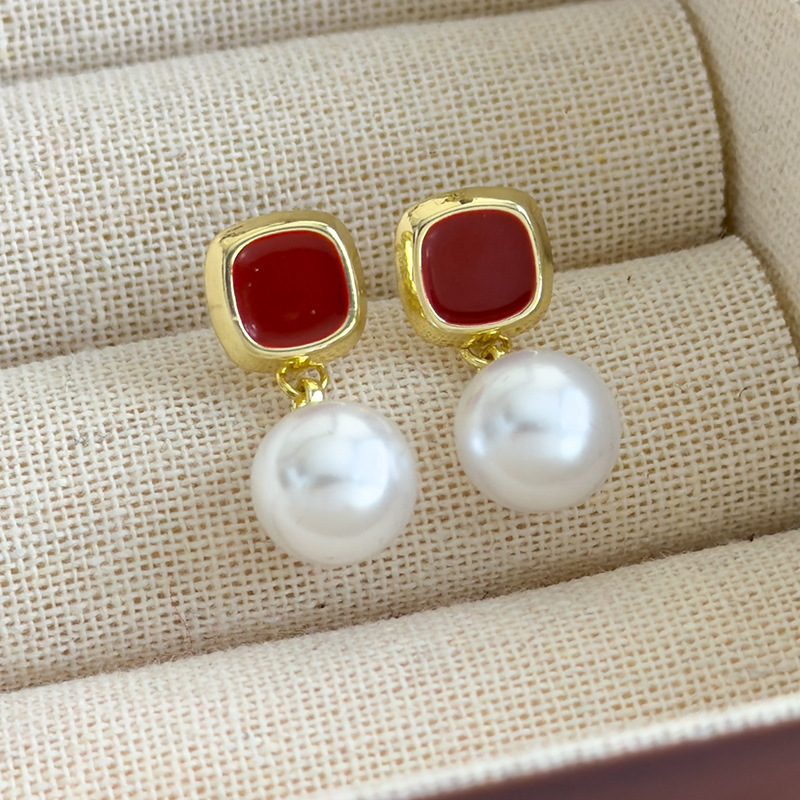 프랑스 빈티지 에나멜 드롭 유약 스퀘어 진주 귀걸이 작고 절묘한 고급 귀걸이 2025 새로운 귀걸이스토어 가기