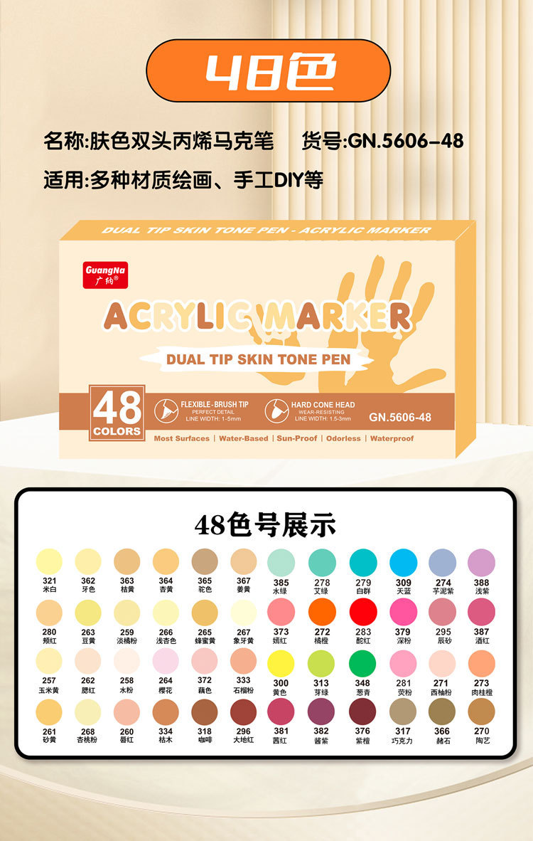광나 5606 더블 헤드 아크릴 마커 하드 소프트 헤드 스택 컬러 아트 페인팅 컬러 펜 스킨 컬러 컬러 워터 펜