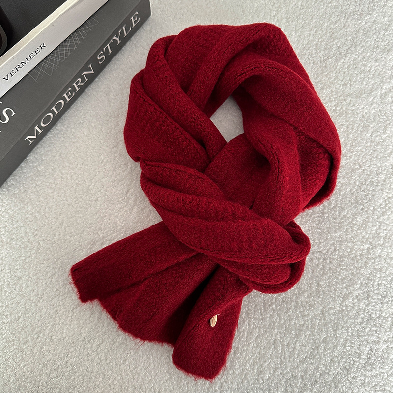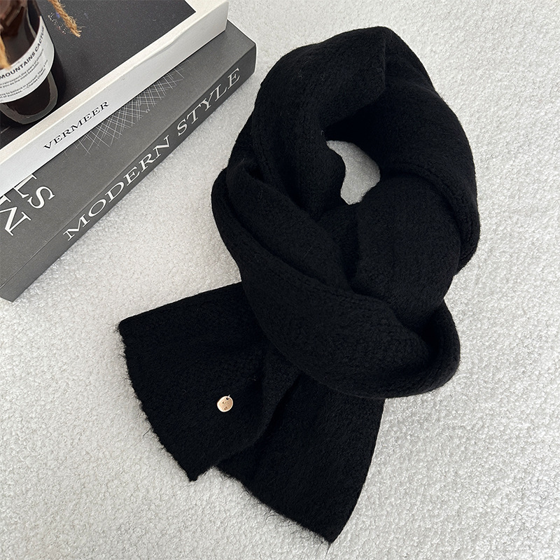 한국 스타일 겨울 2024 새로운 니트 스카프 단색 일본 스타일 두꺼운 캐주얼 Ins 스타일 따뜻한 감기 보호 여학생을위한